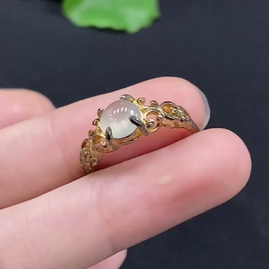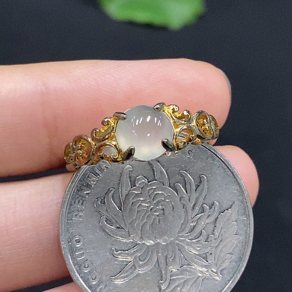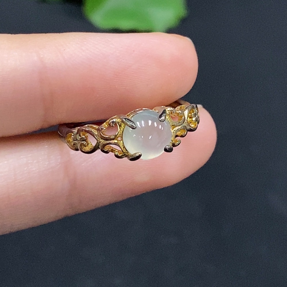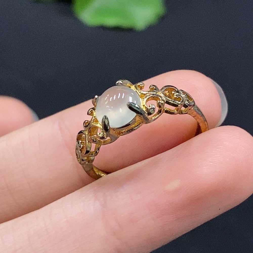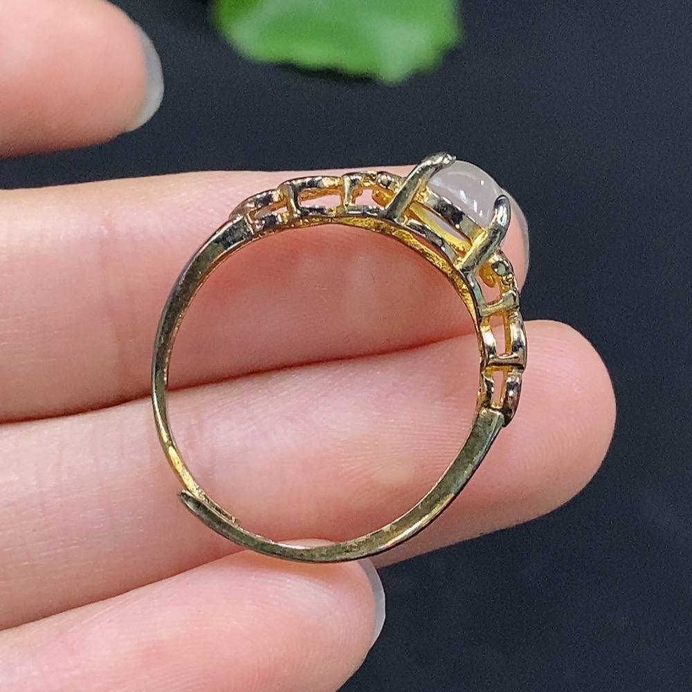 Jadeite Cabochon Ring, Non-Gold Setting, Adjustable, Total Weight Approx. 1.84g