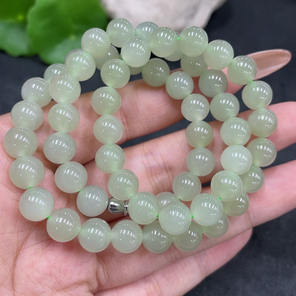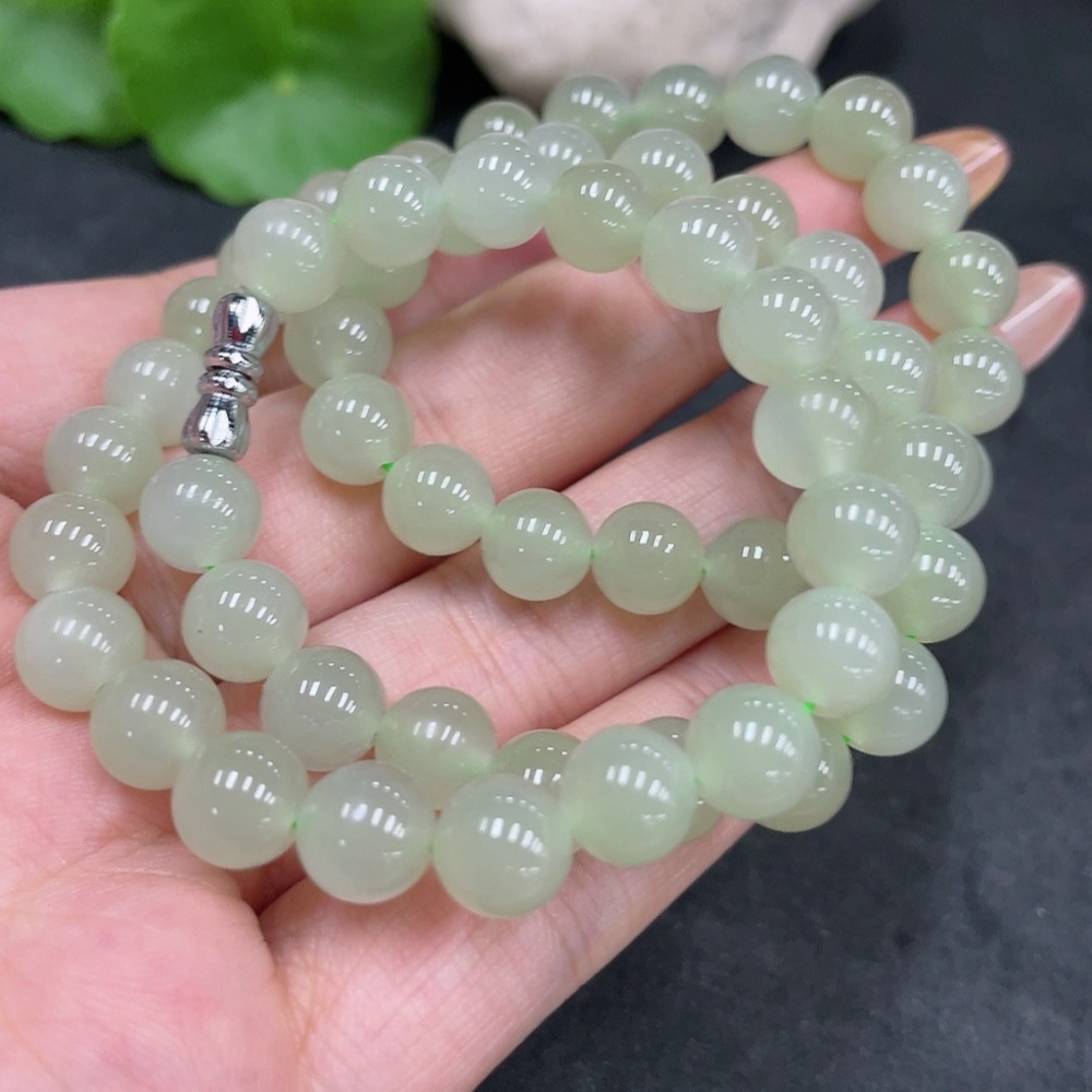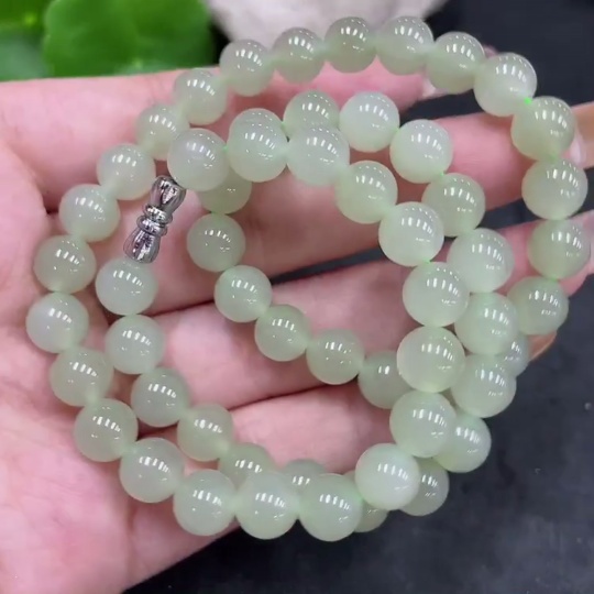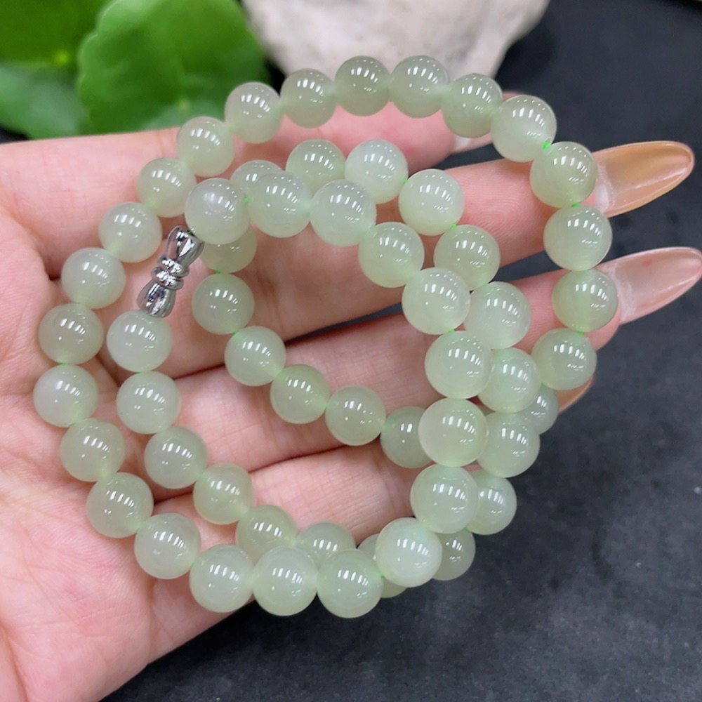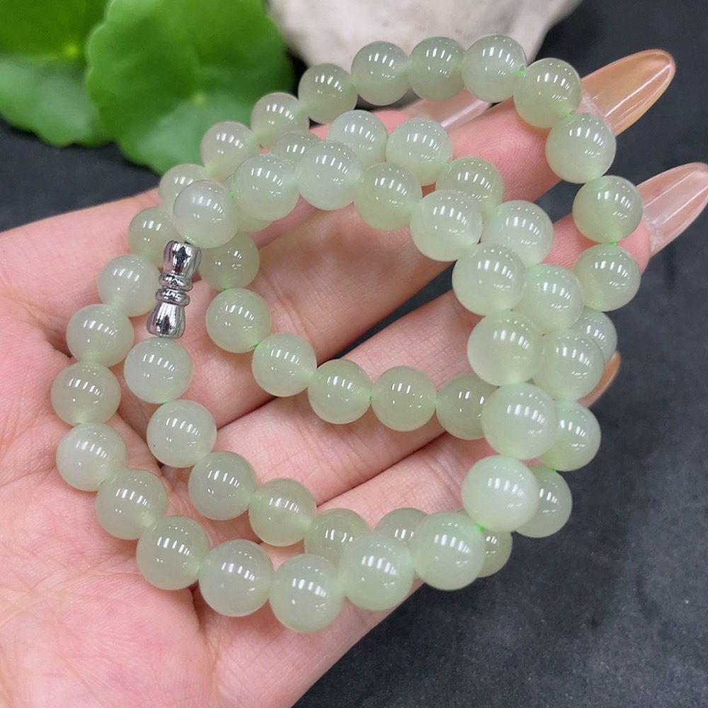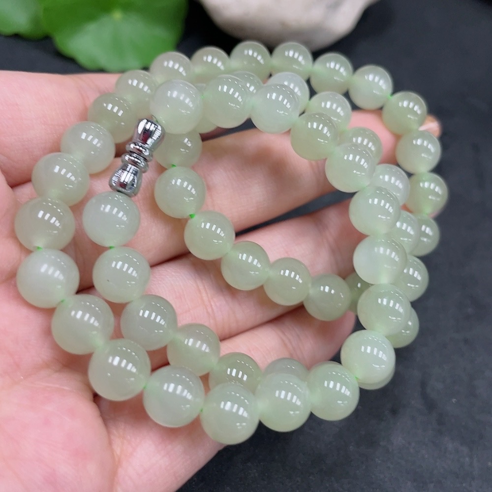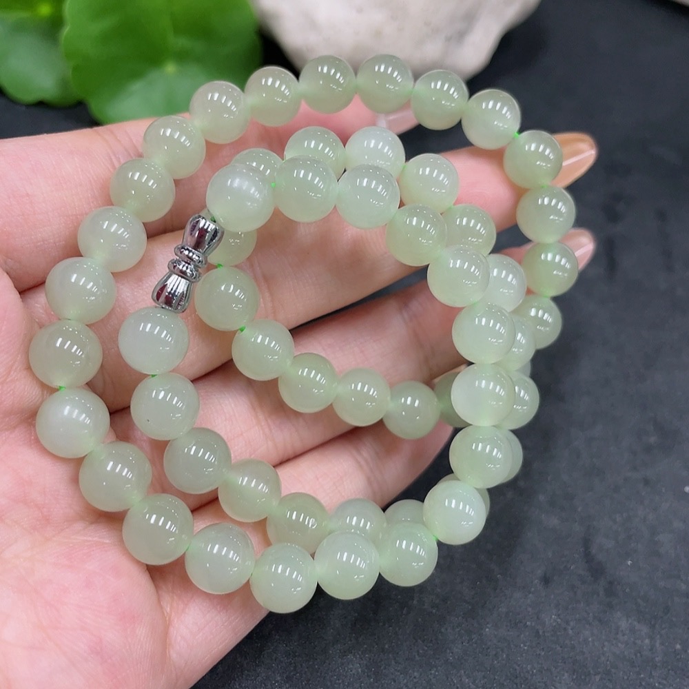 Hetian Jade Bead Necklace Approx. 7.9mm Non-Gold Total Weight Approx. 43.8g