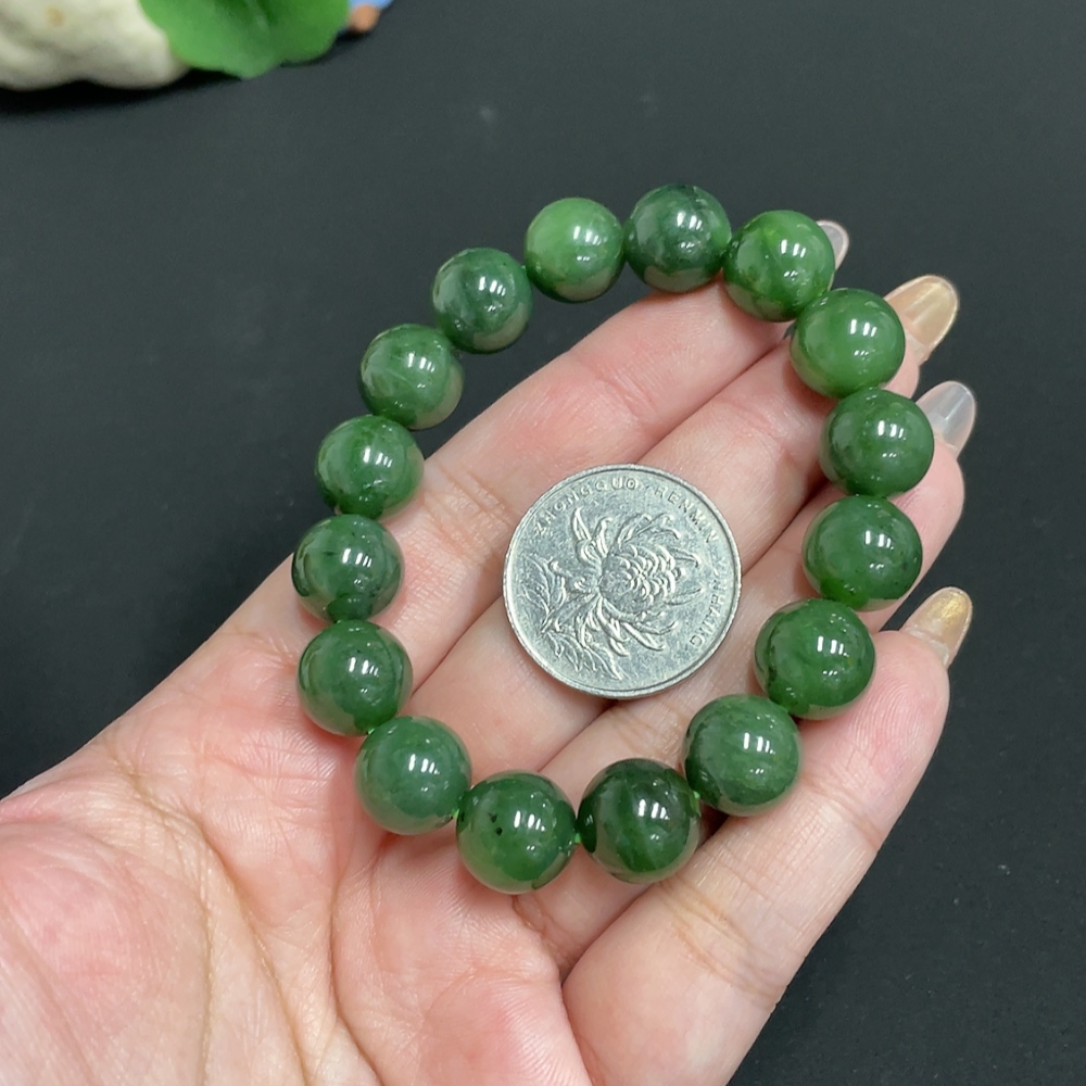 Hetian Jade Bracelet Approx. 11.8mm Beads Total Weight Approx. 42.2g