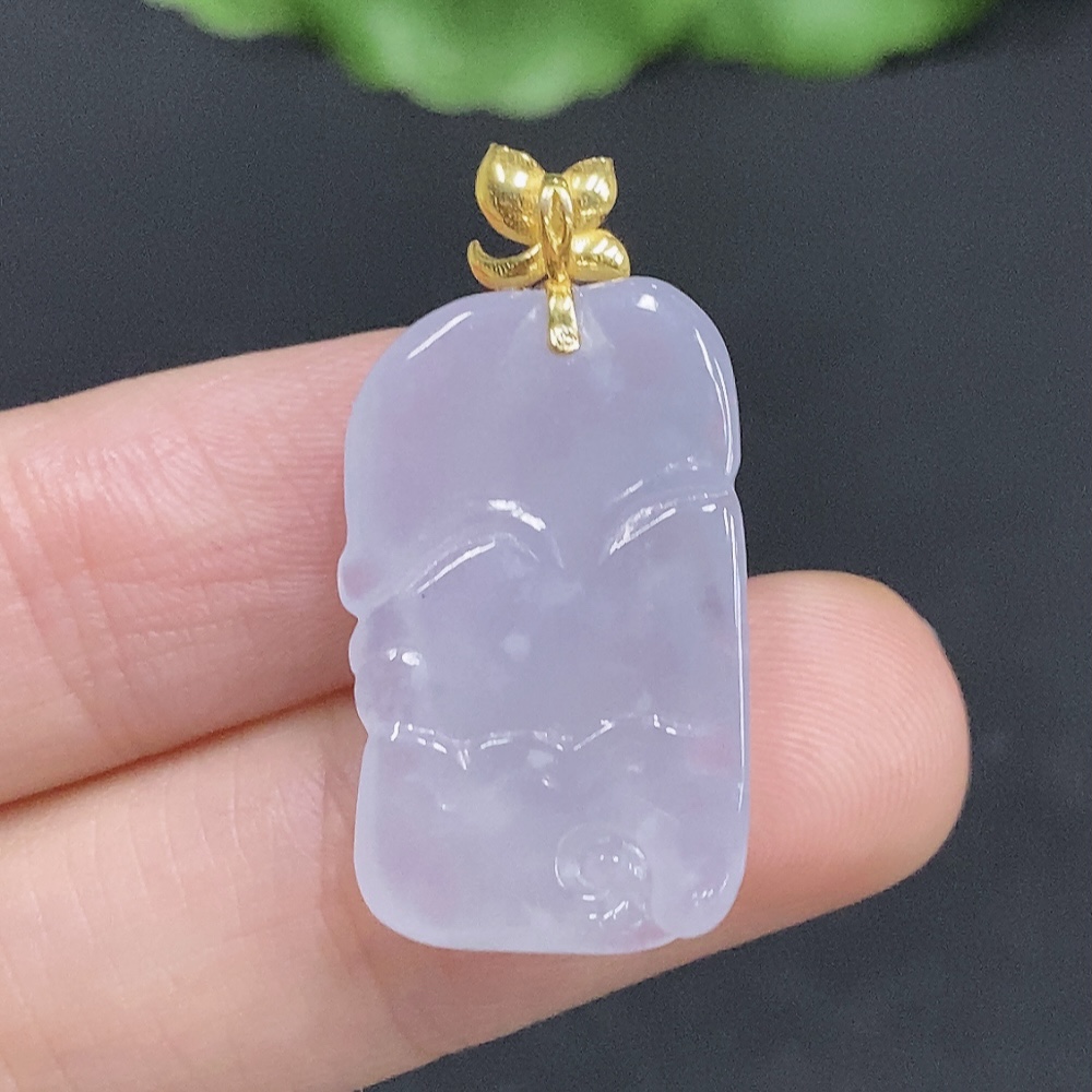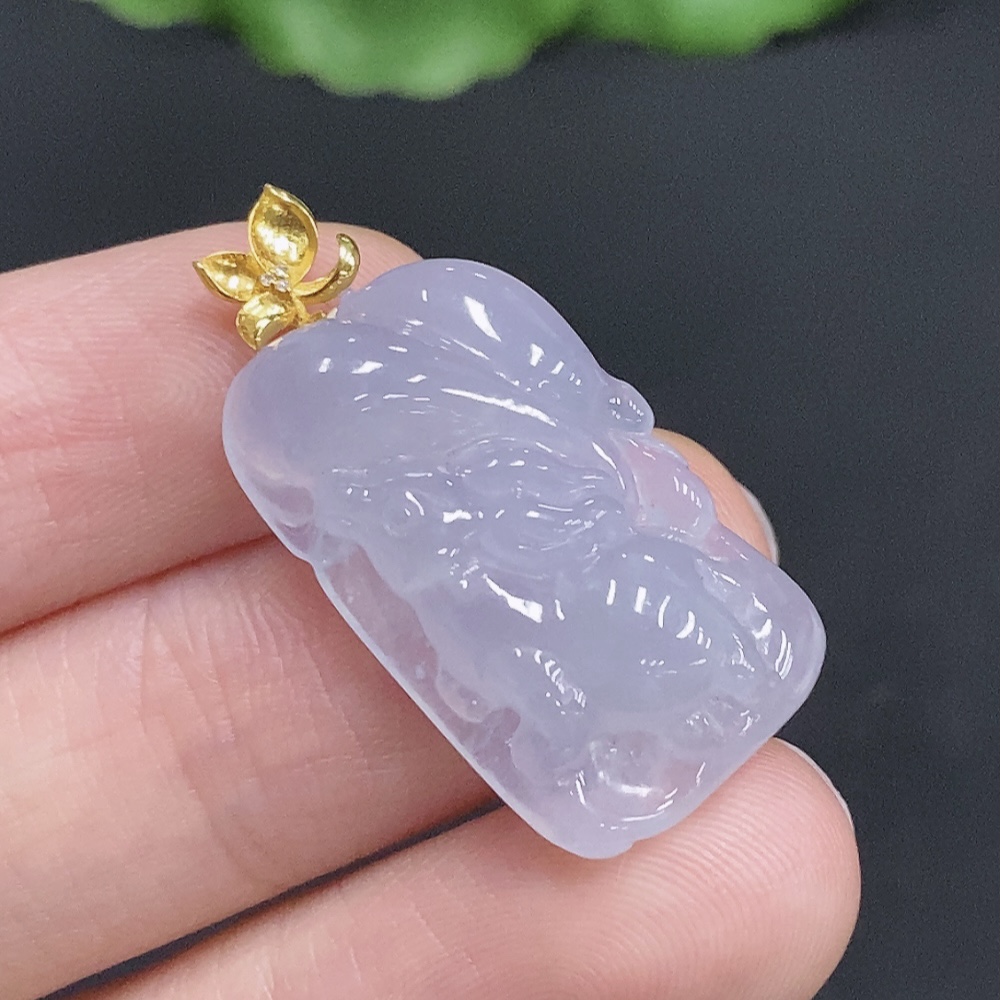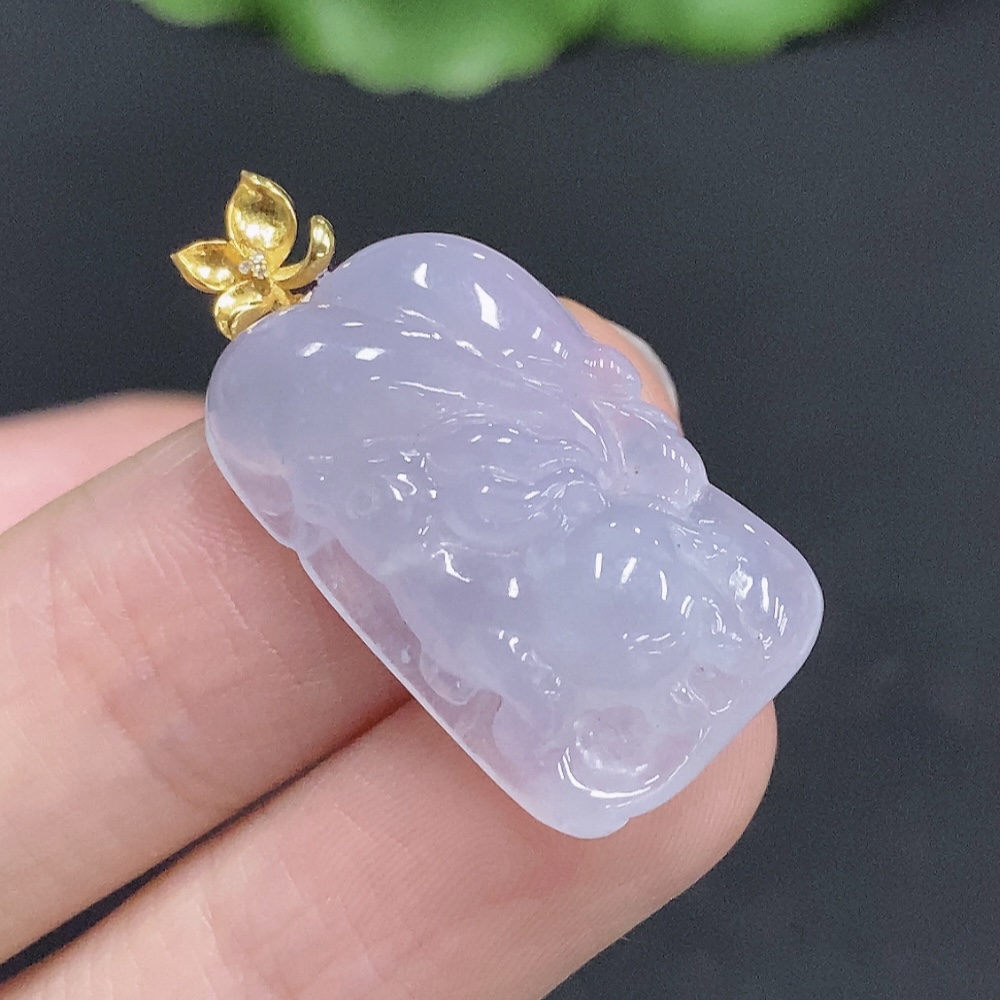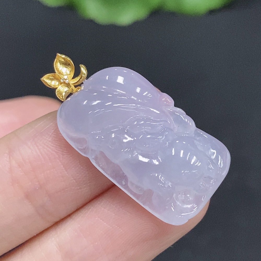 Jadeite Rabbit Pendant with 18K Gold Clasp, Total Weight Approximately 4.5 Grams