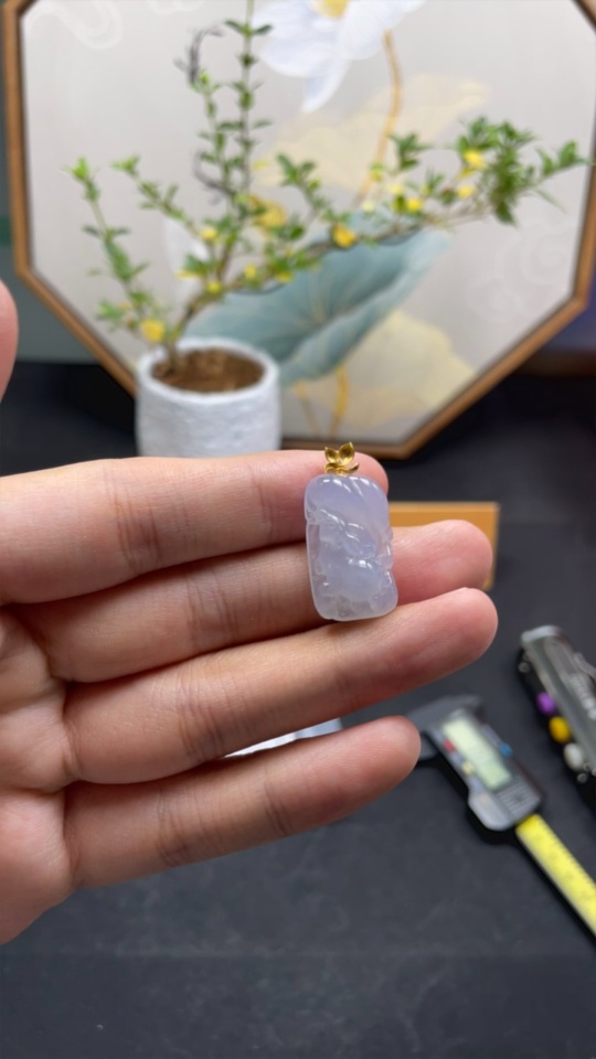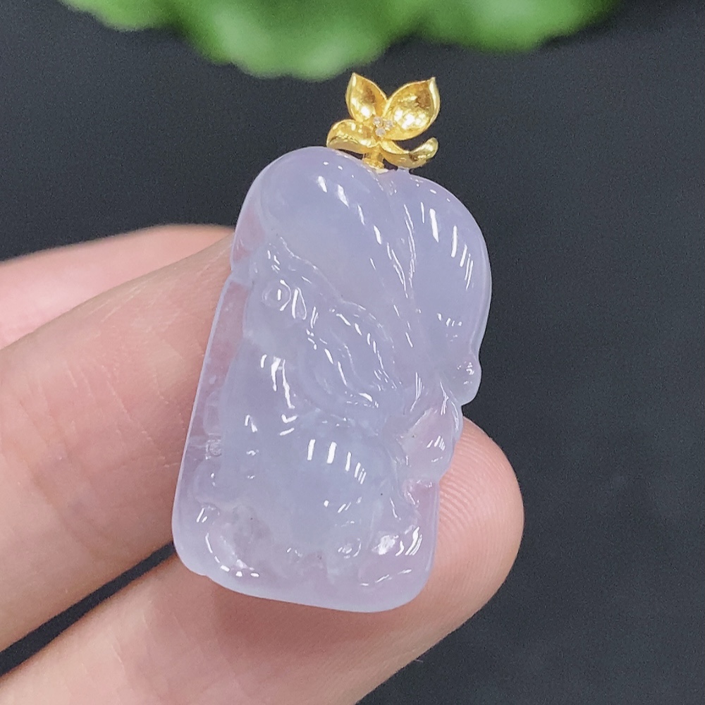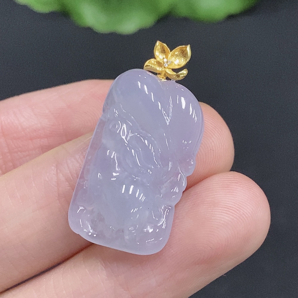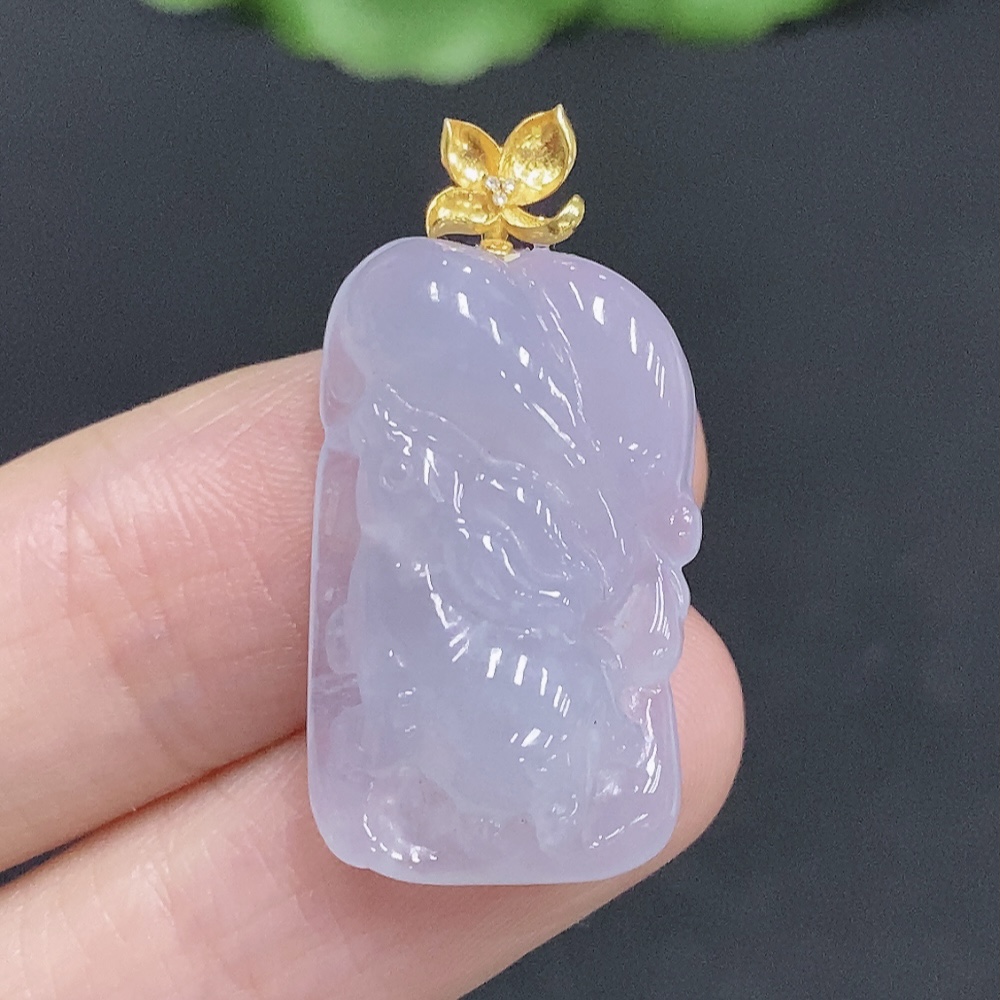 Jadeite Rabbit Pendant with 18K Gold Clasp, Total Weight Approximately 4.5 Grams