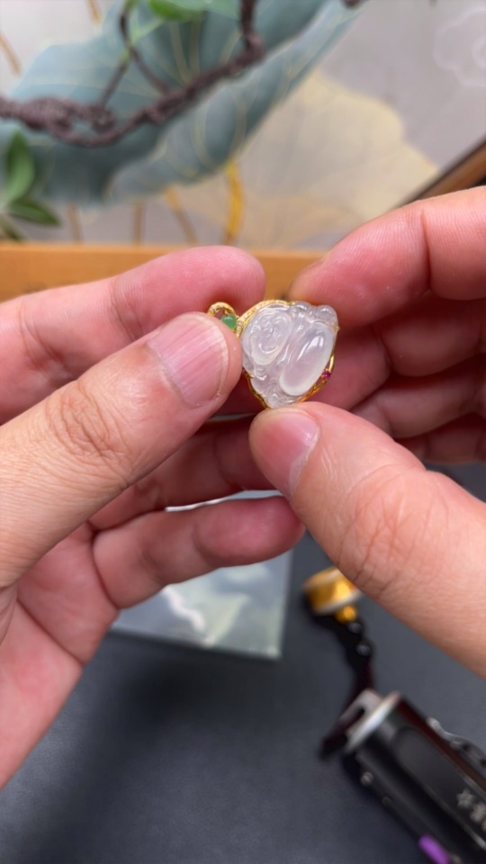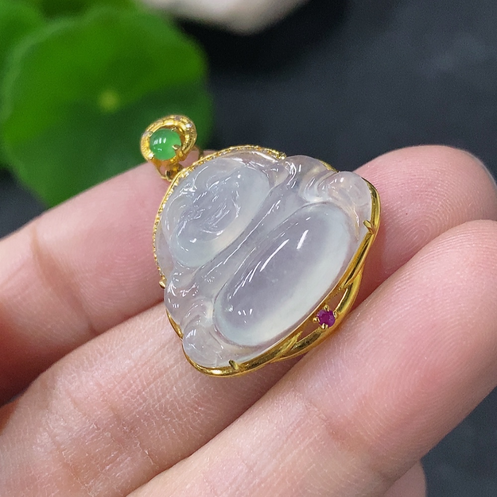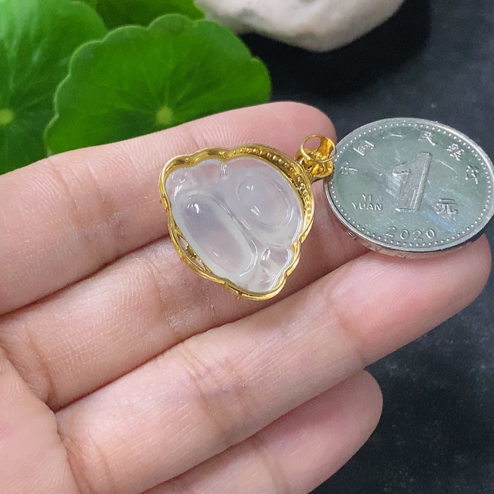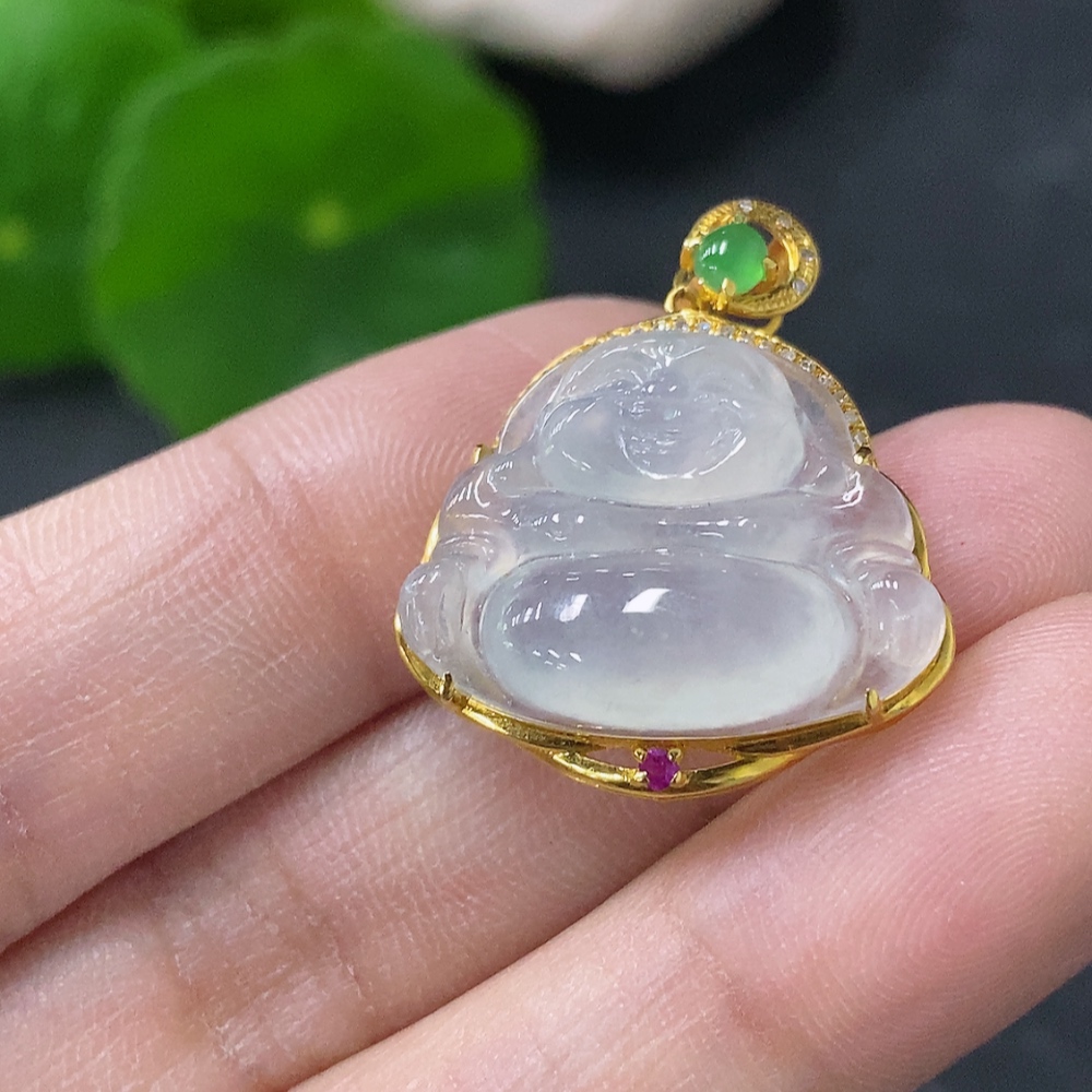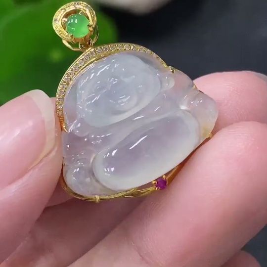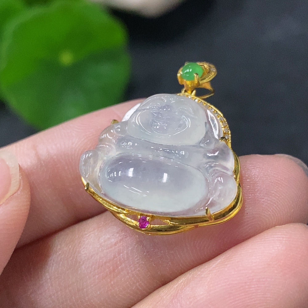 Jadeite Buddha Inlaid Pendant 18K Gold Total Weight Approx. 3.1g (With Colorless Diamond Accents)