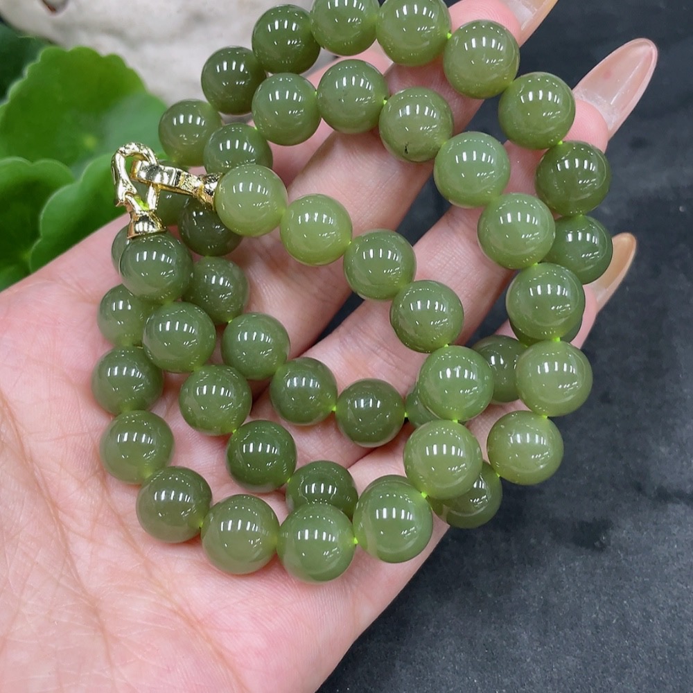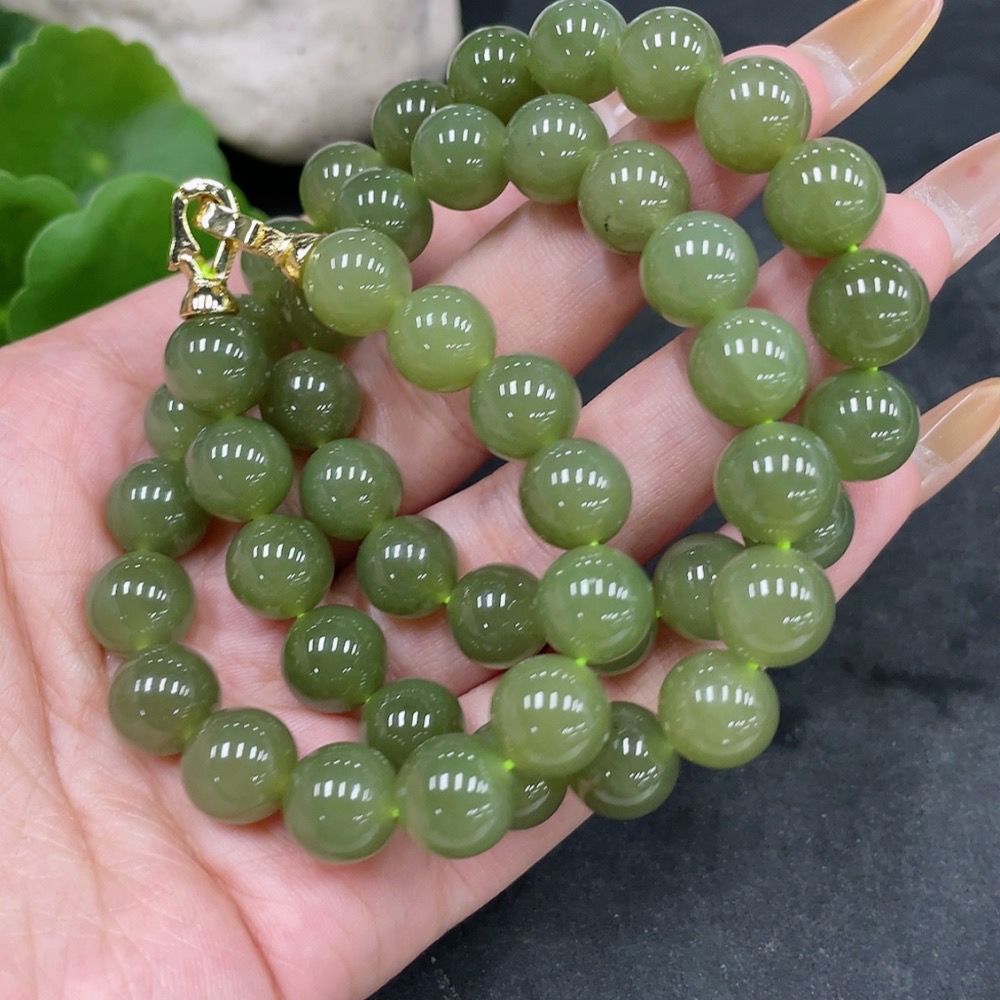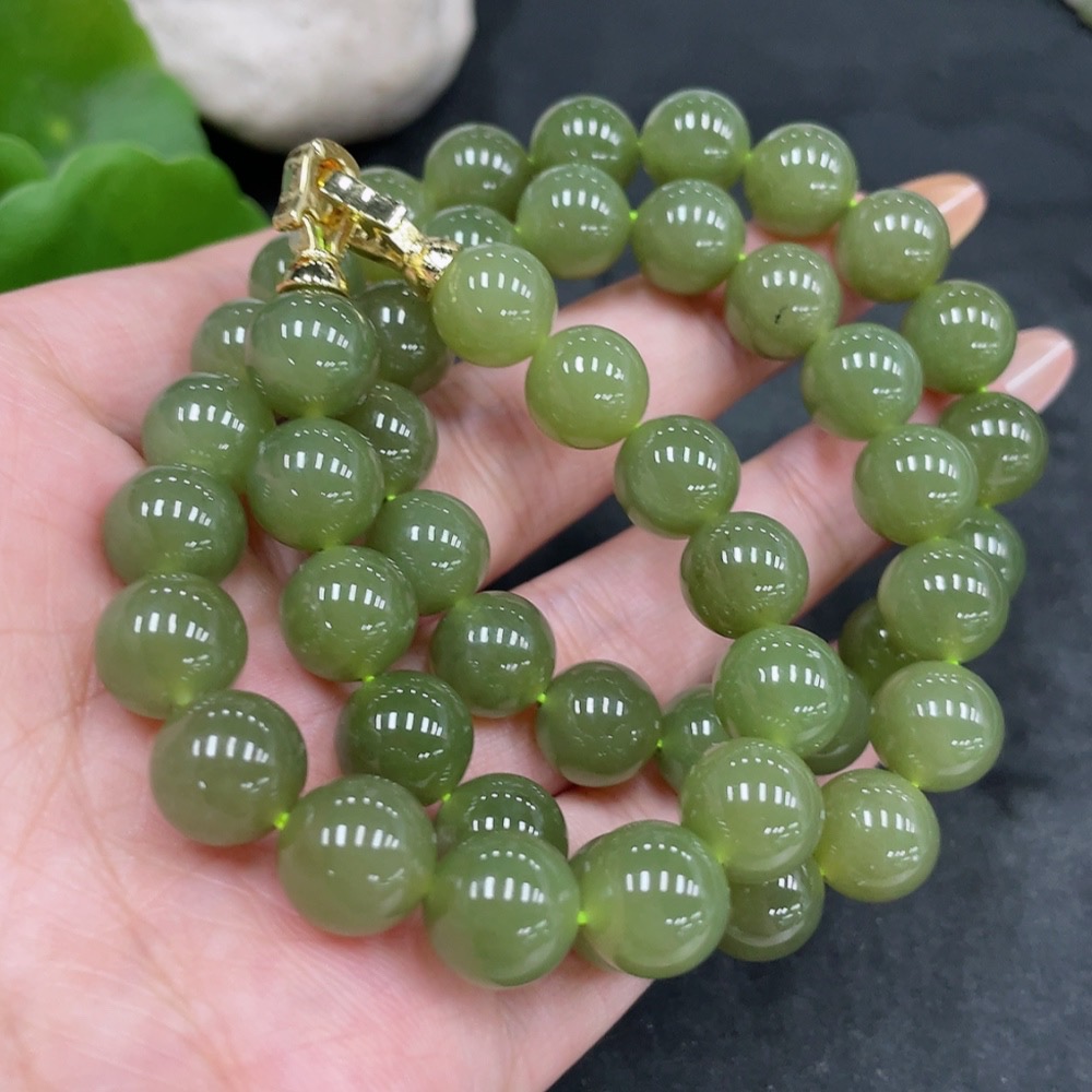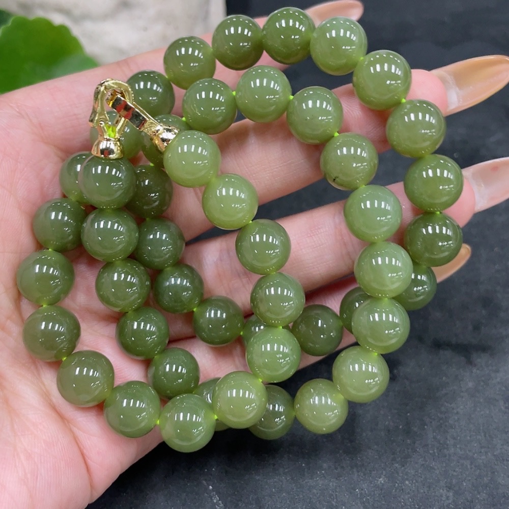 Hetian Jade Bead Necklace, approx. 9.7mm, total weight approx. 78.2g, non-gold