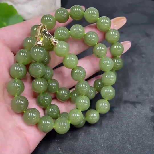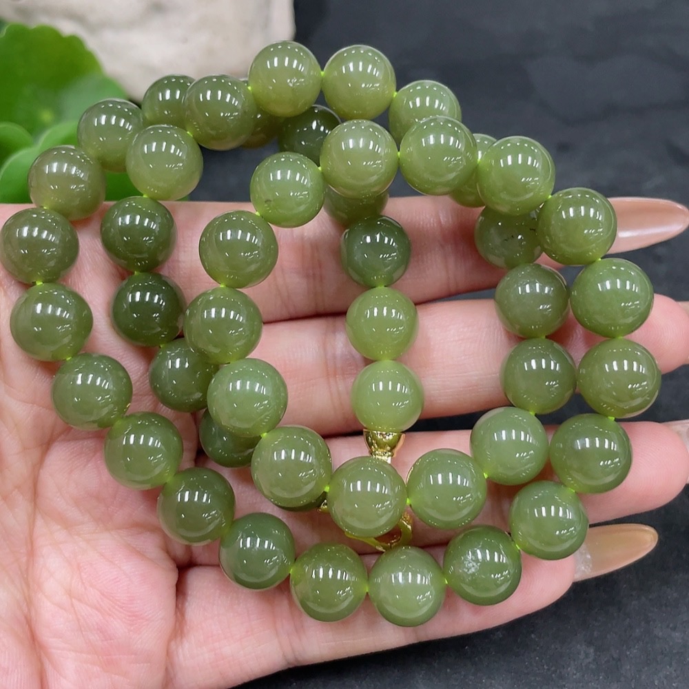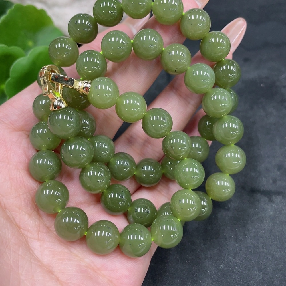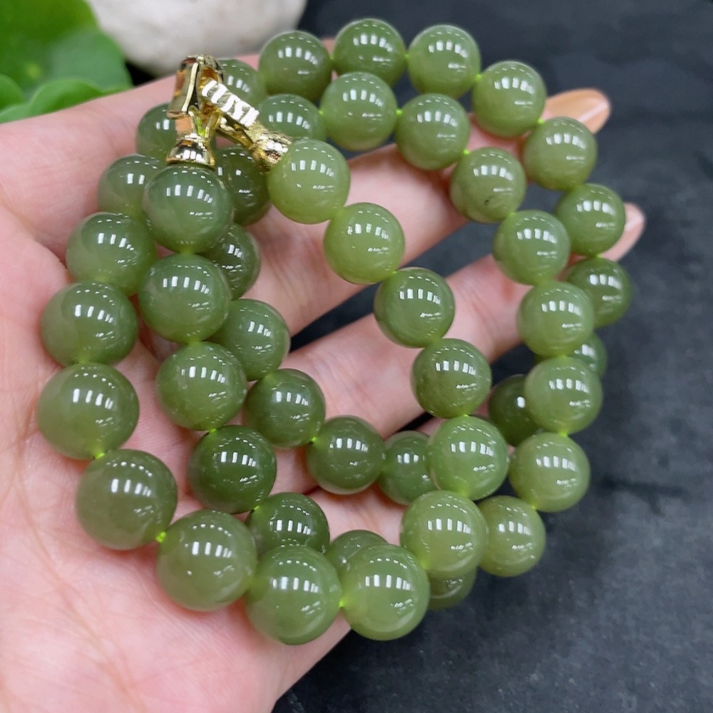 Hetian Jade Bead Necklace, approx. 9.7mm, total weight approx. 78.2g, non-gold