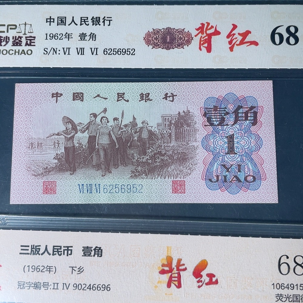 Third Set of RMB One Jiao Three Pieces Red Back Graded Banknotes