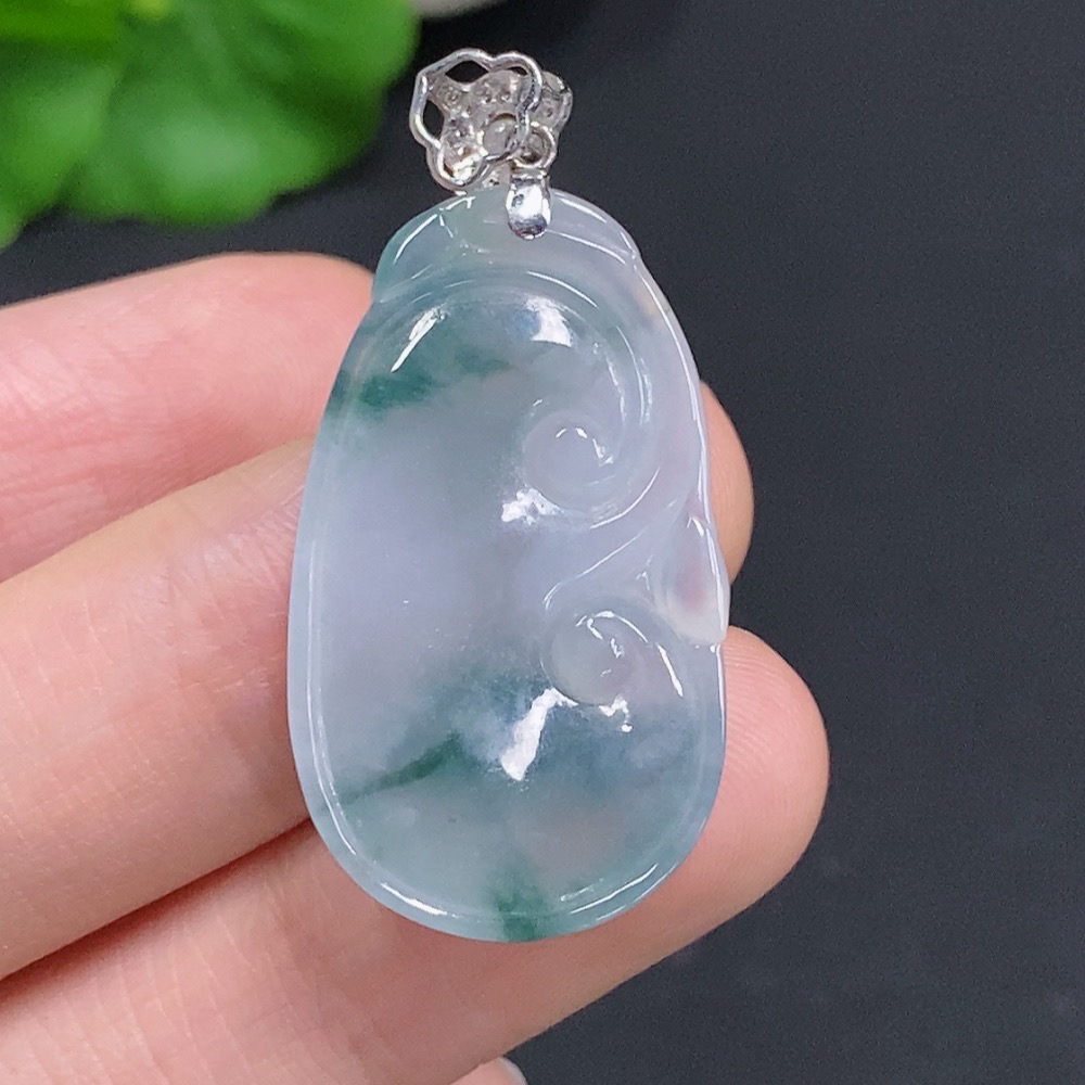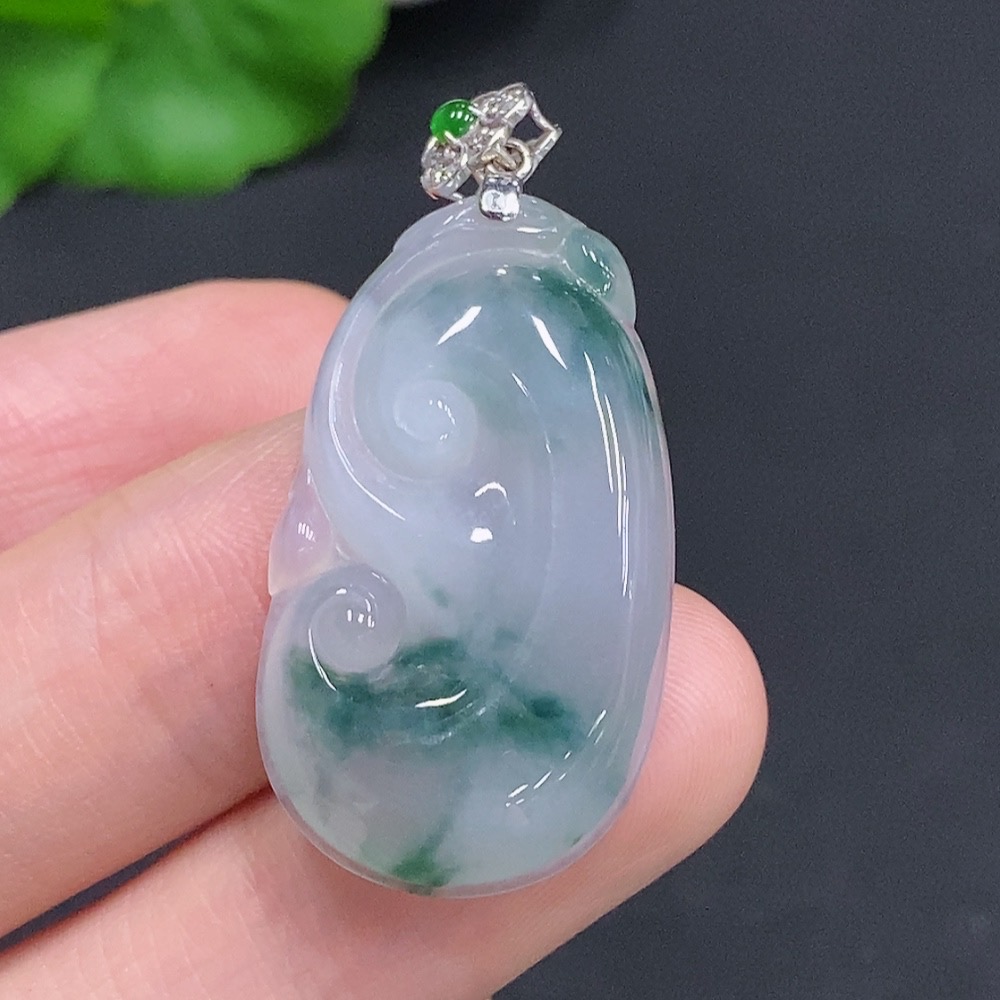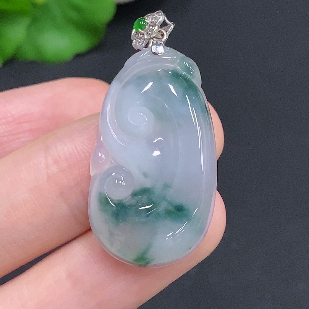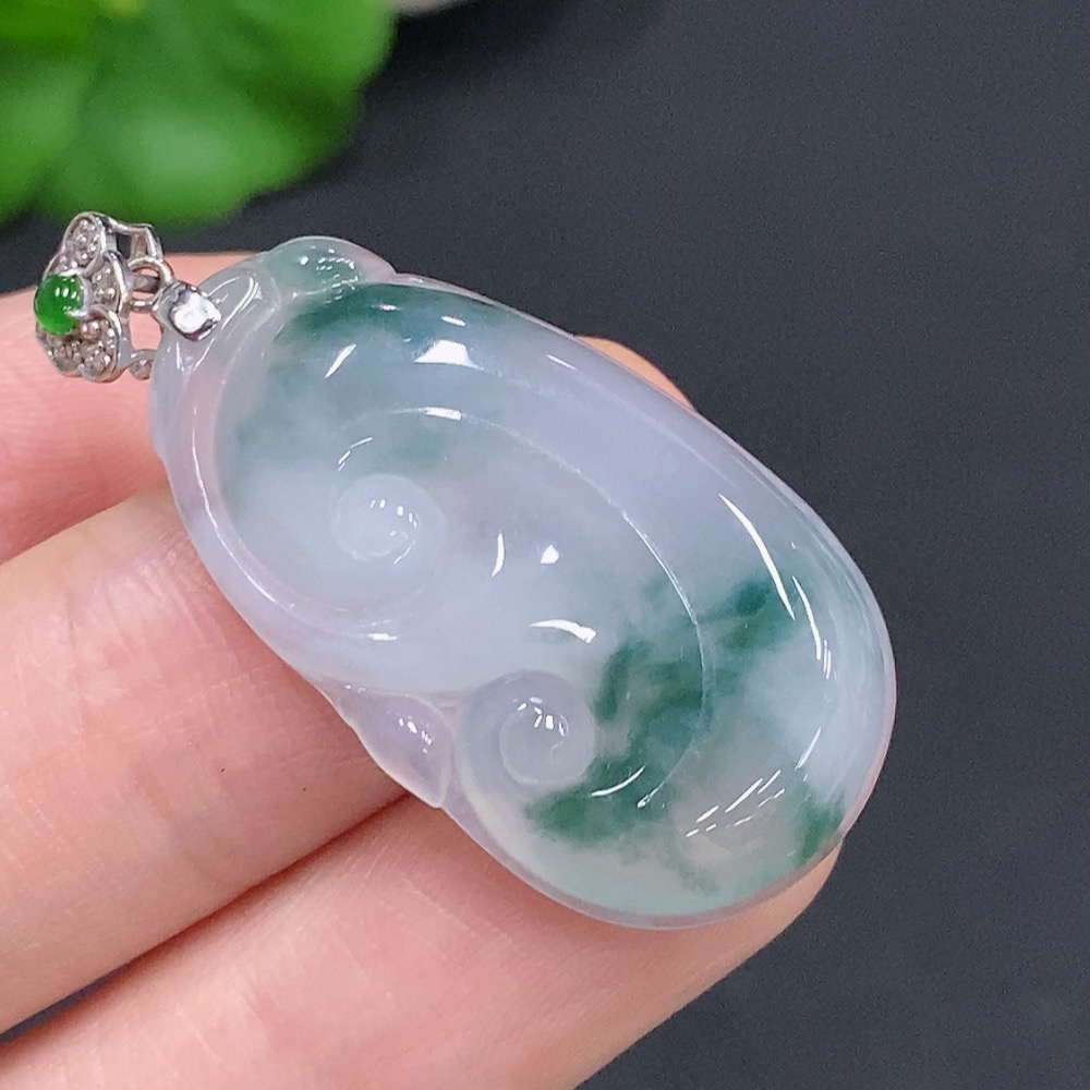 Jadeite Ruyi Pendant with 18K Gold Clasp, Total Weight Approximately 5.4g, Set with Diamonds