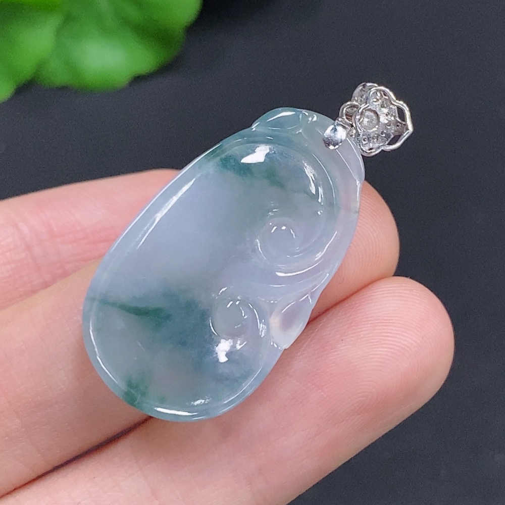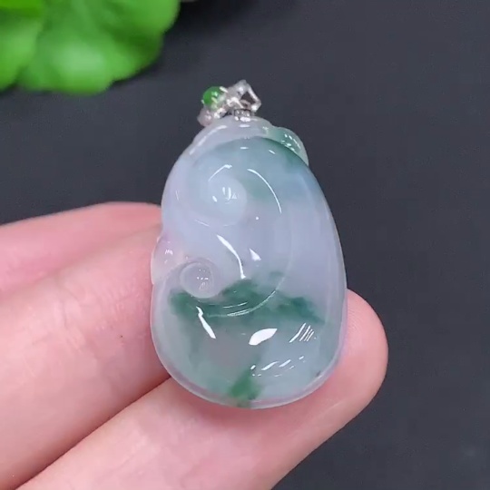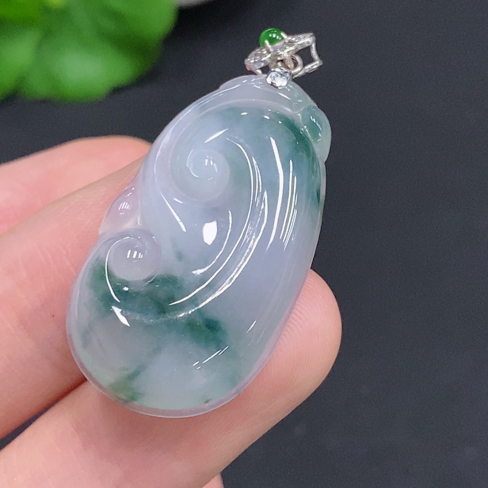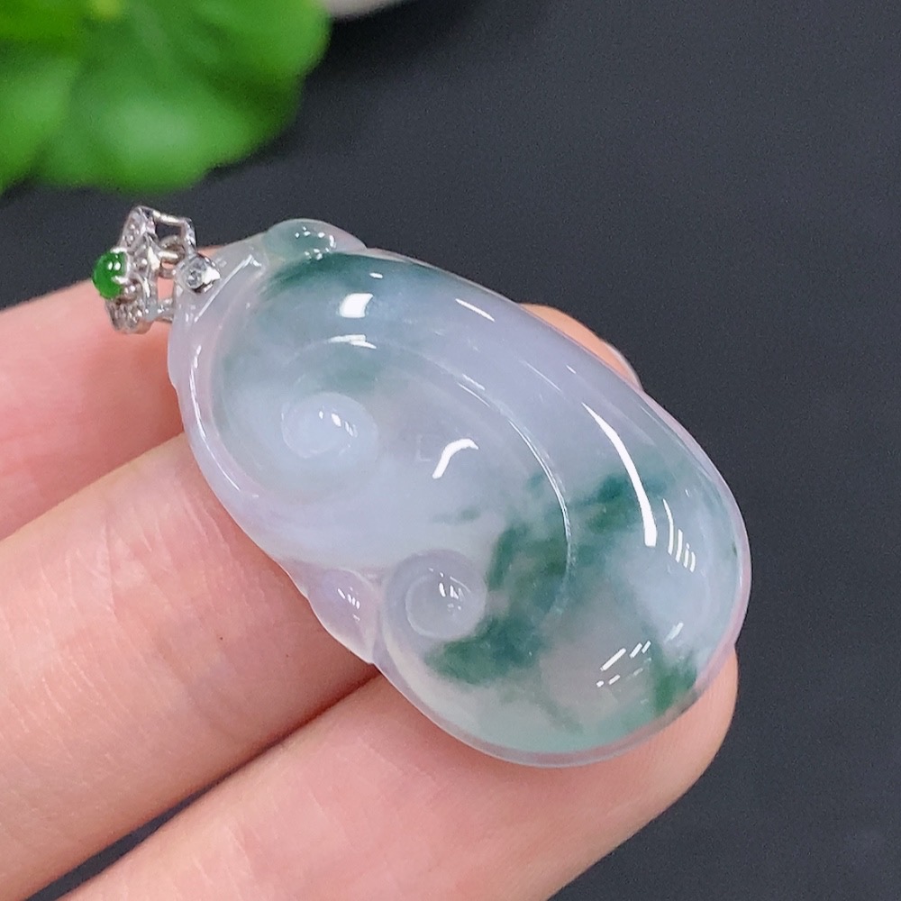 Jadeite Ruyi Pendant with 18K Gold Clasp, Total Weight Approximately 5.4g, Set with Diamonds