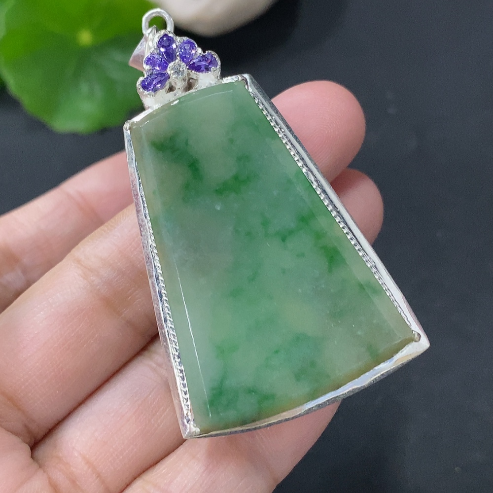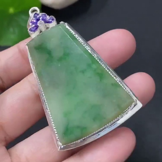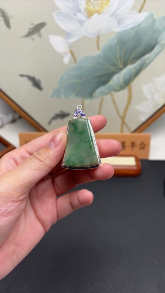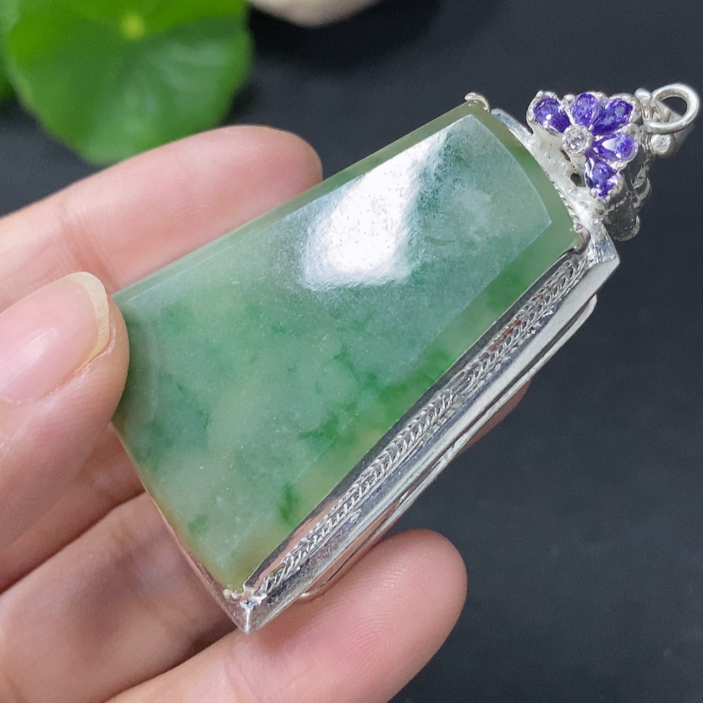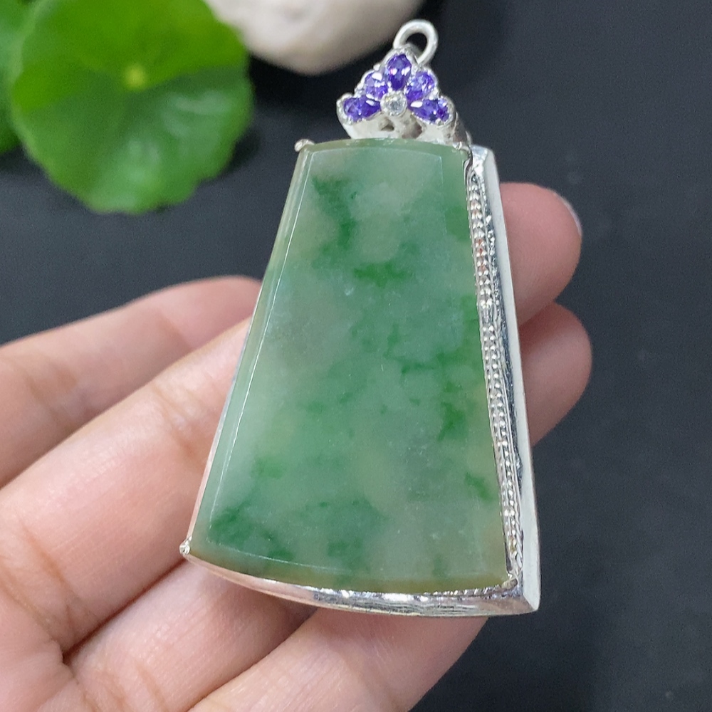 Jadeite Inlaid Plain Pendant with Copper Holder, Total Weight Approx. 28.85g