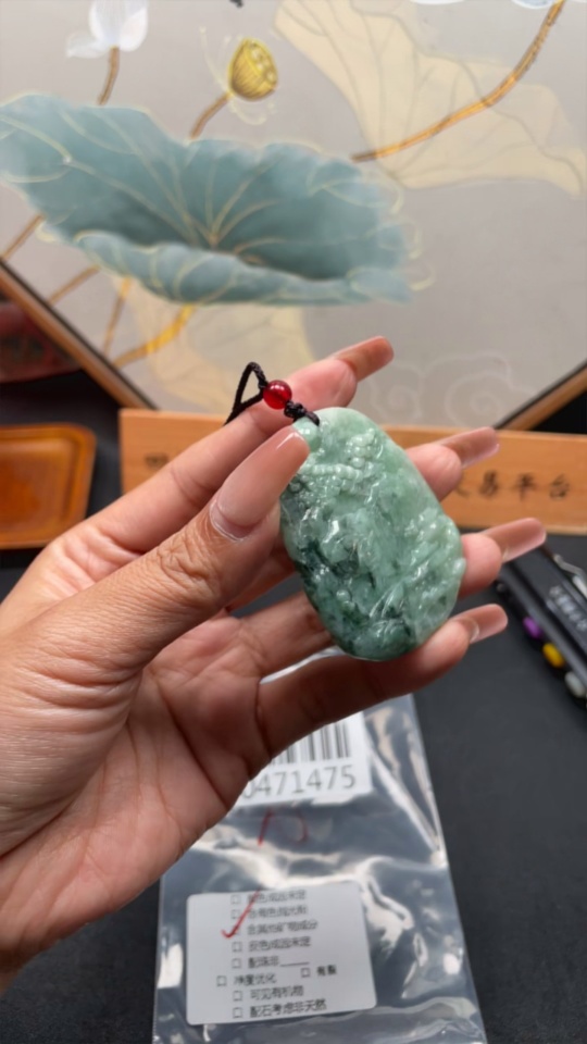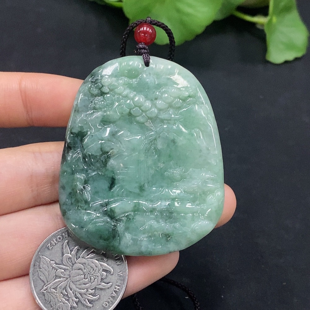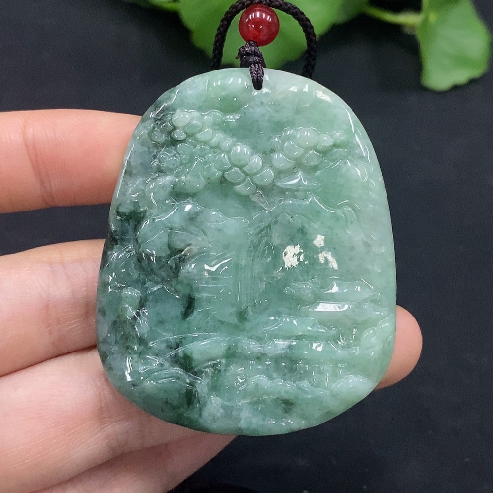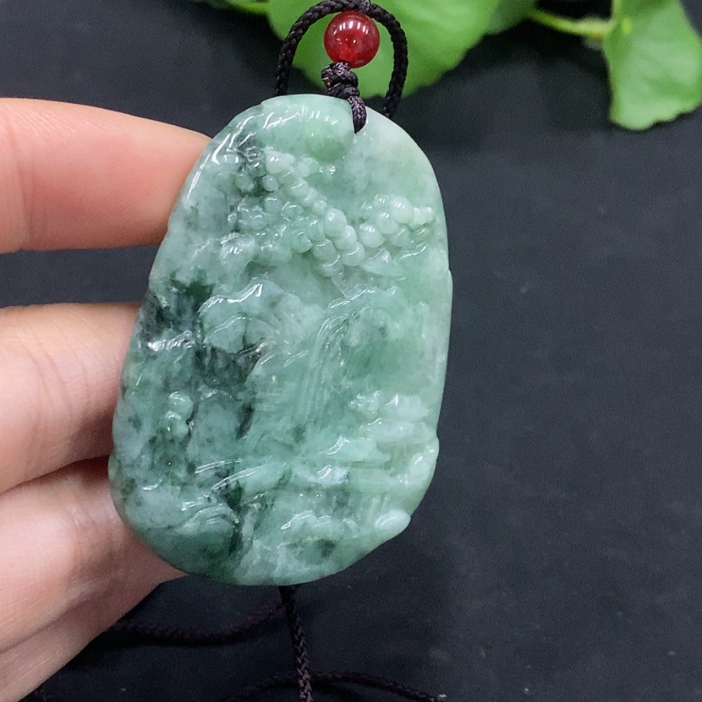 Jadeite Landscape Pendant Total Weight Approx. 33.48g Containing Other Mineral Components