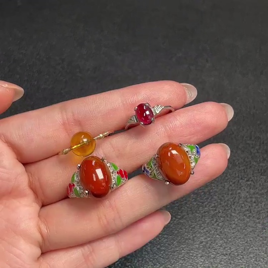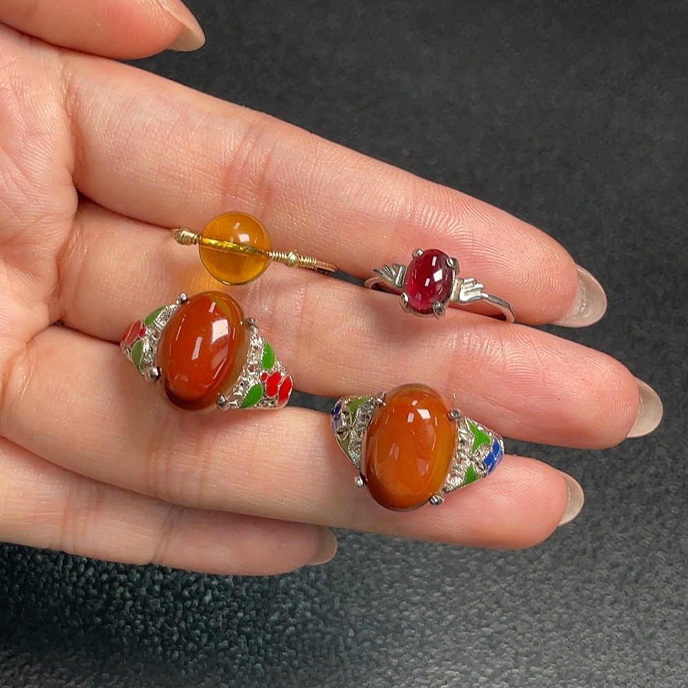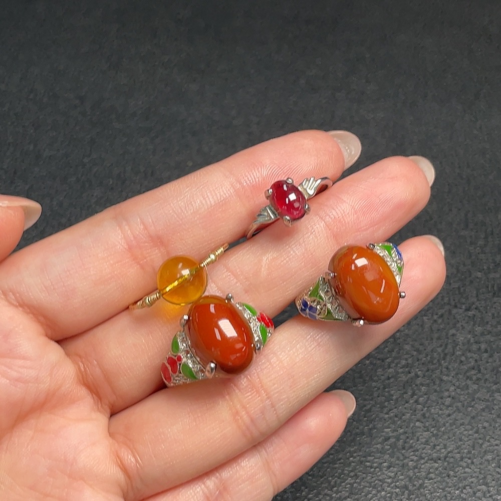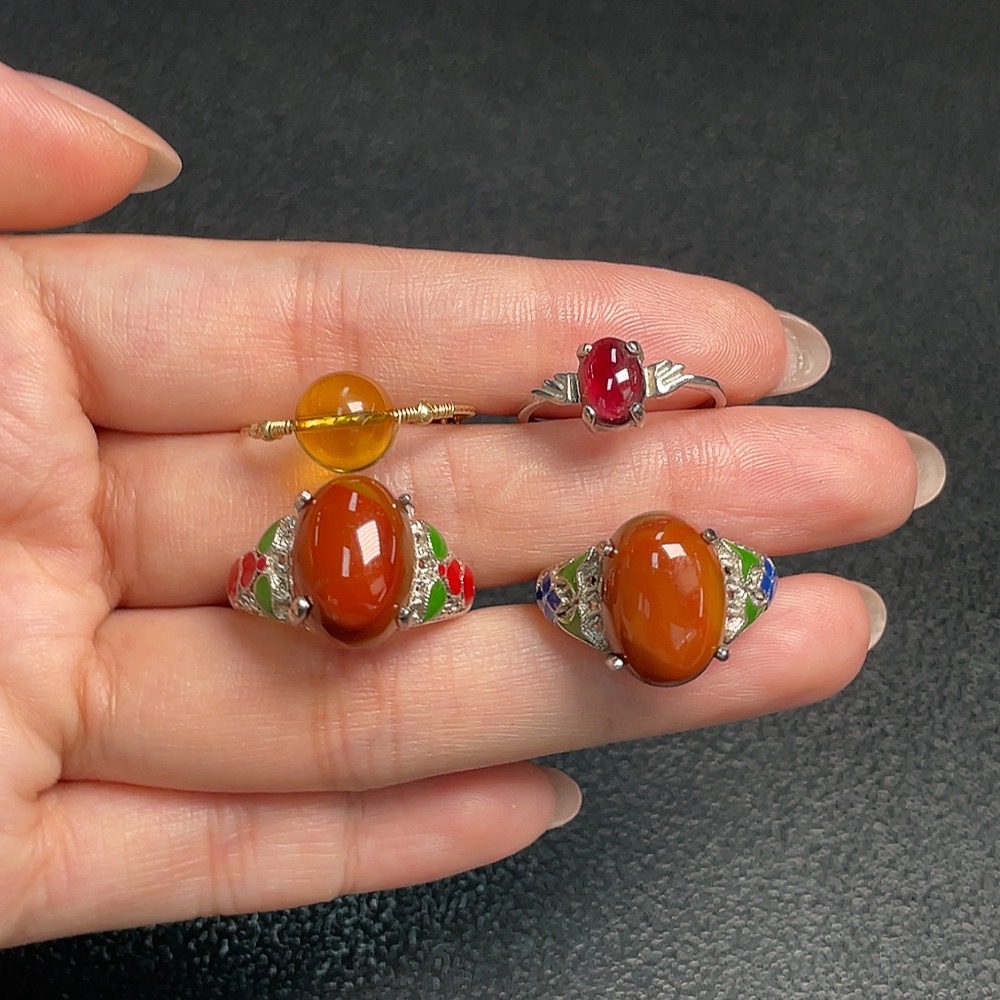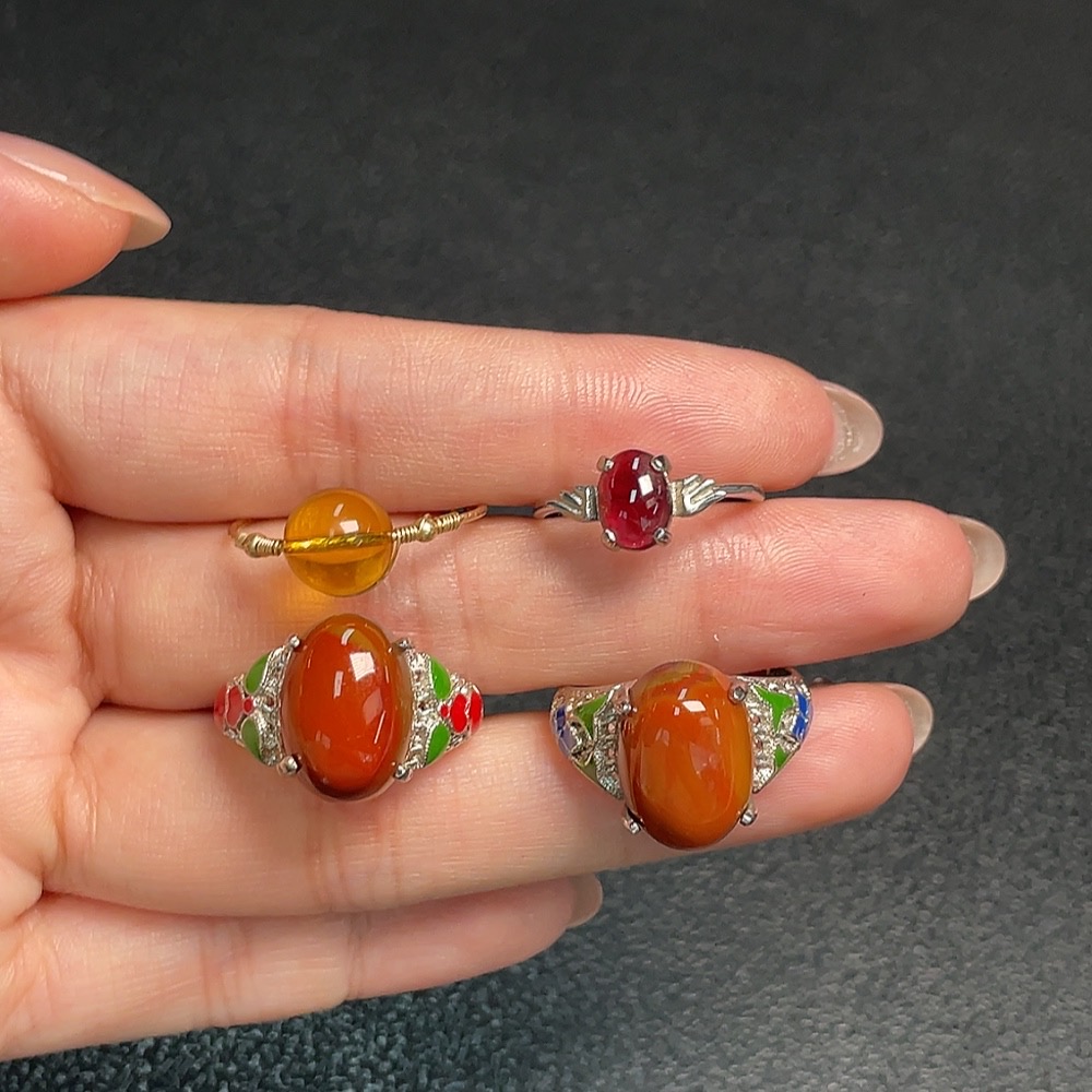 Garnet + Zhanguo Red + Amber Beeswax Ring Non-Gold Total Weight Approx.10.56g Sell as a Lot