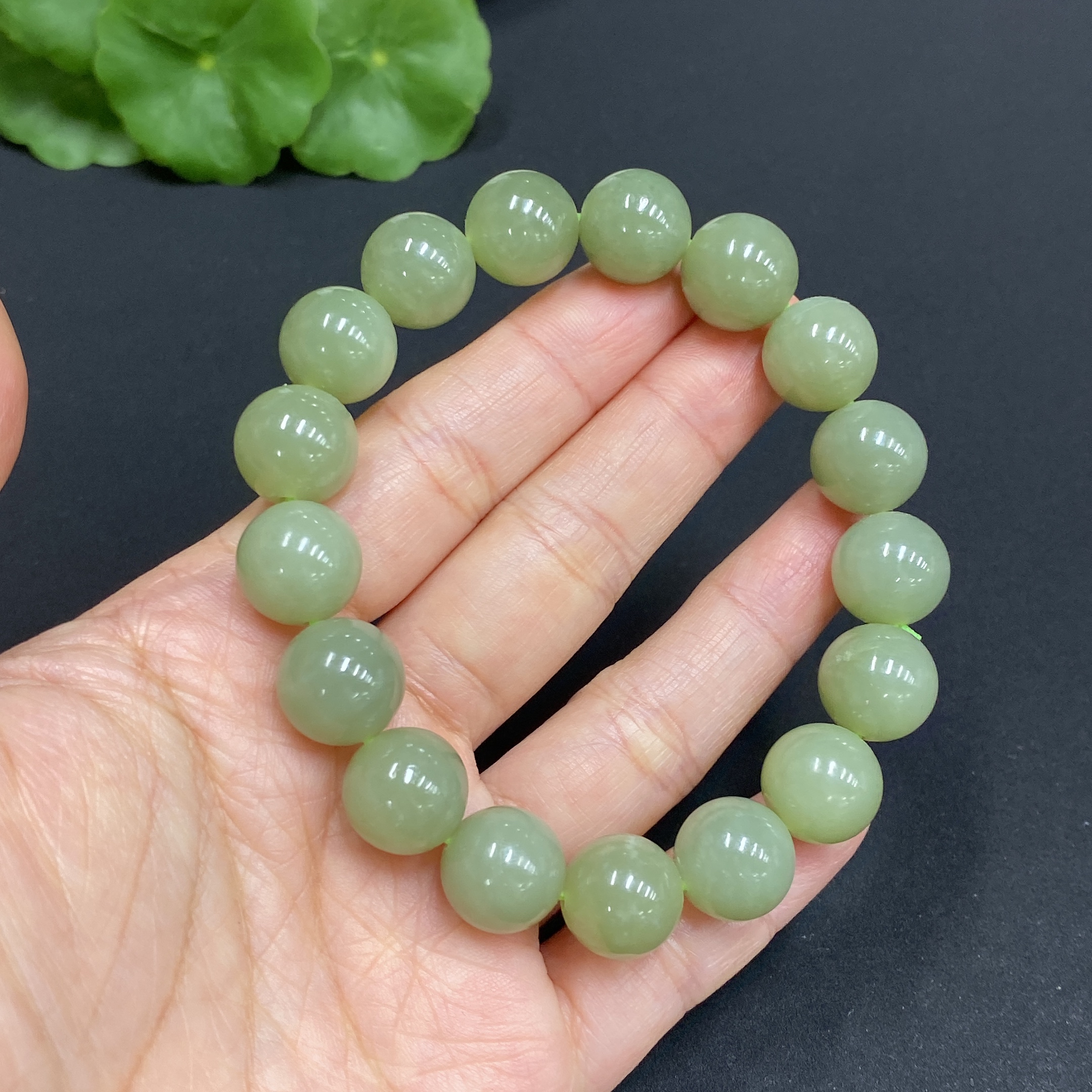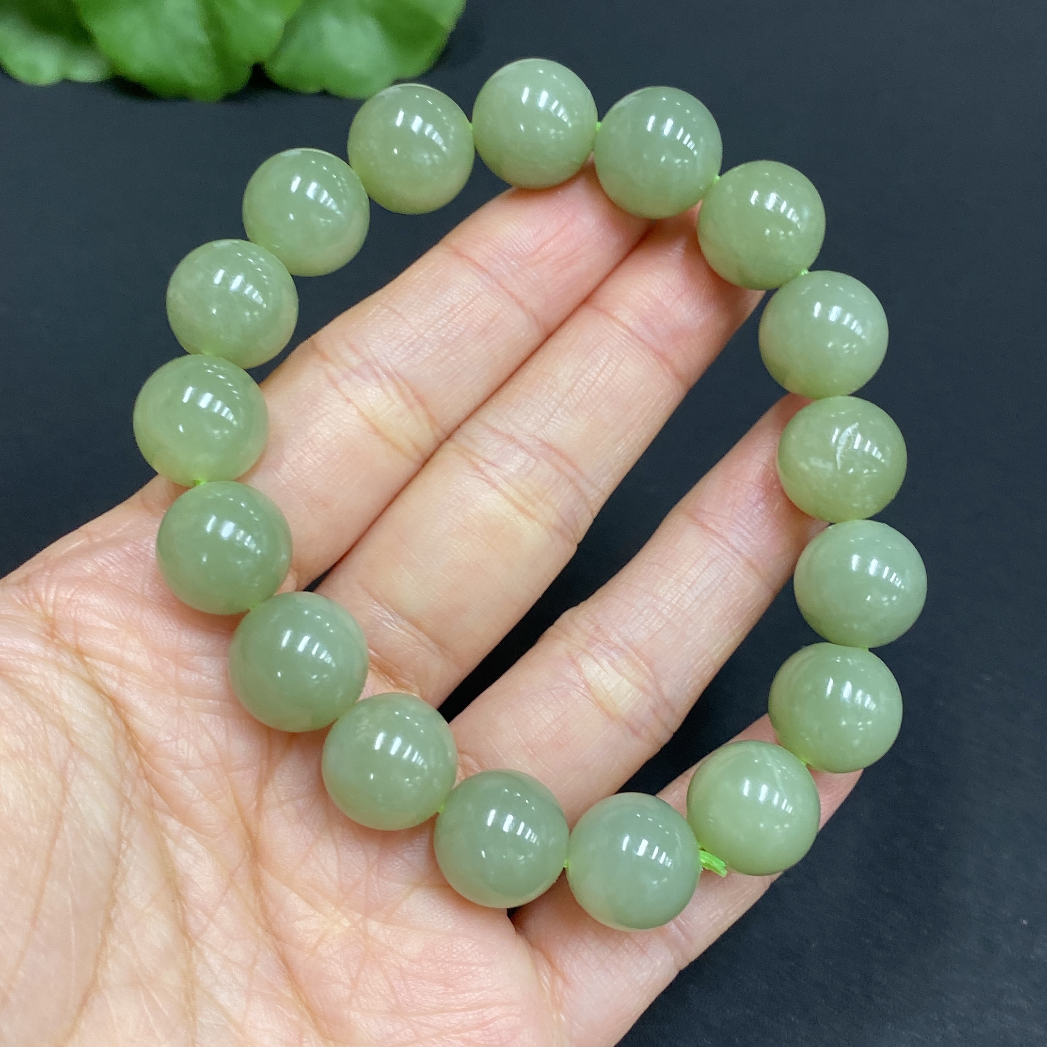 Hetian Jade Bracelet, Approx. 12mm Beads, Total Weight About 46.7g