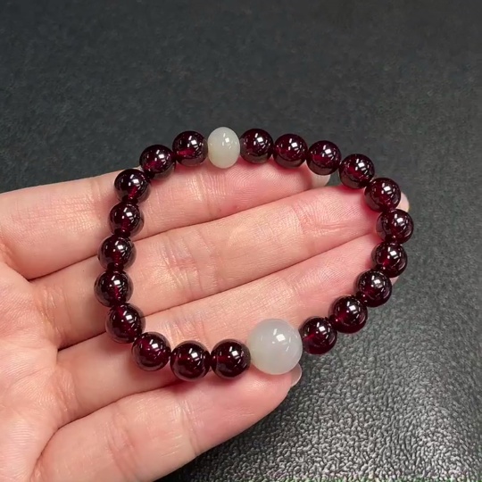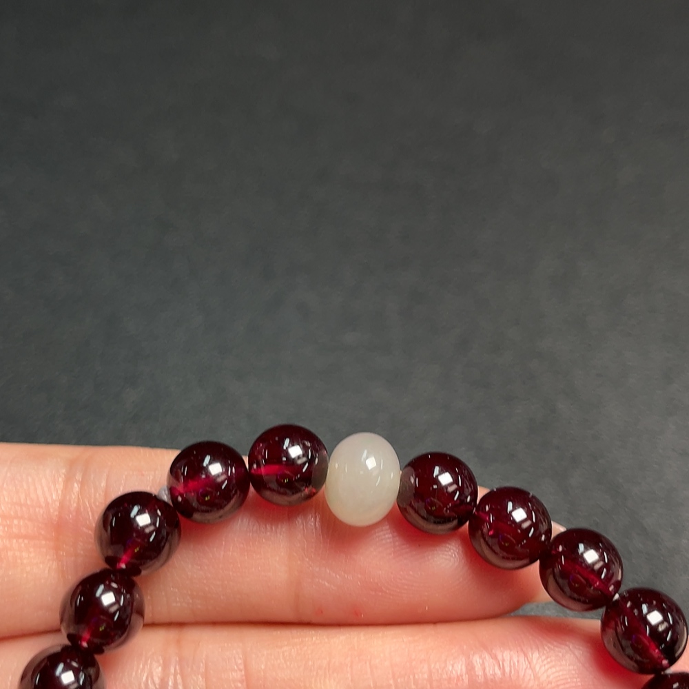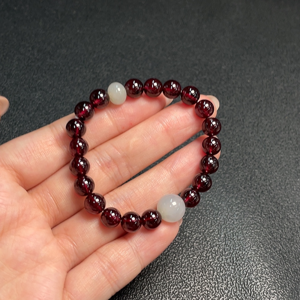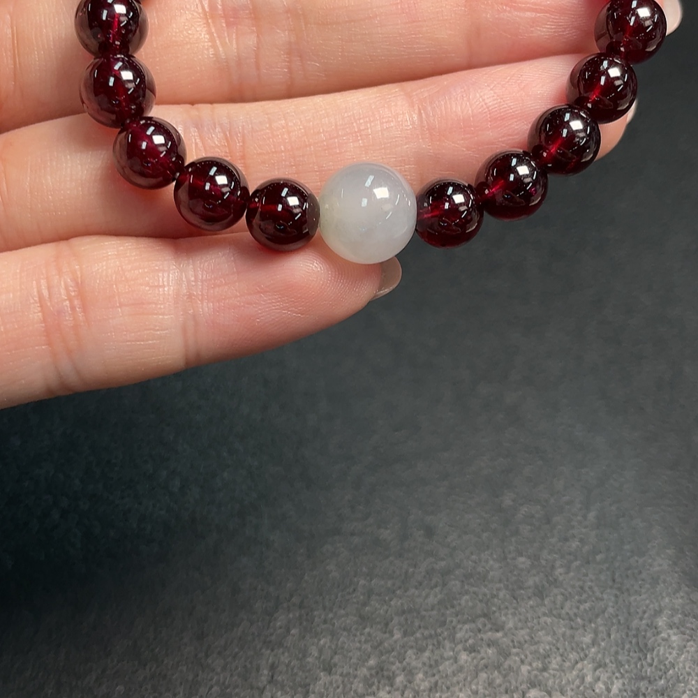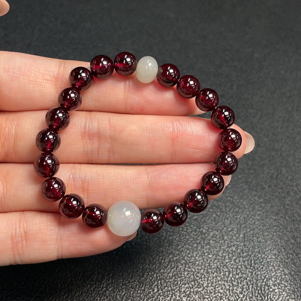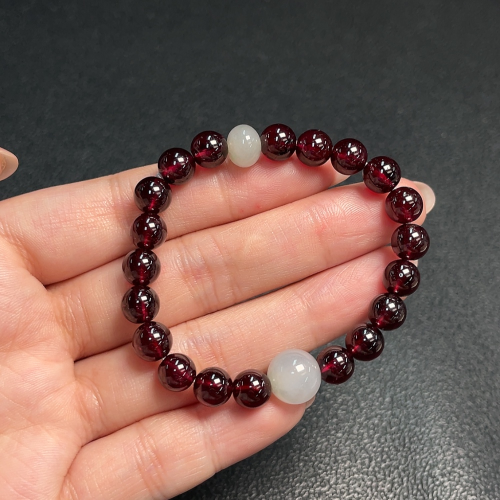 Garnet Bracelet with Jadeite, Total Weight Approx. 18.72g, Size About 7.3mm