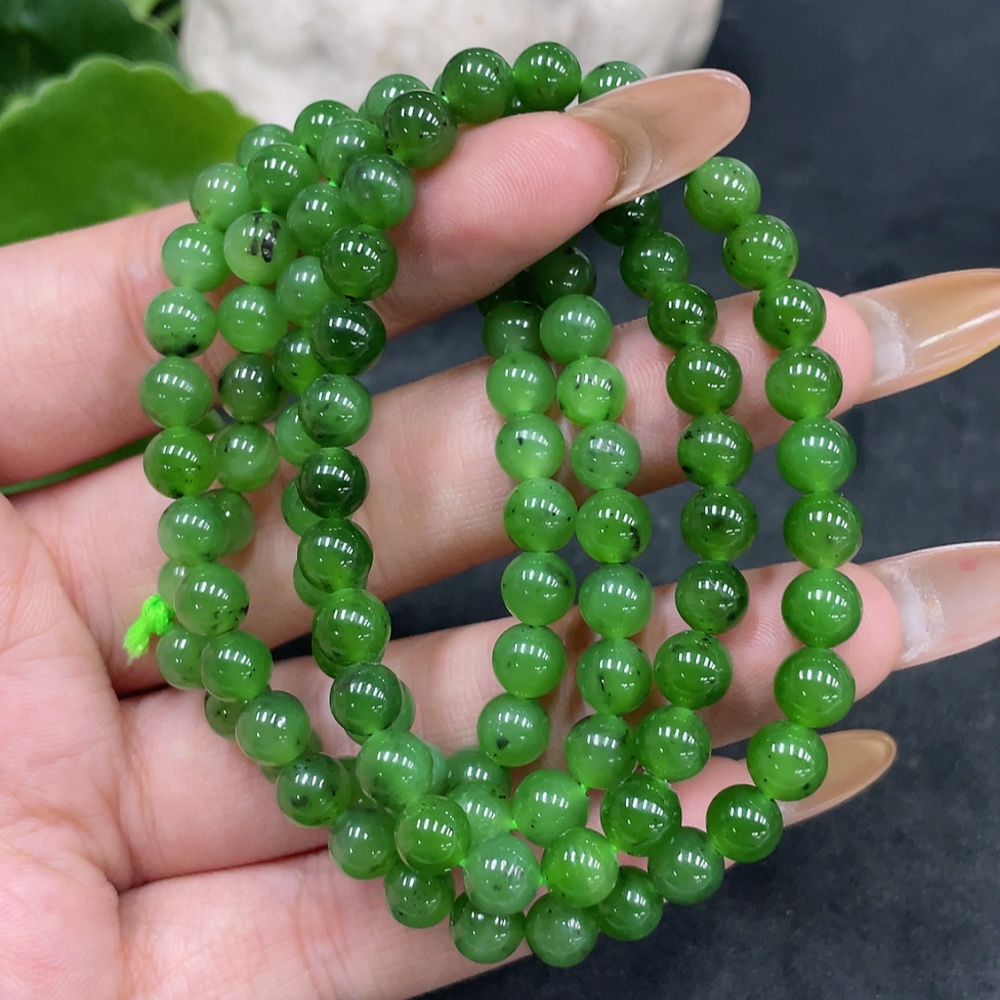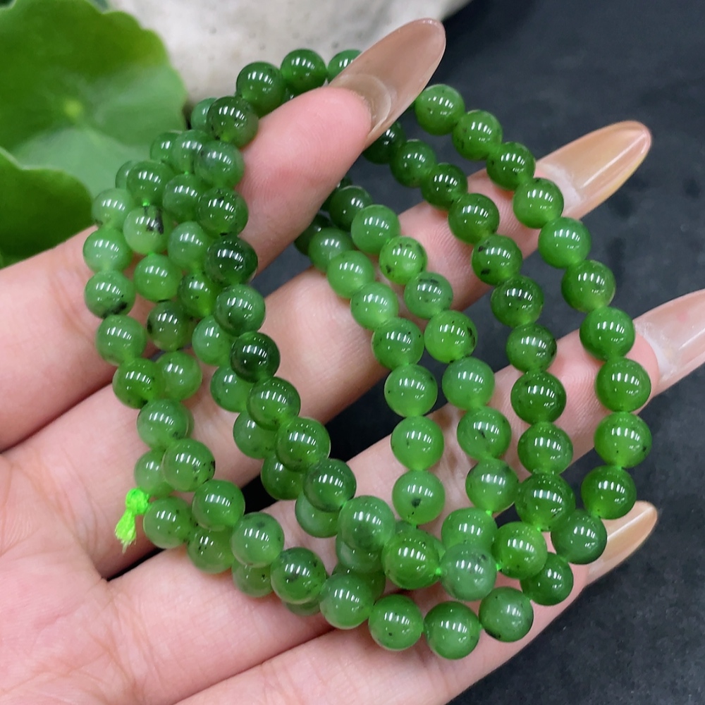 Hetian Jade Bead Necklace, Approx. 5.7mm, Total Weight Approx. 33.5g