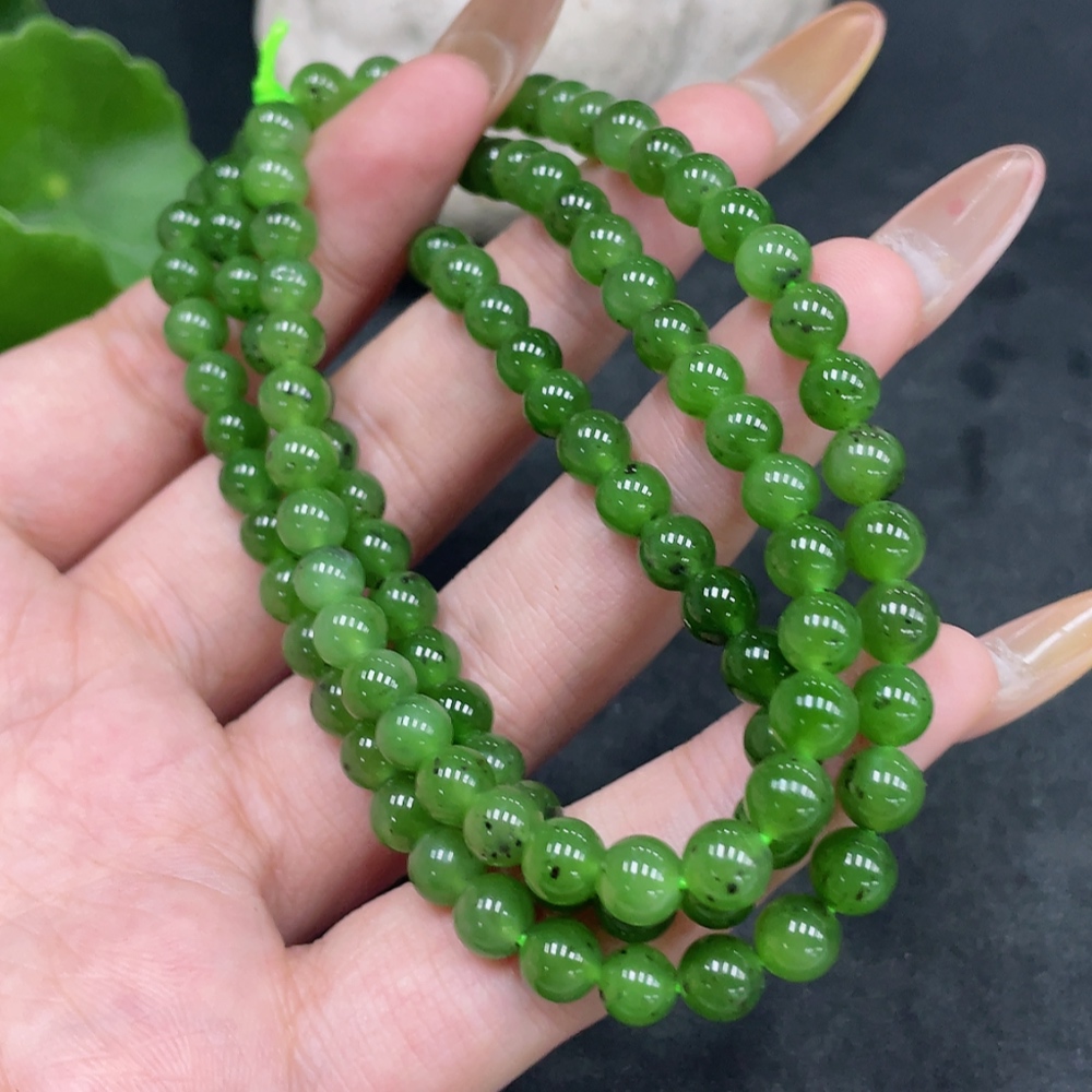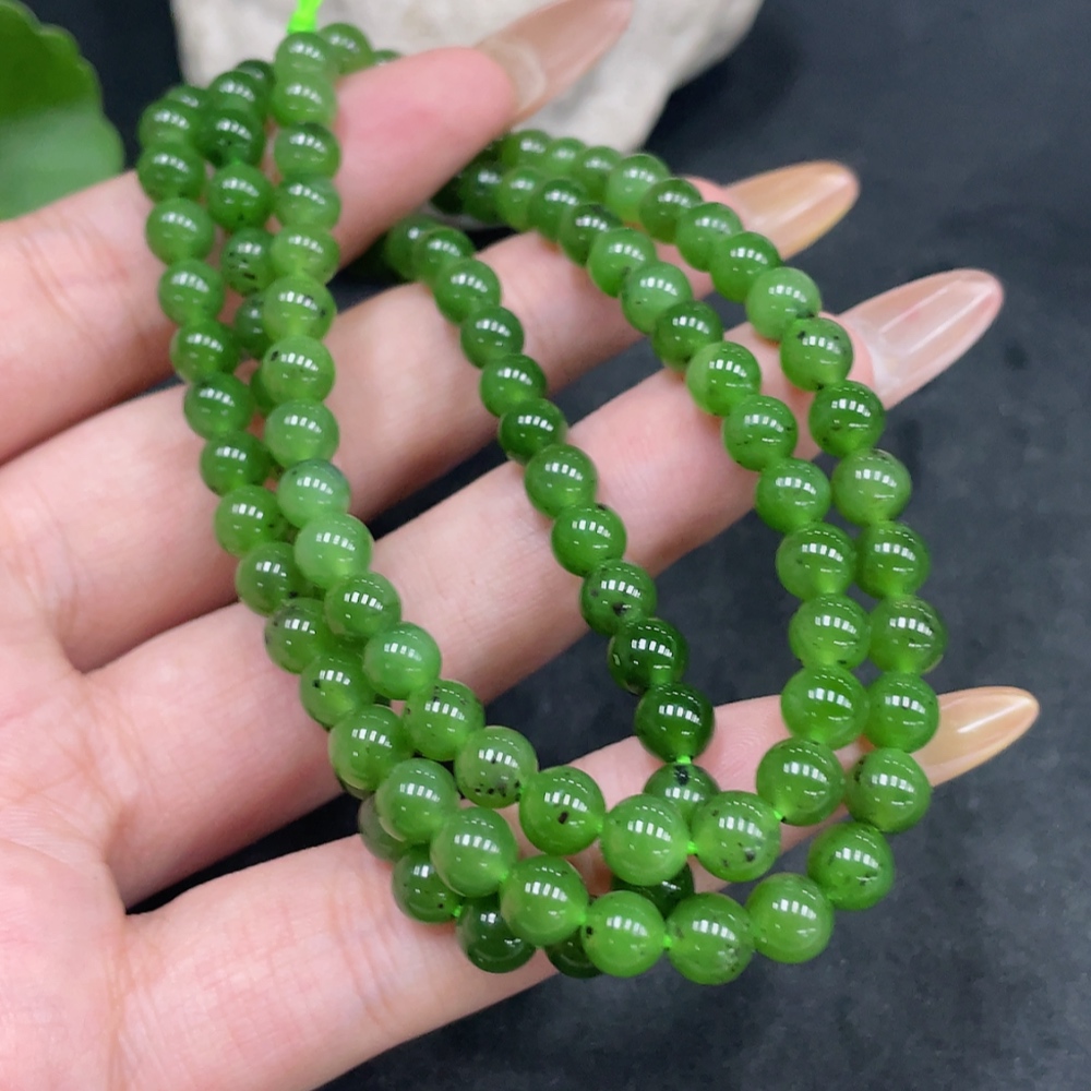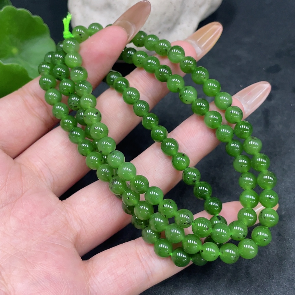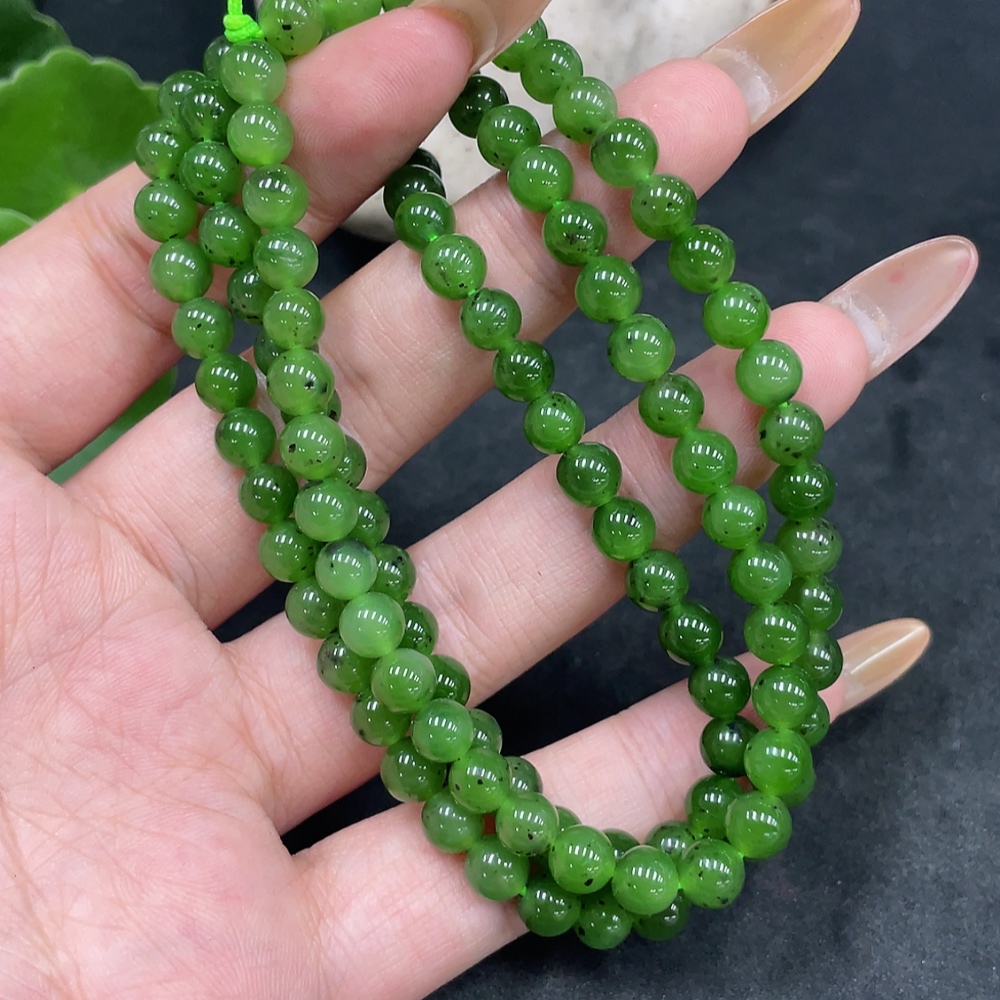 Hetian Jade Bead Necklace Approx. 5.6mm Total Weight About 34g