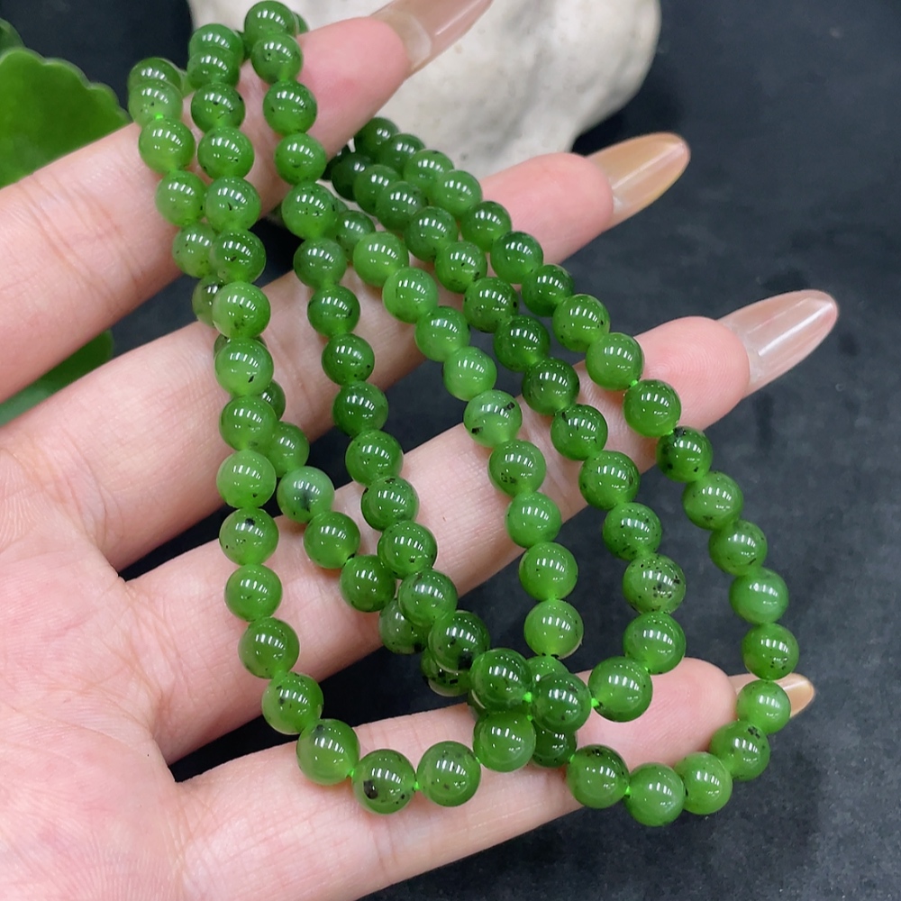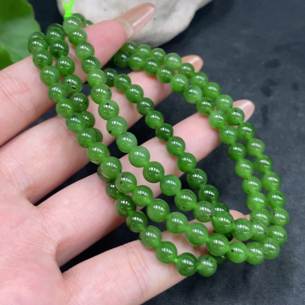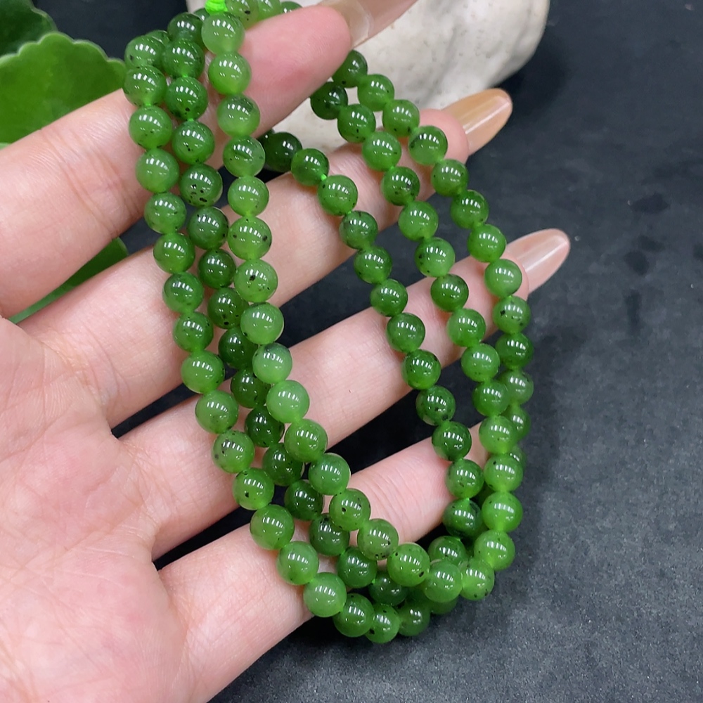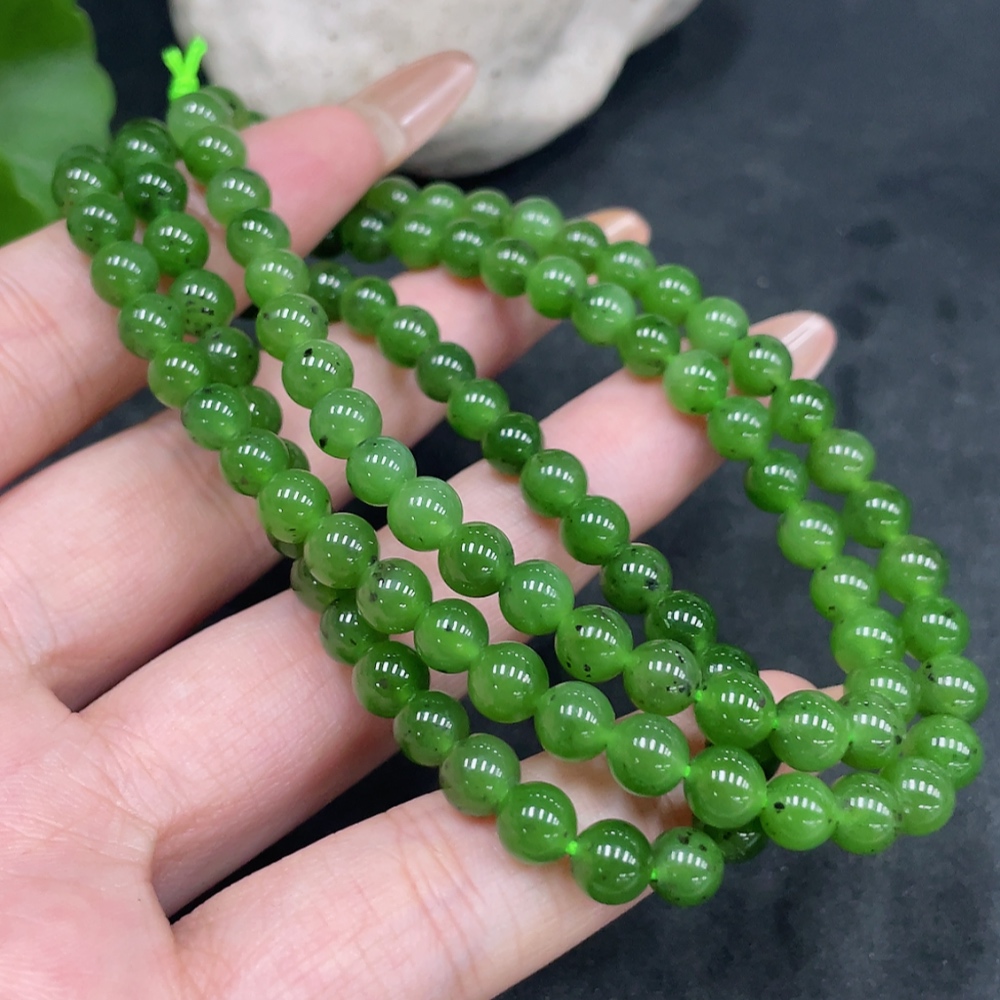 Hetian Jade Bead Necklace Approx. 5.6mm Total Weight About 34g