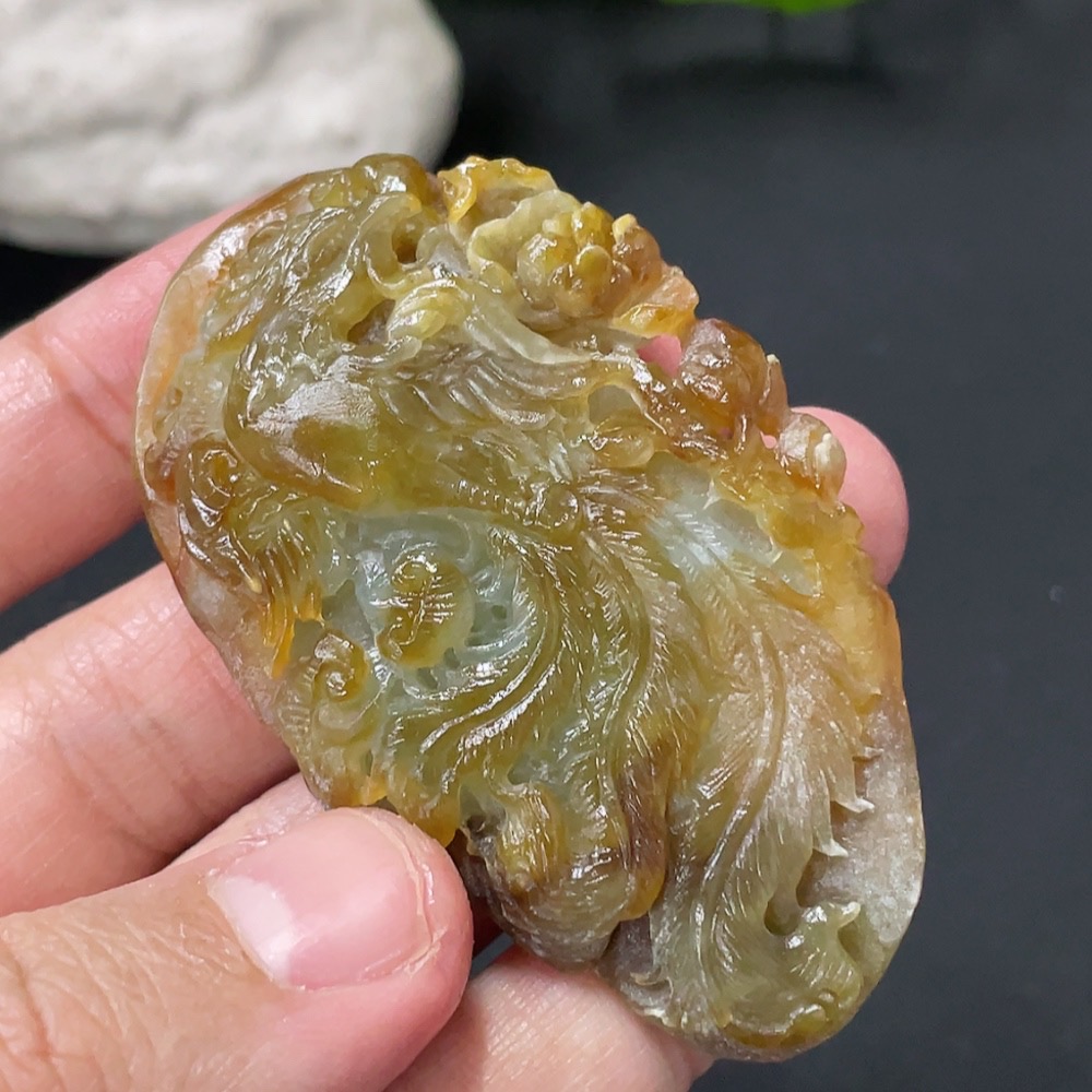 Jadeite Rough Phoenix Pendant Total Weight Approx.32g Color Origin Undetermined
