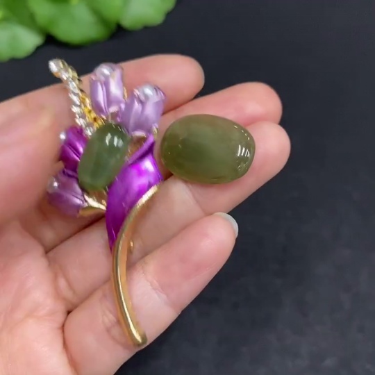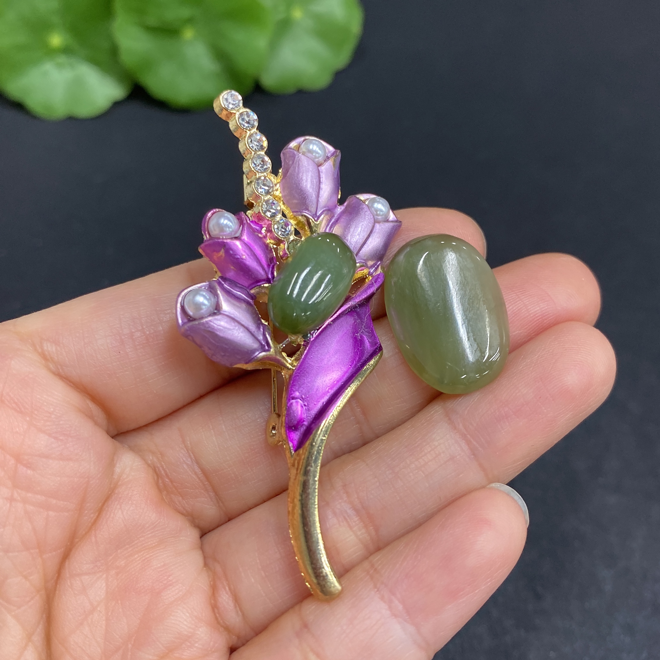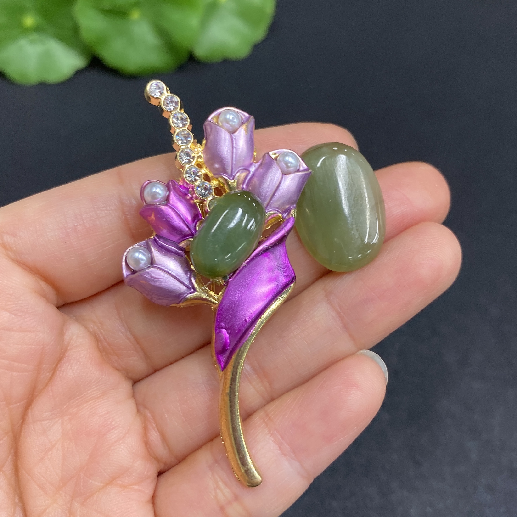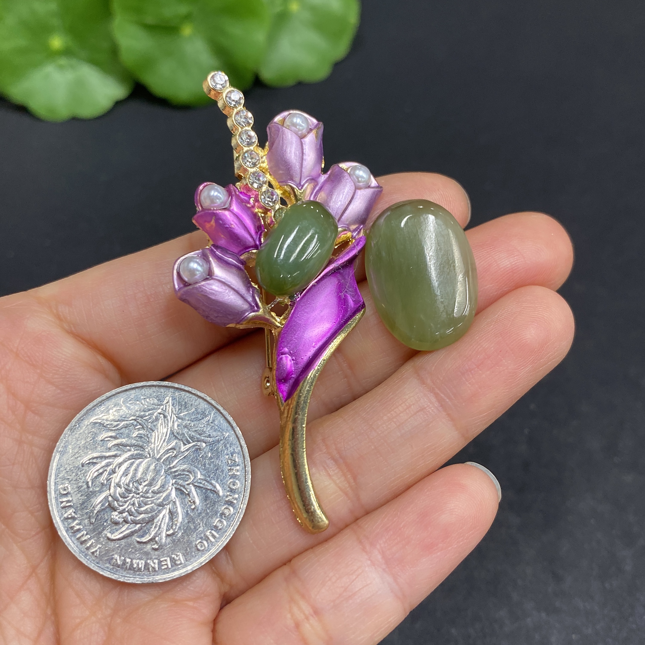 Hetian Jade Cabochon Inlaid Brooch (Total Weight Approx. 9.5g, Non-Gold)