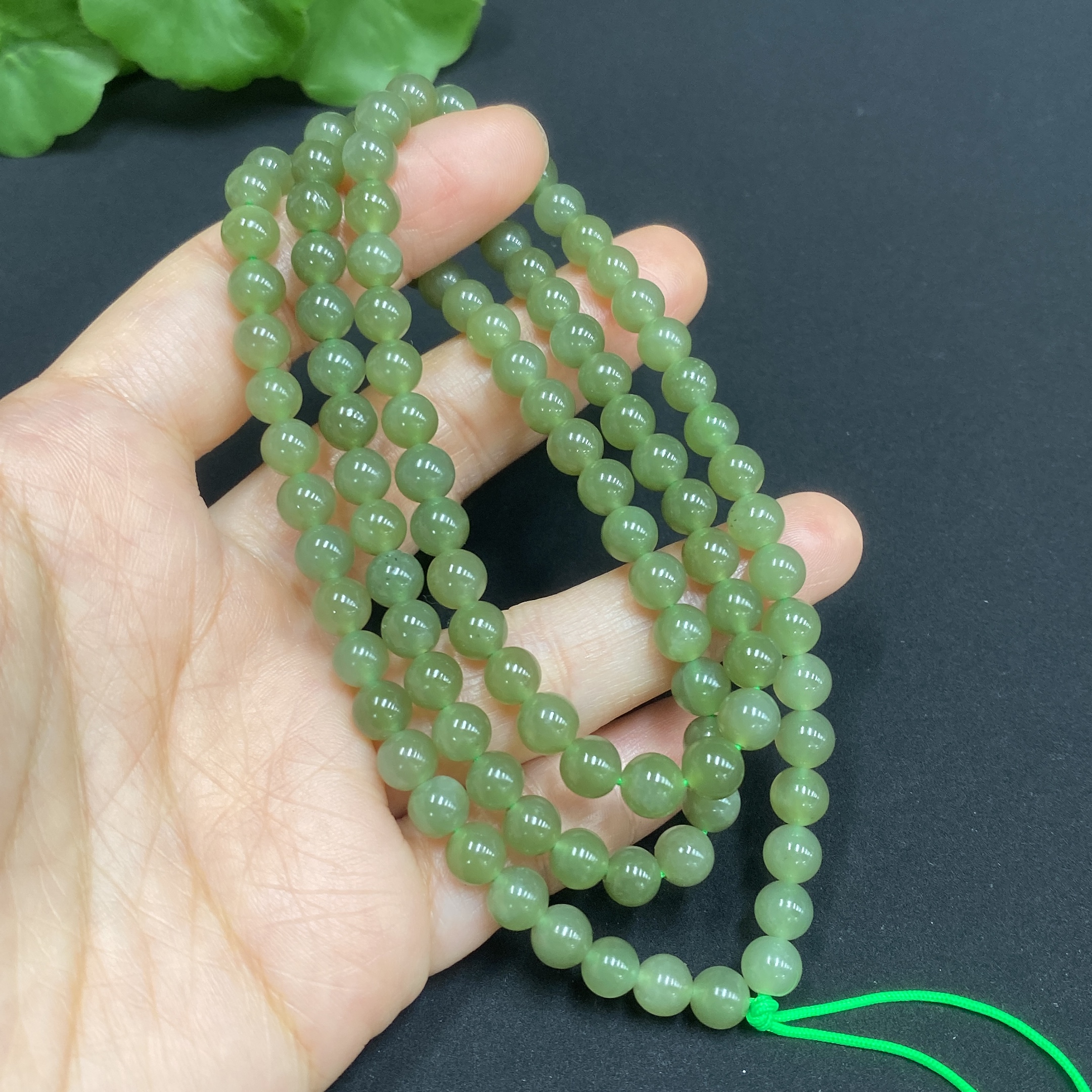 Hetian Jade Bead Necklace Approx. 5.7mm Total Weight Approx. 33.7g