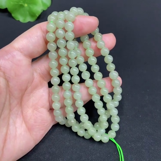 Hetian Jade Bead Necklace Approximately 6.1mm Total Weight About 37.2g