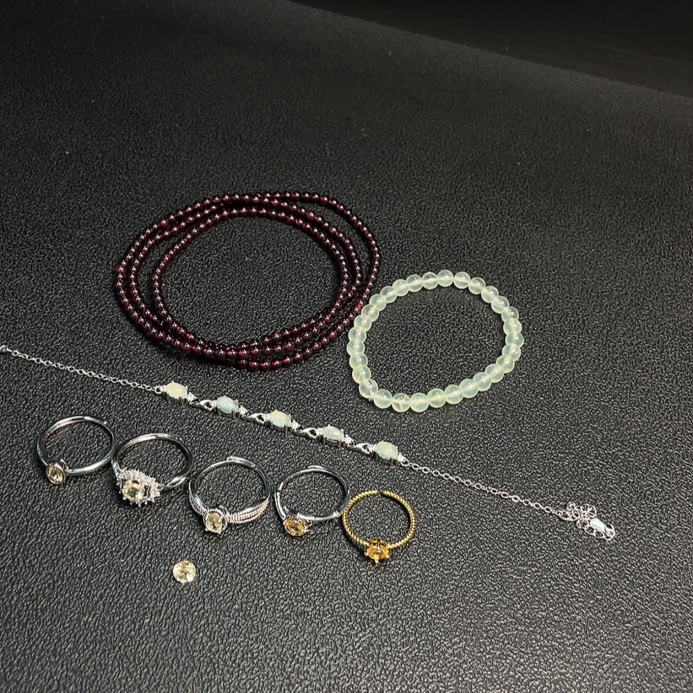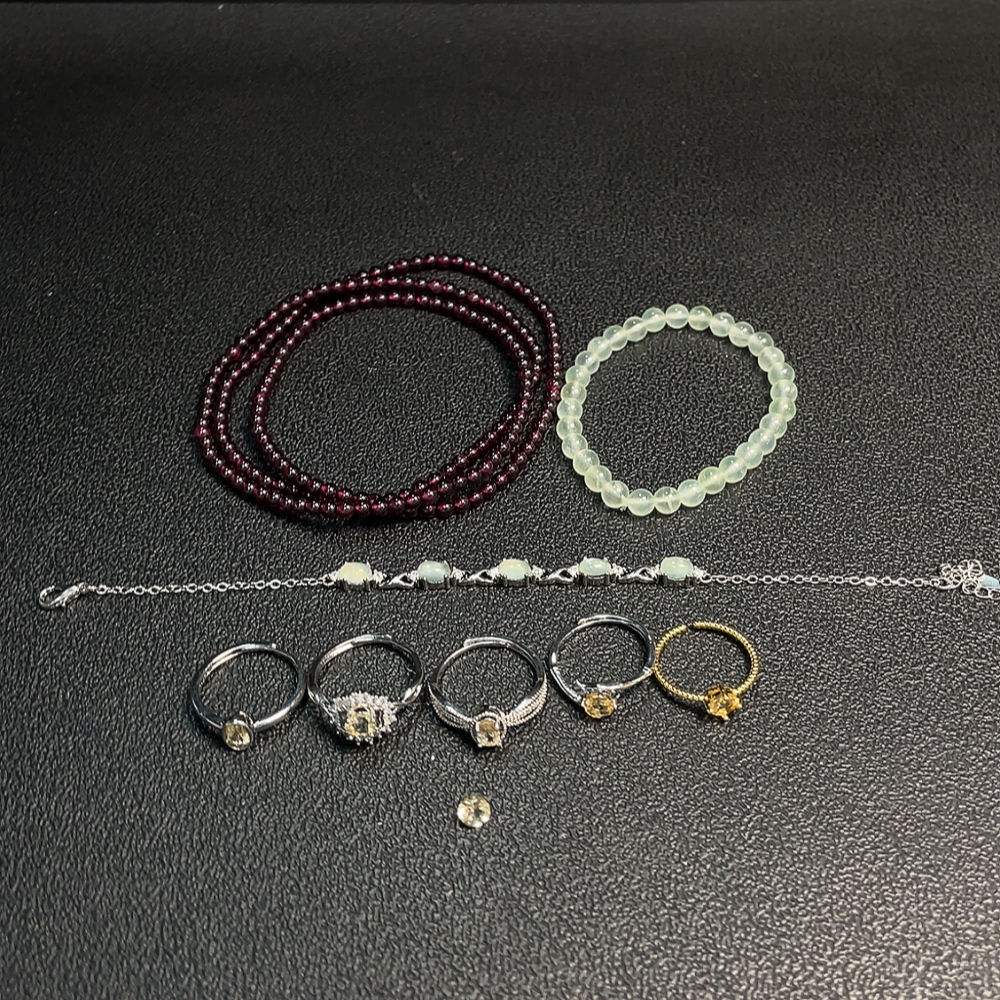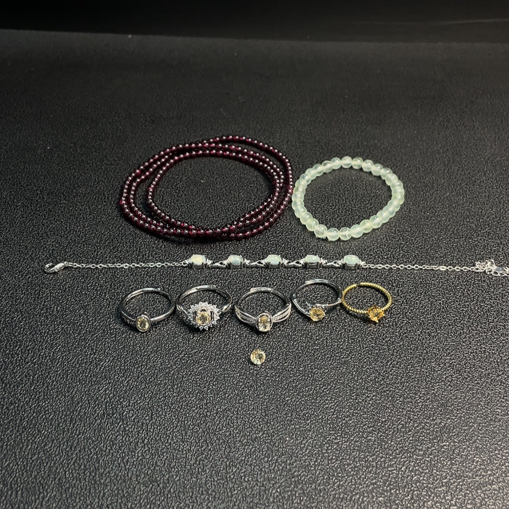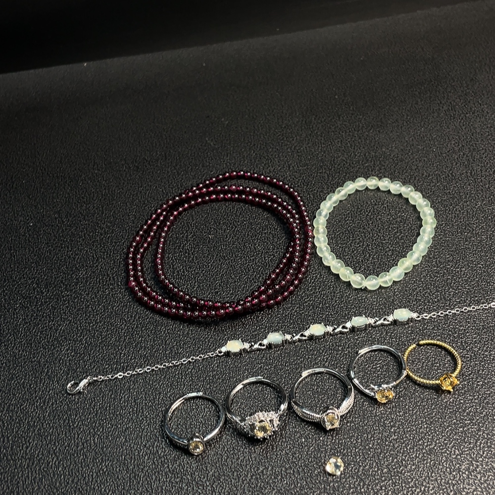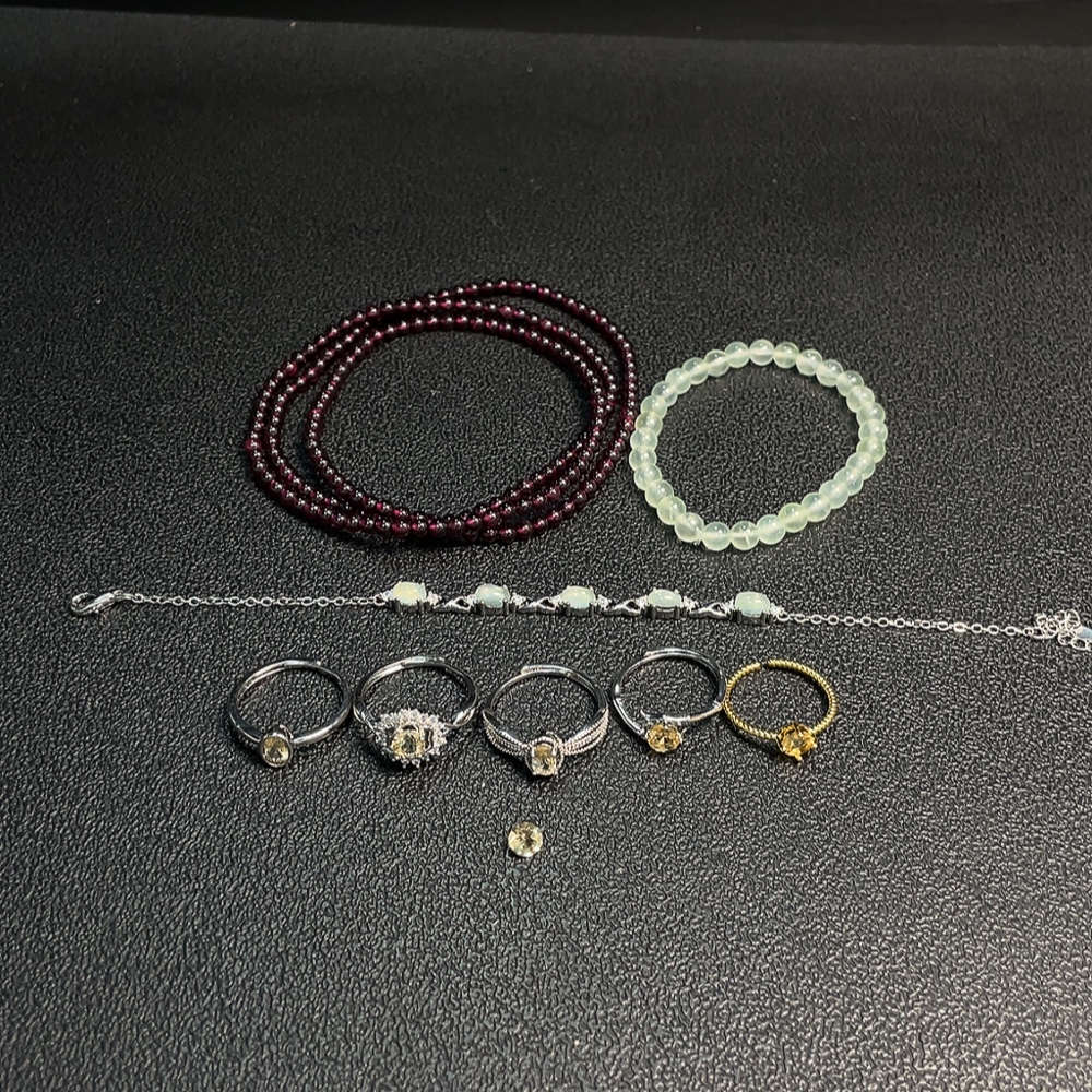 Garnet + Crystal + Prehnite Jewelry Non-Gold Total Weight Approx. 37.28g Sell as a Lot