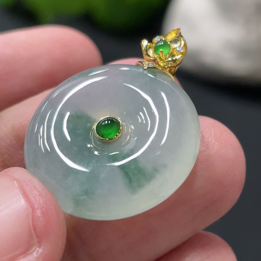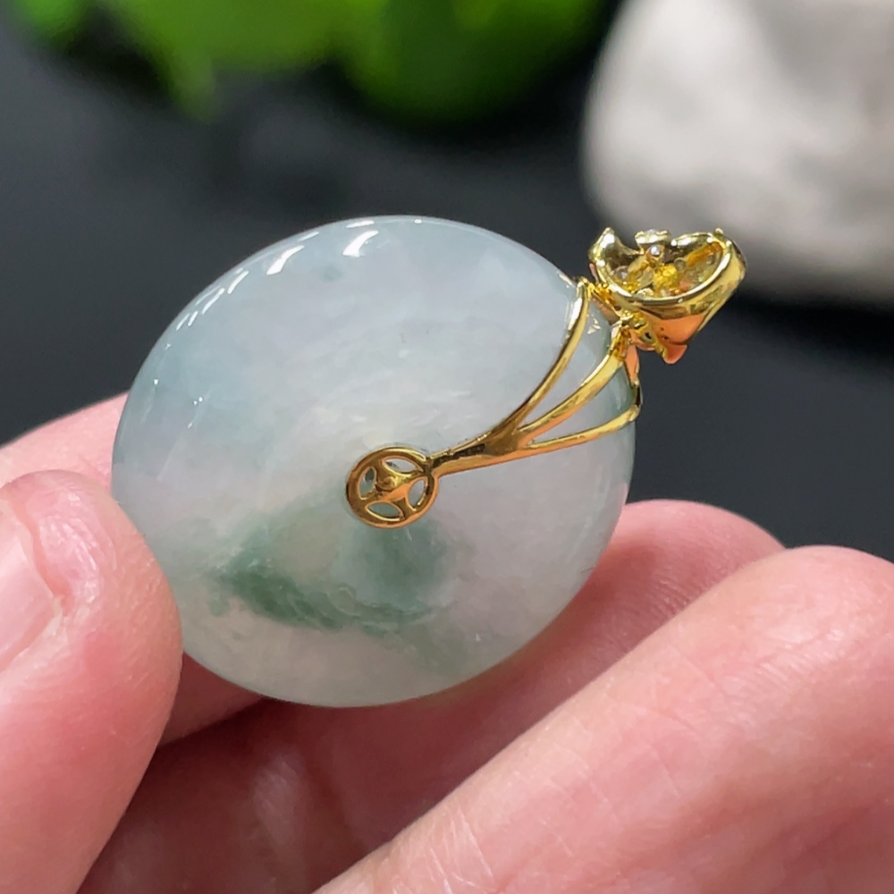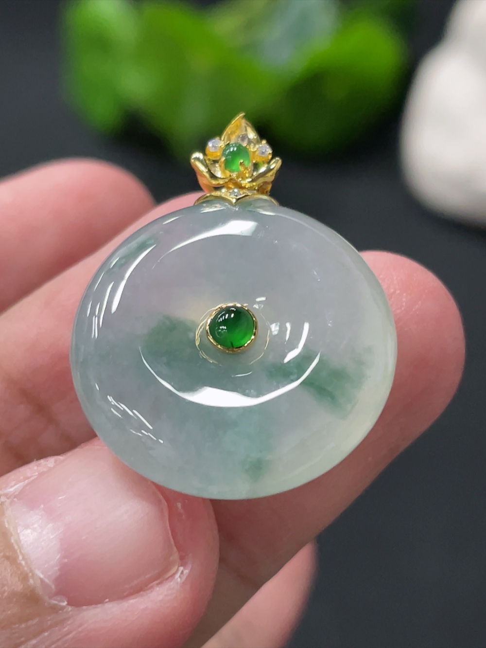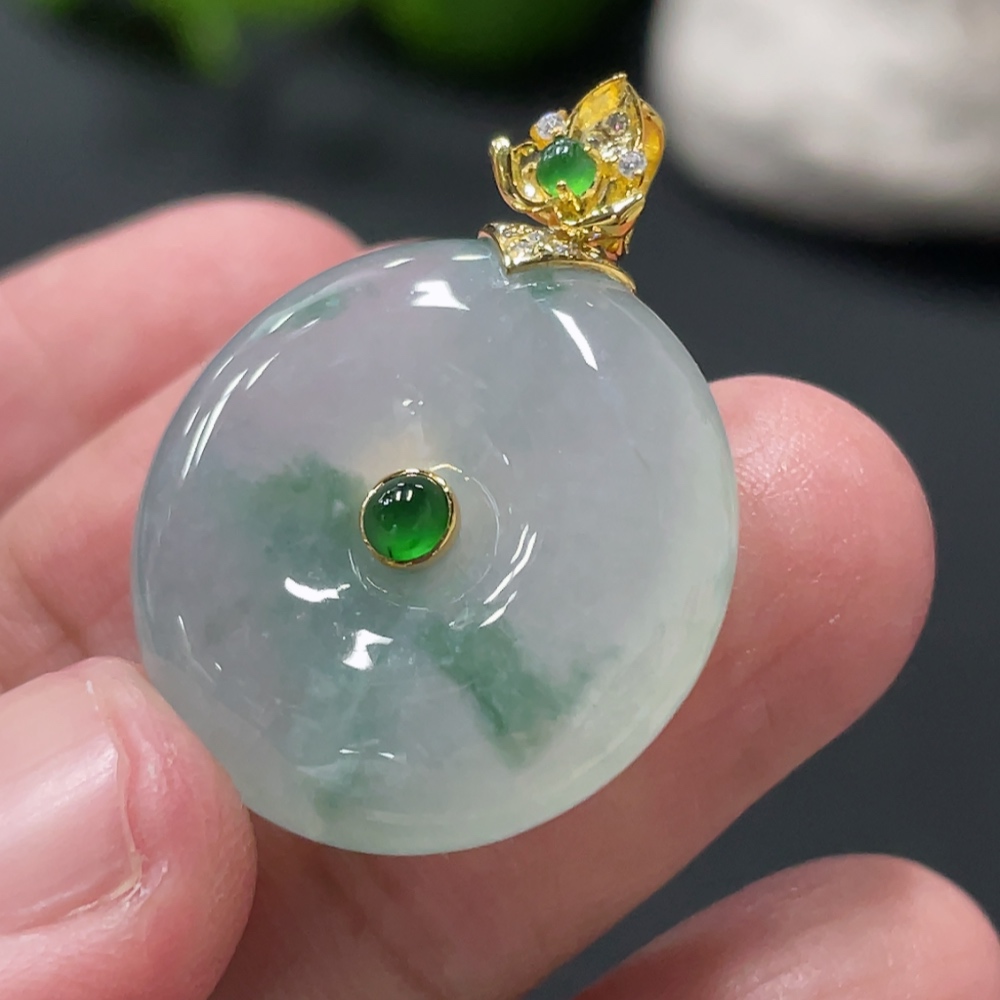 JadeitePíng'ān Kòu Pendant with 18K Gold Clasp, Total Weight Approximately 6.86g