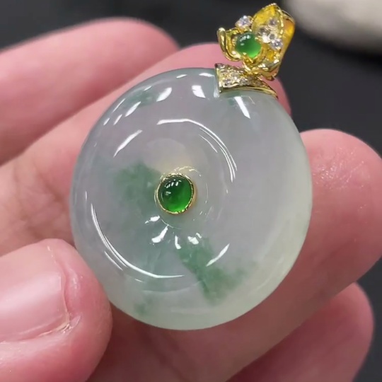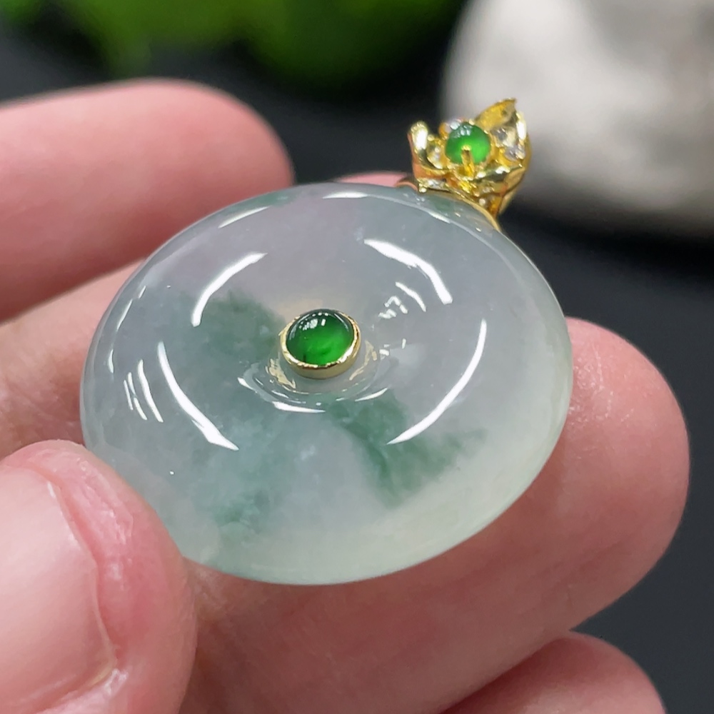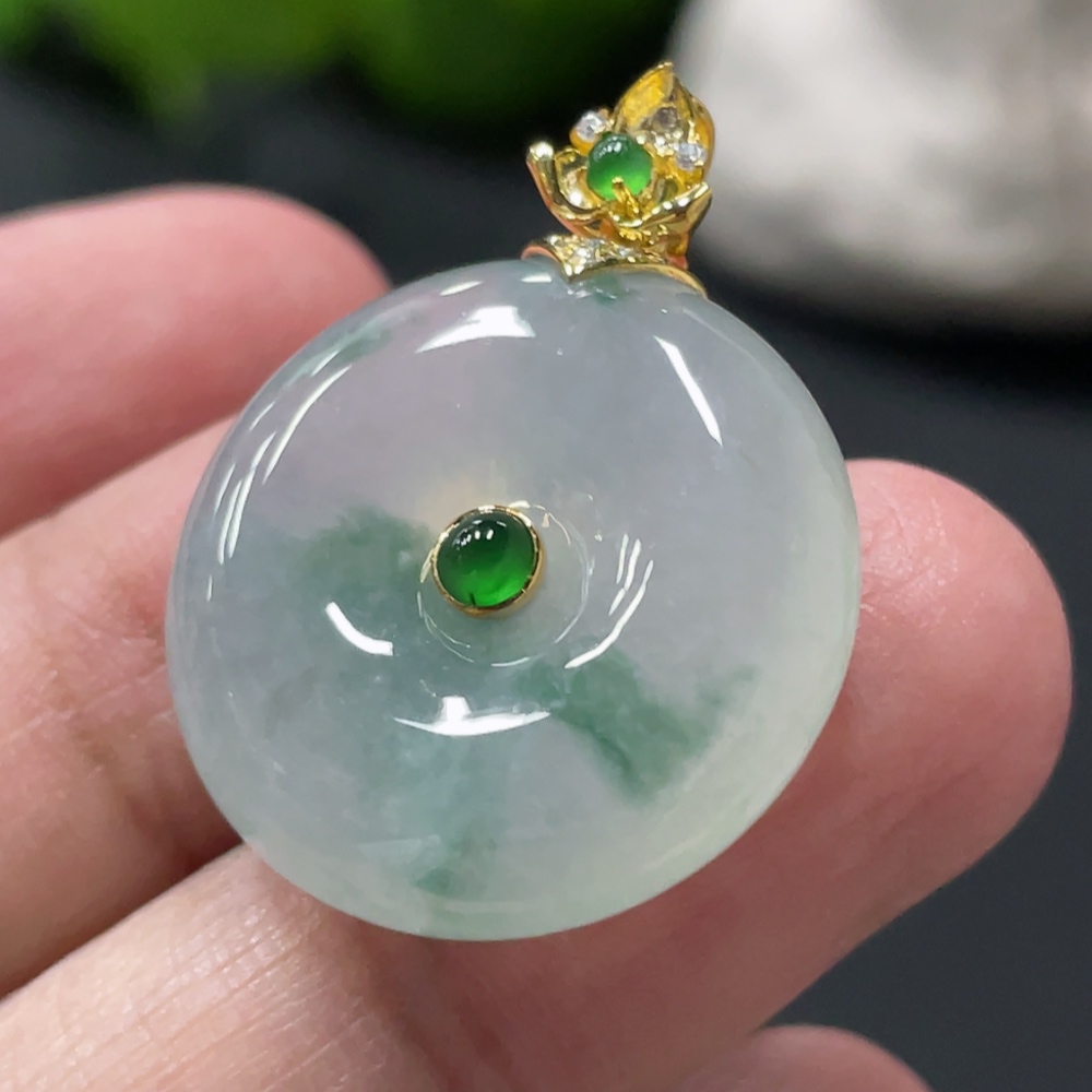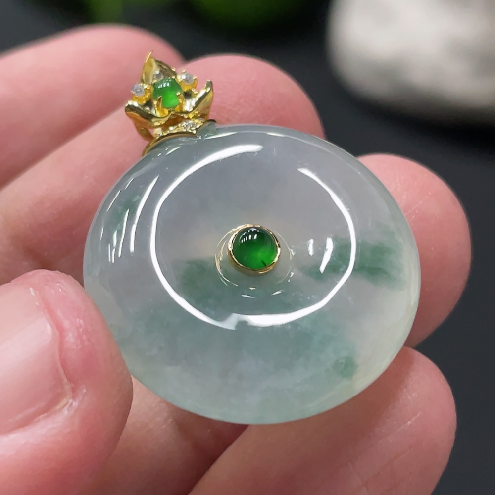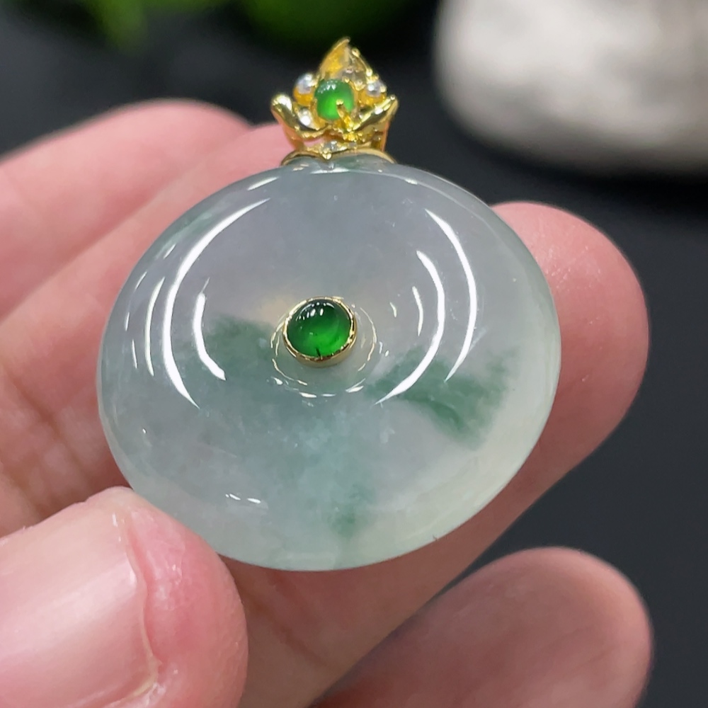 JadeitePíng'ān Kòu Pendant with 18K Gold Clasp, Total Weight Approximately 6.86g
