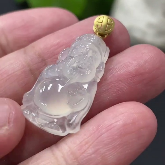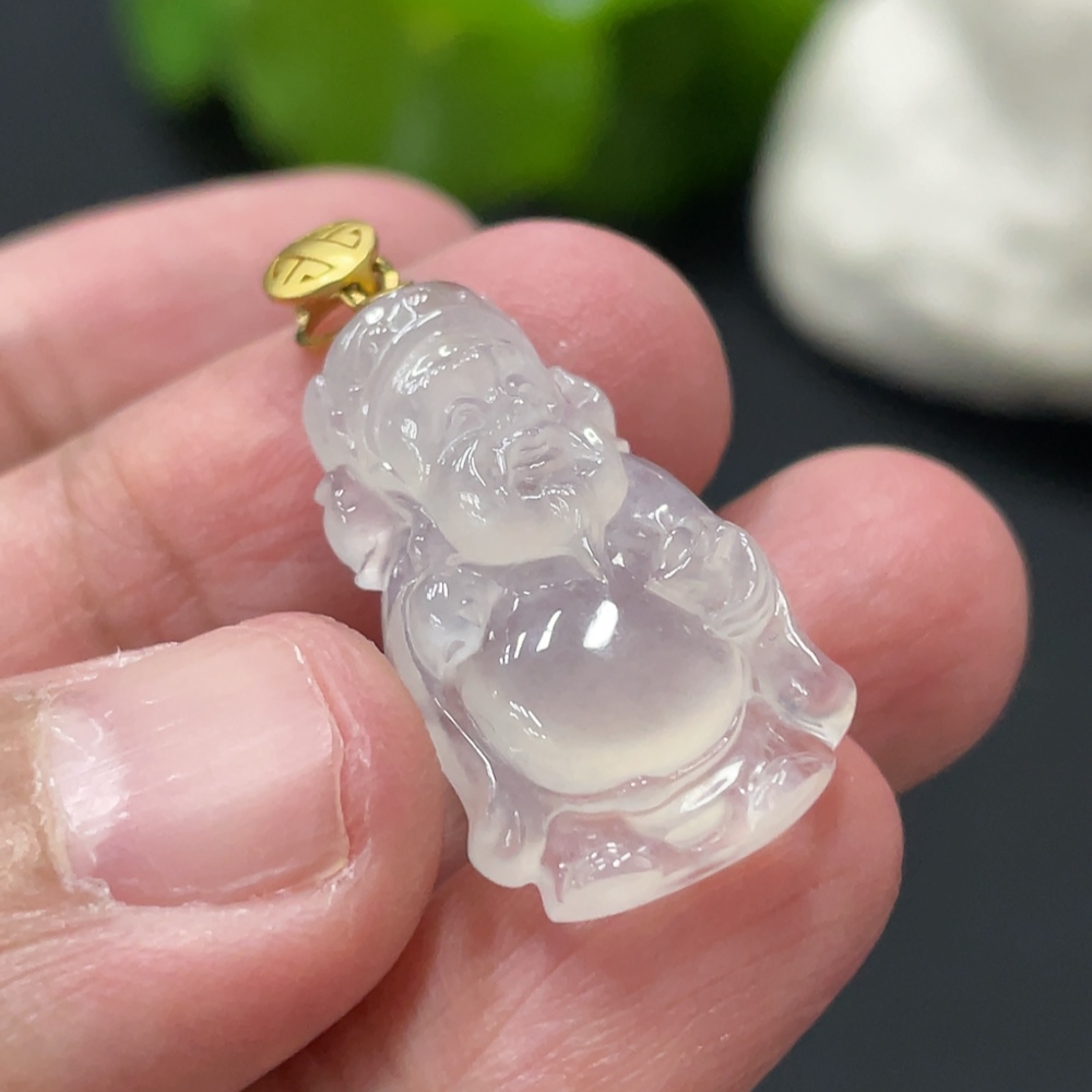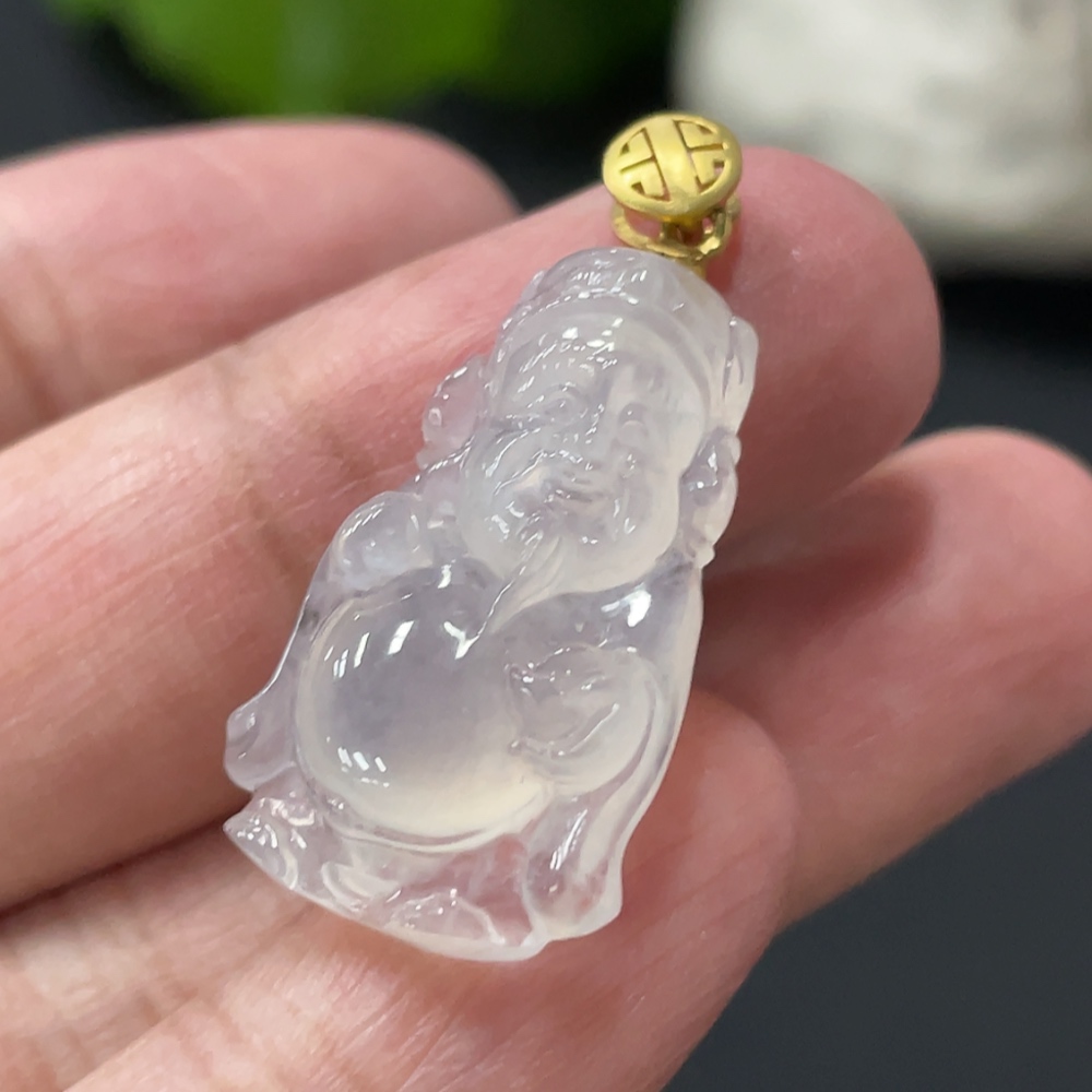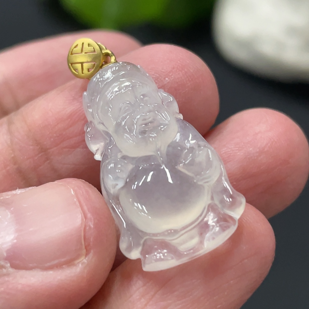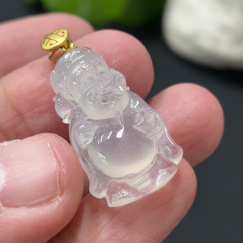 Jadeite God of Wealth Pendant with 18K Gold Clasp, Total Weight Approx. 3.55g