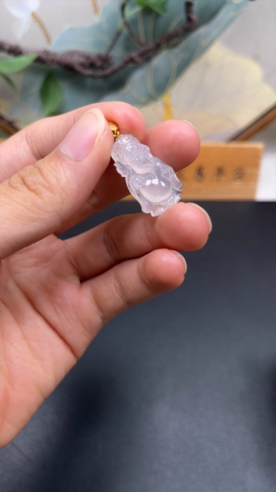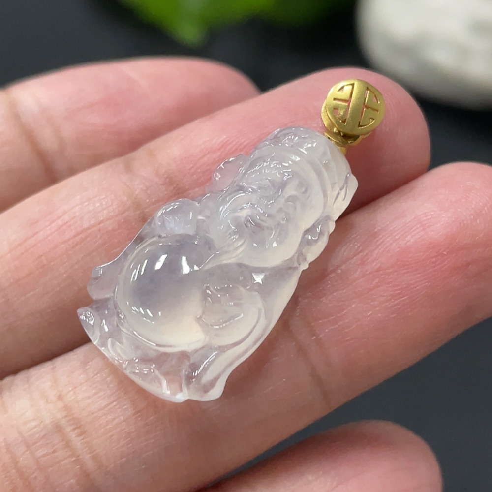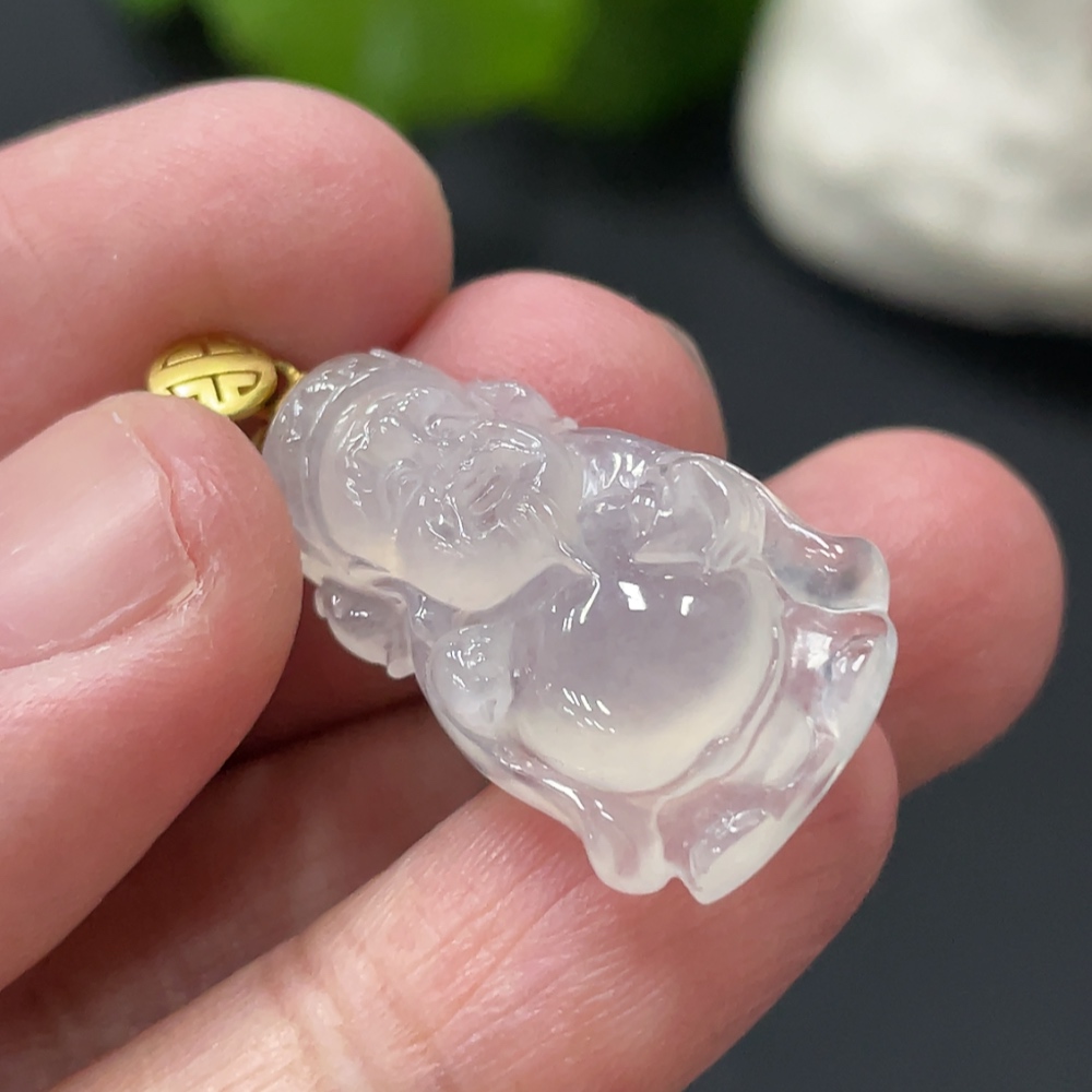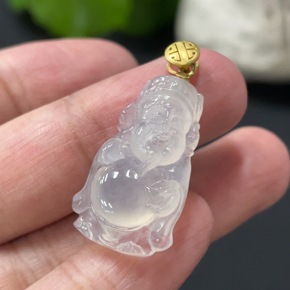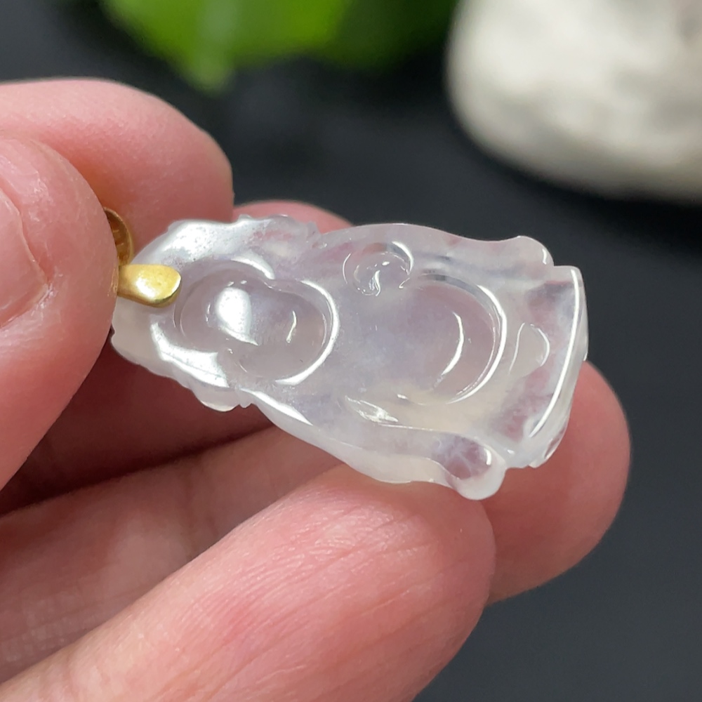 Jadeite God of Wealth Pendant with 18K Gold Clasp, Total Weight Approx. 3.55g