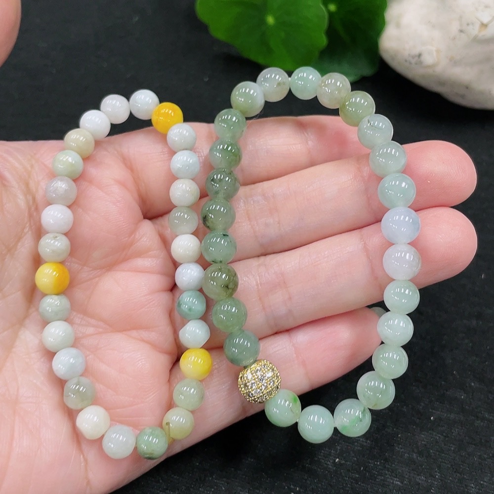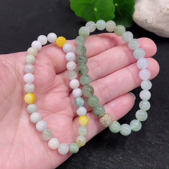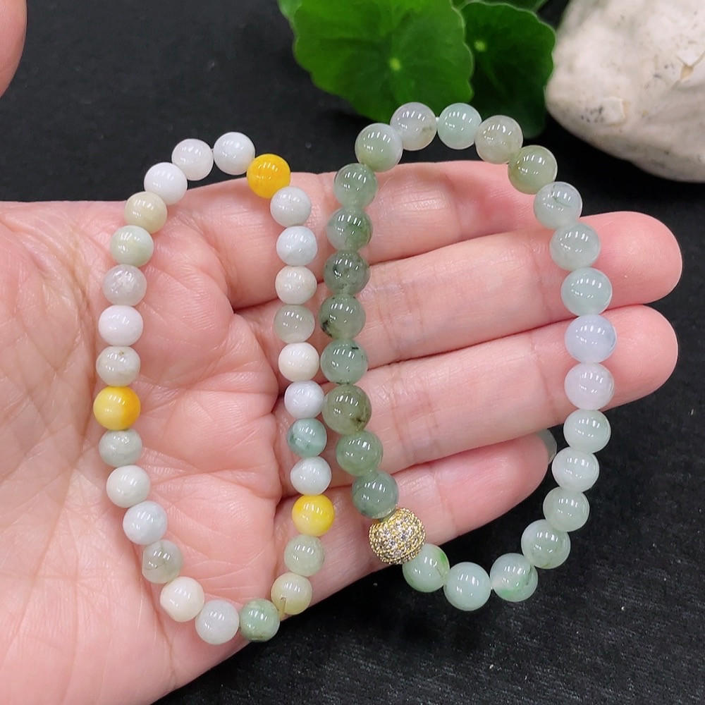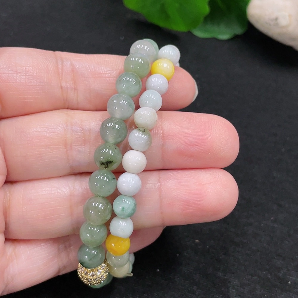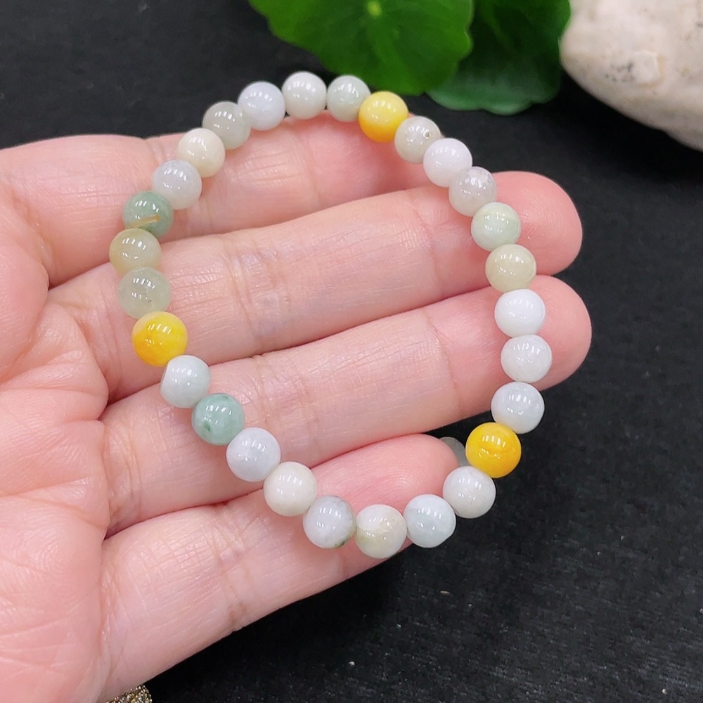 Jadeite Bracelet Sell as a Lot (Yellow Beads Non-A) (Non-Gold Inlaid)