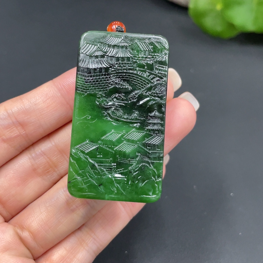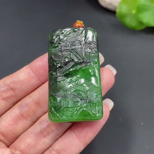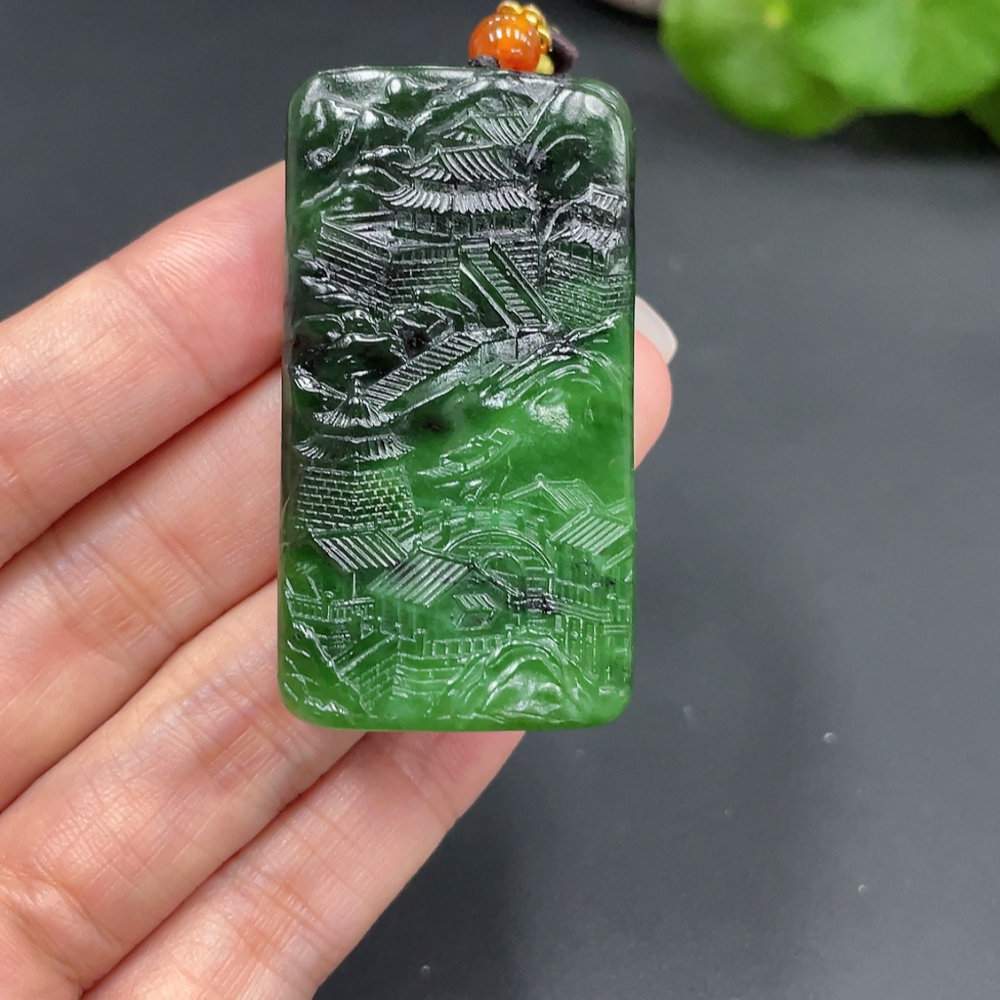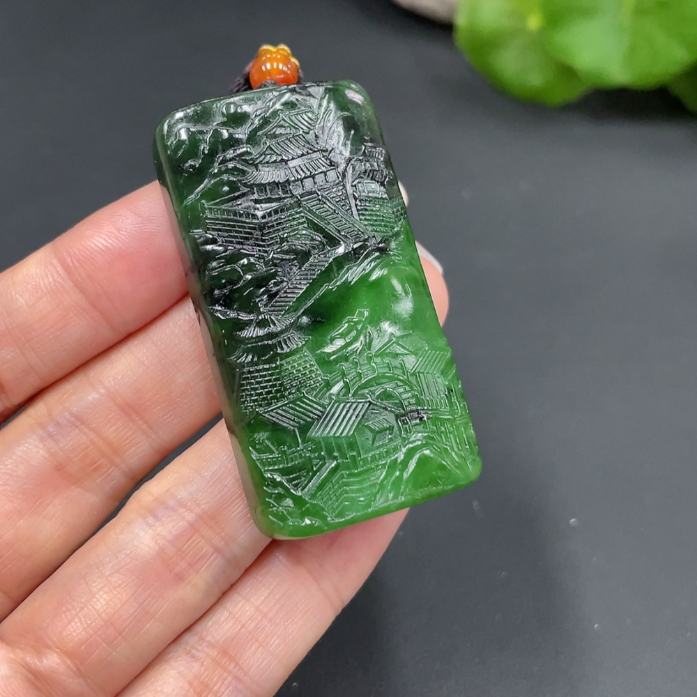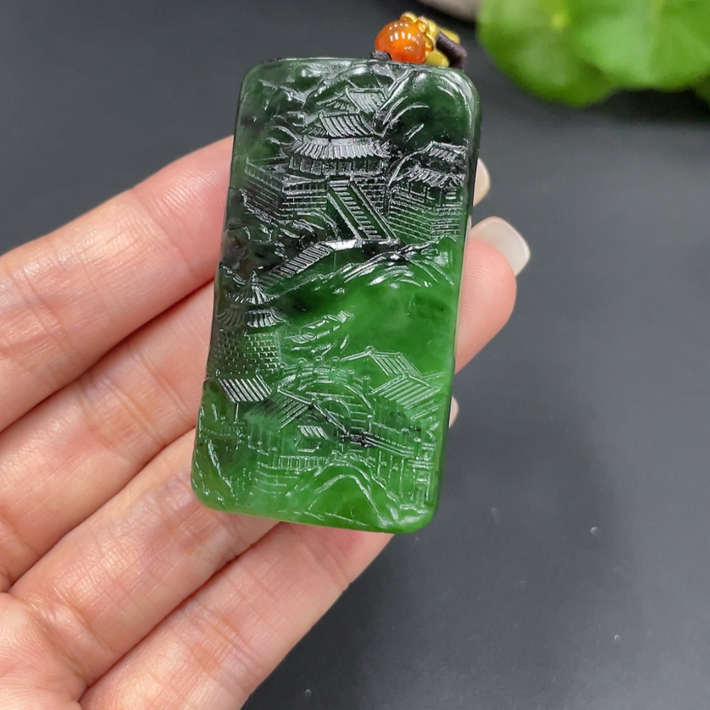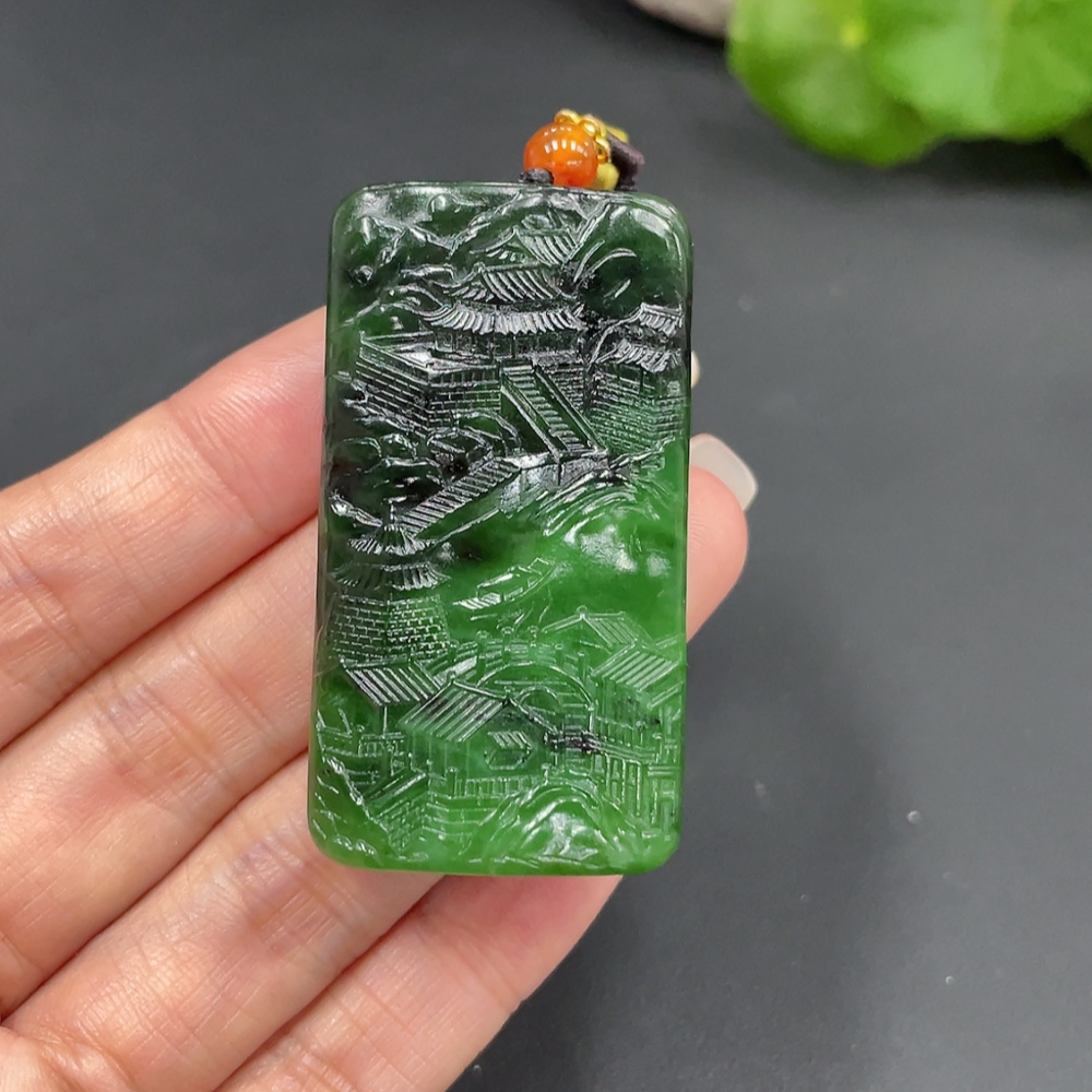 Hetian Jade Pendant - Landscape Plaque, Total Weight Approx. (Including Rope) 44.1g