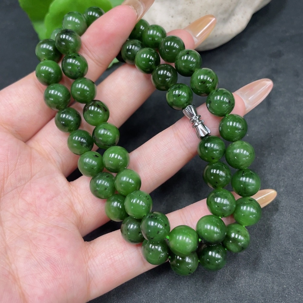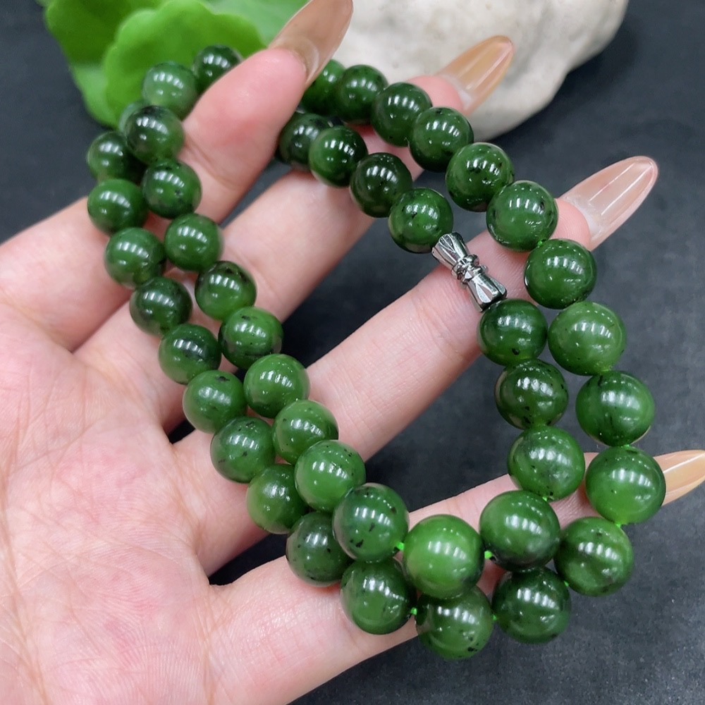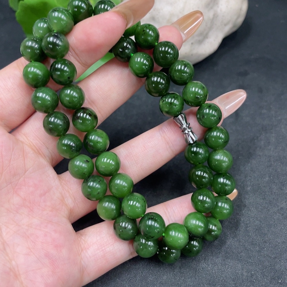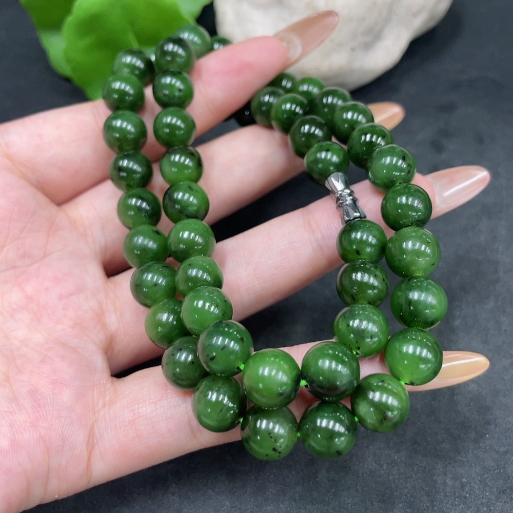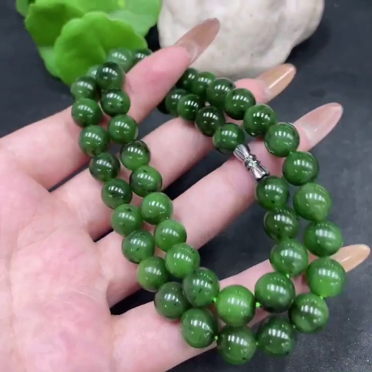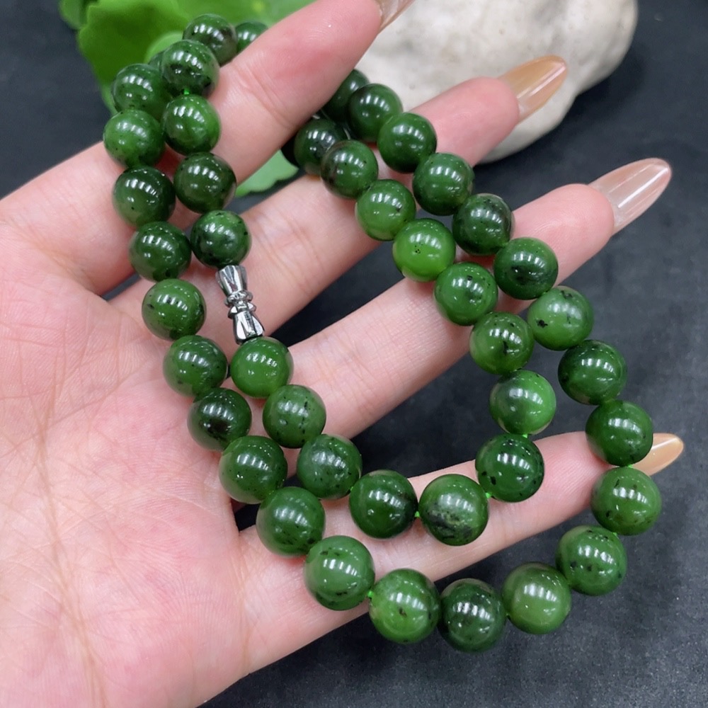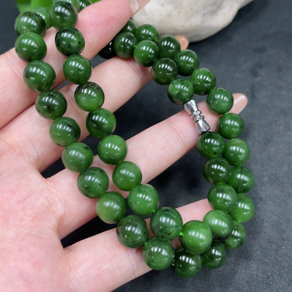 Hetian Jade Bead Necklace, Approx. 9mm, Non-Gold, Total Weight Approx. 61.3g