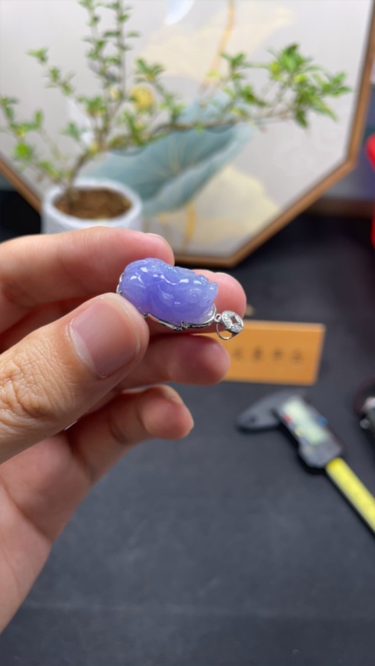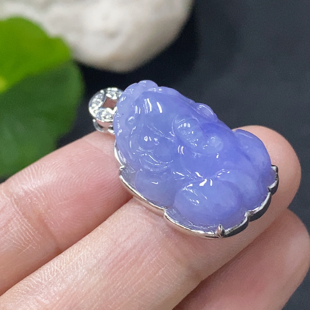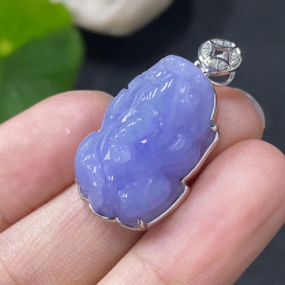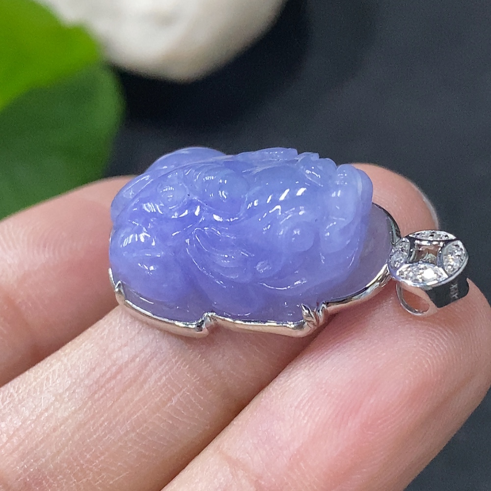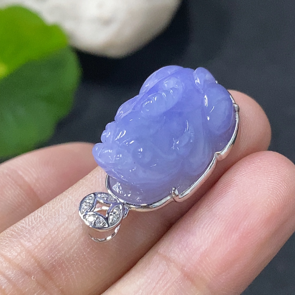 Jadeite Pixiu Pendant with 18K Gold and Diamond Accents, Total Weight Approximately 6.4g