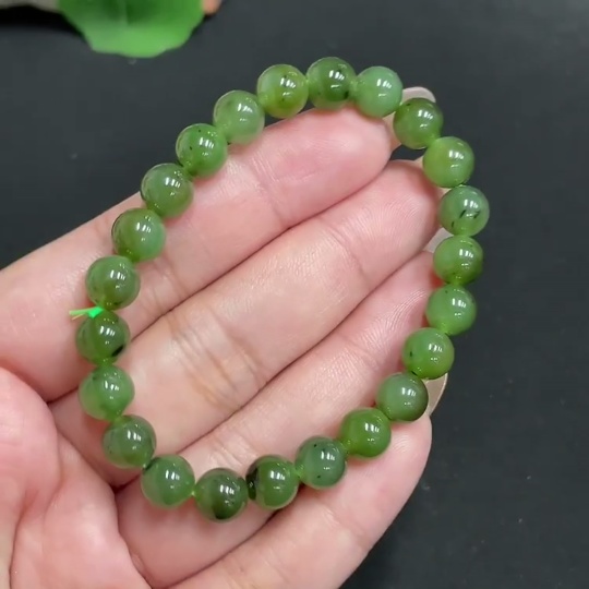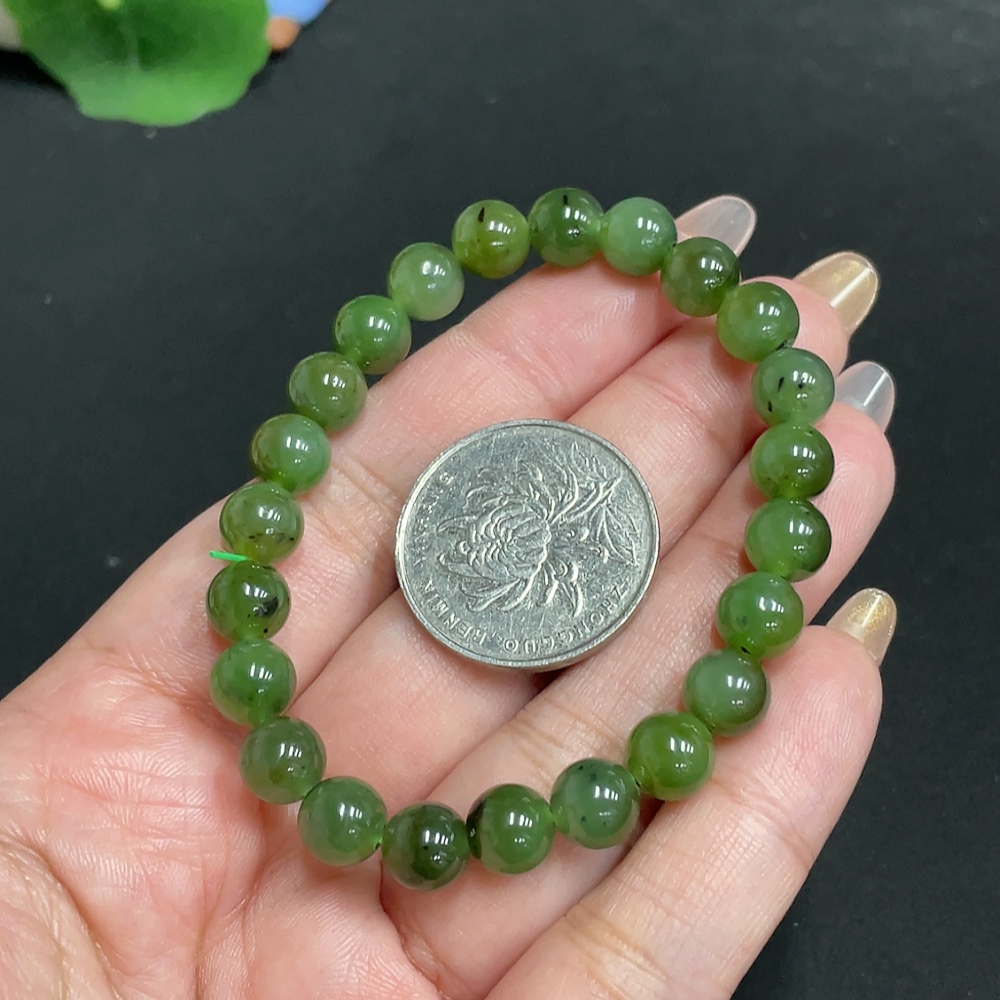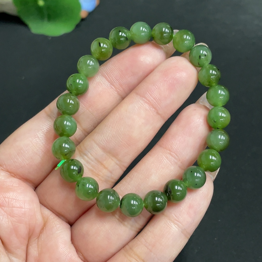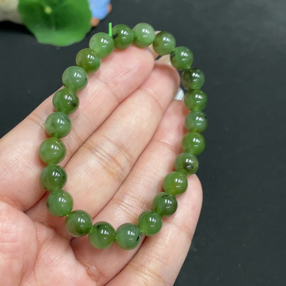 Hetian Jade Bracelet, Approx. 7.6 mm Beads, Total Weight Approx. 17.1g