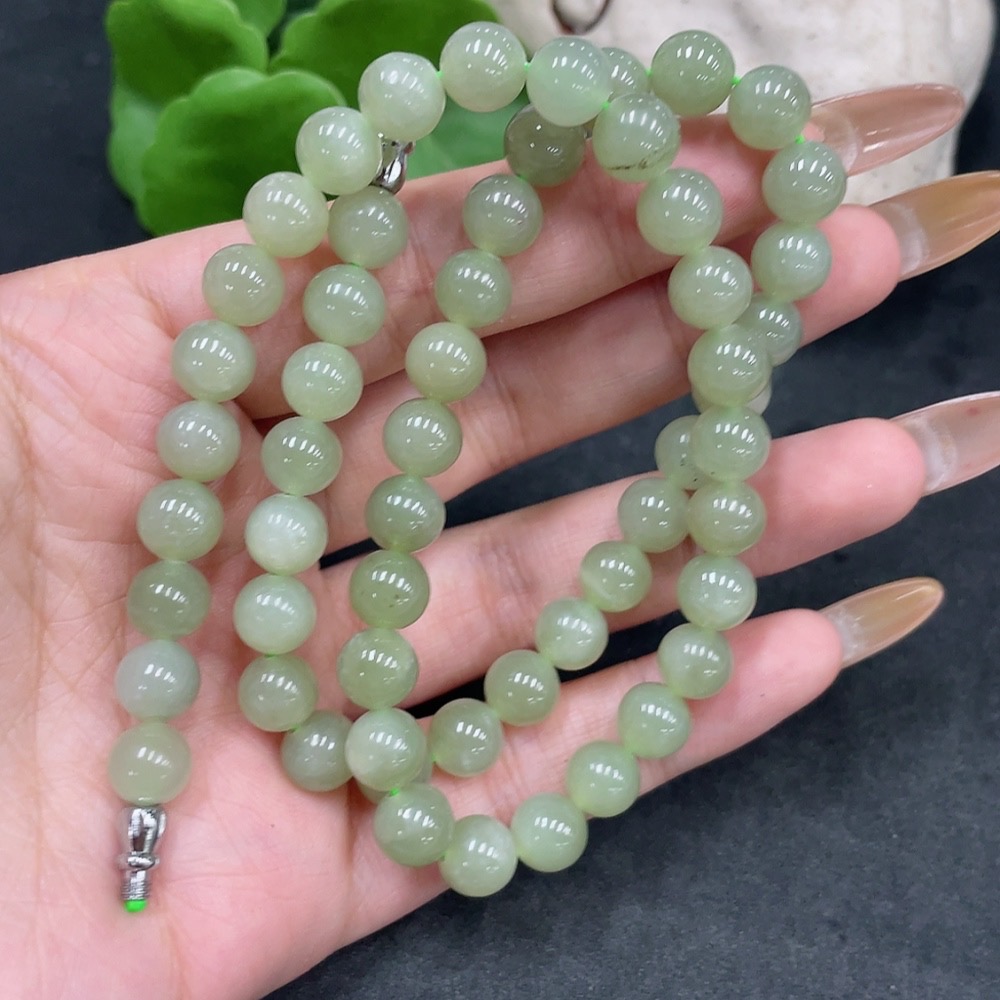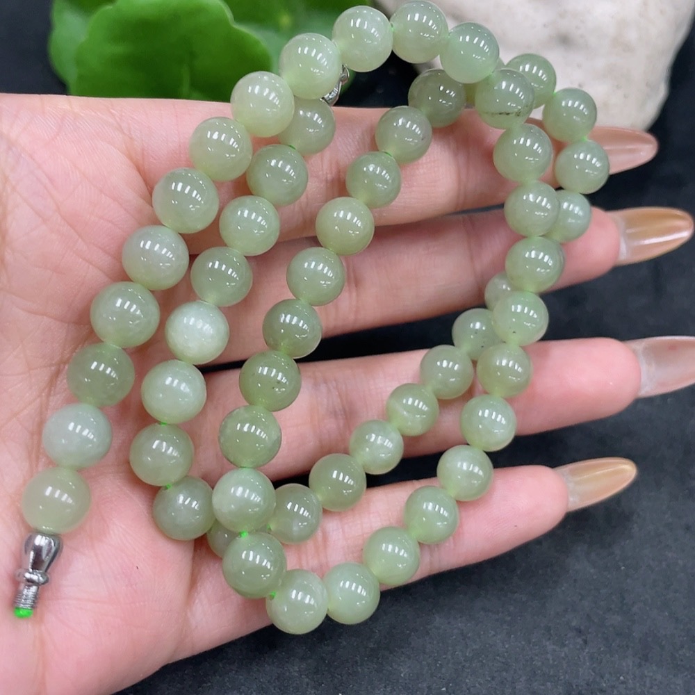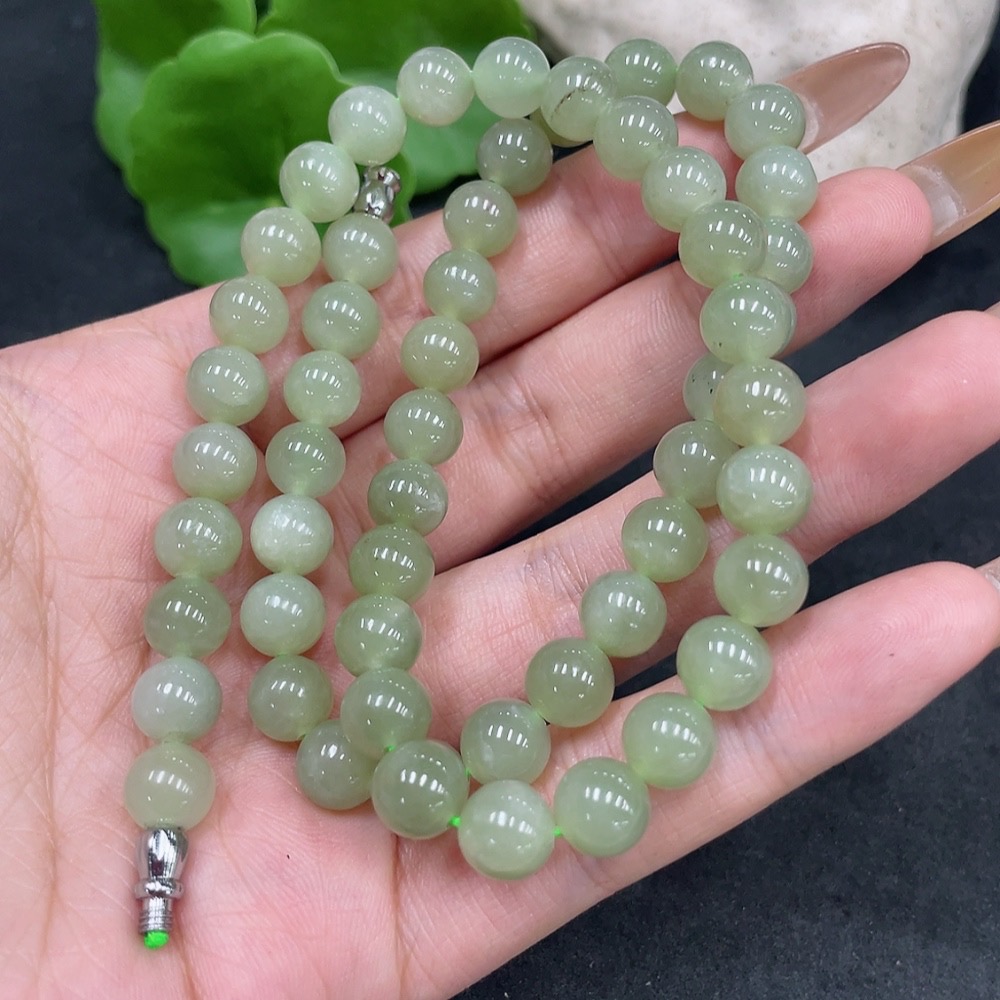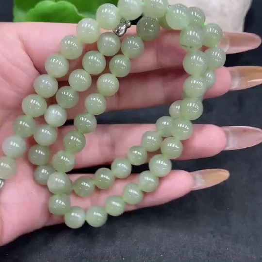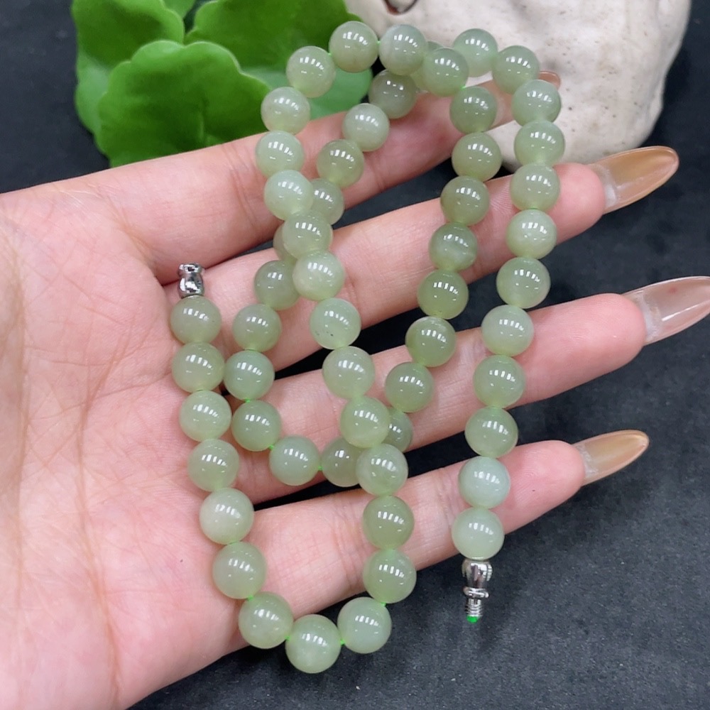 Hetian Jade Bead Necklace Approx.7.7mm Non-Gold Total Weight Approx.42.6g