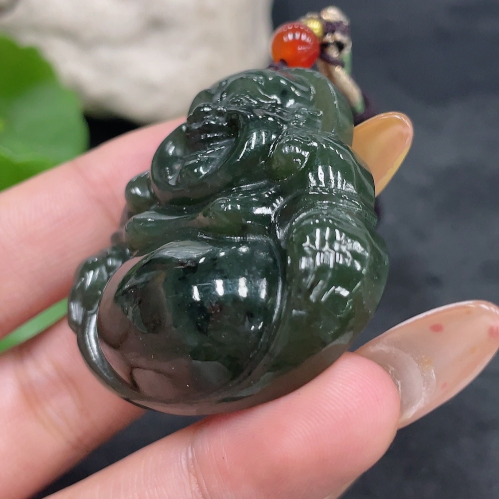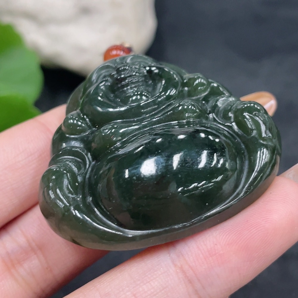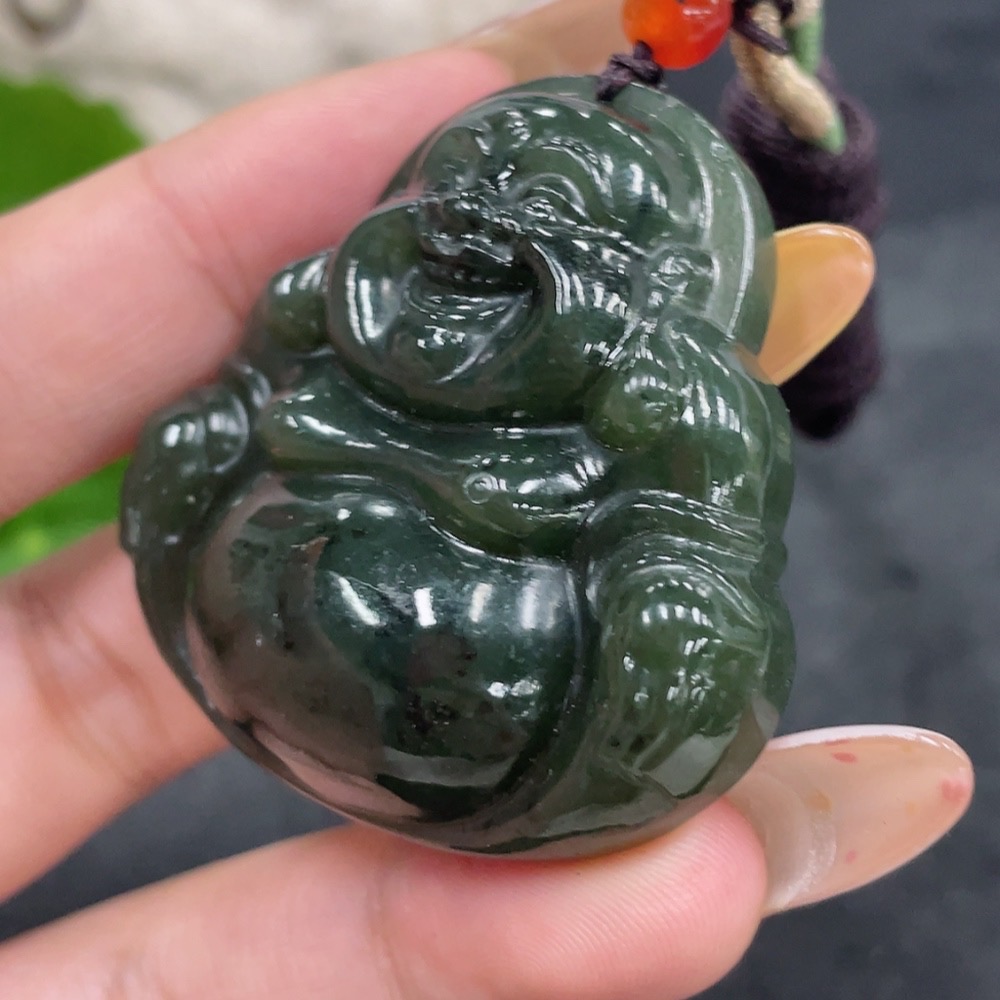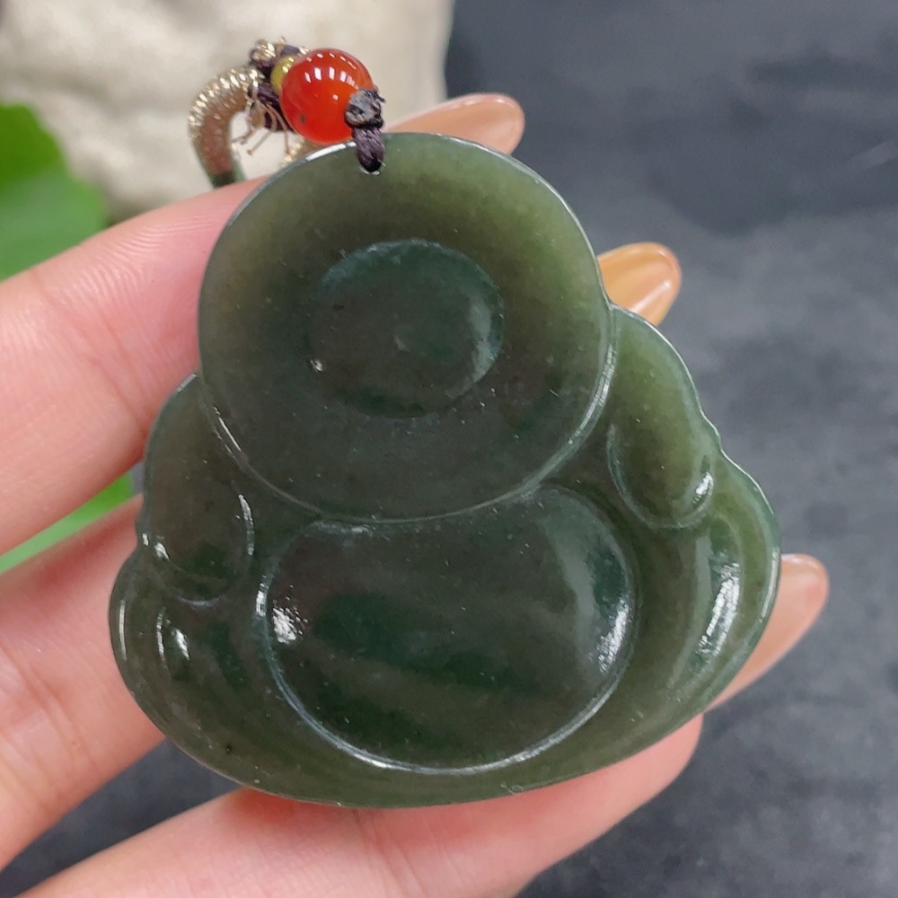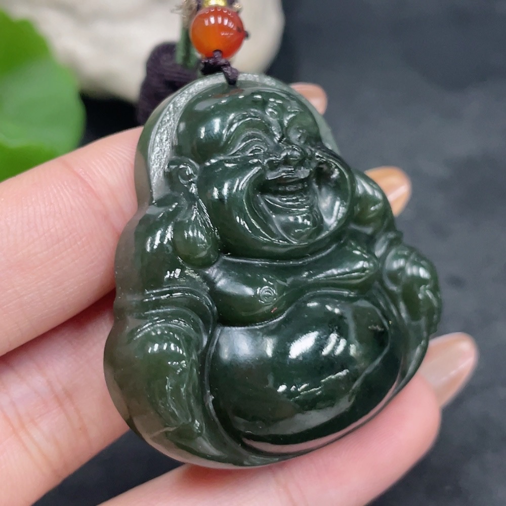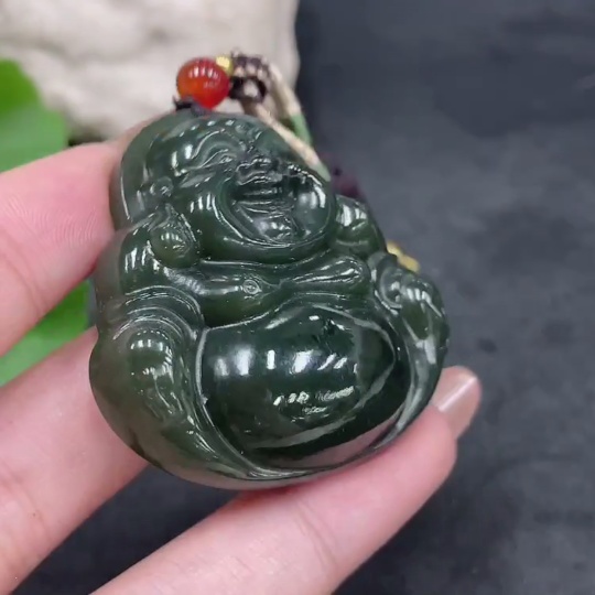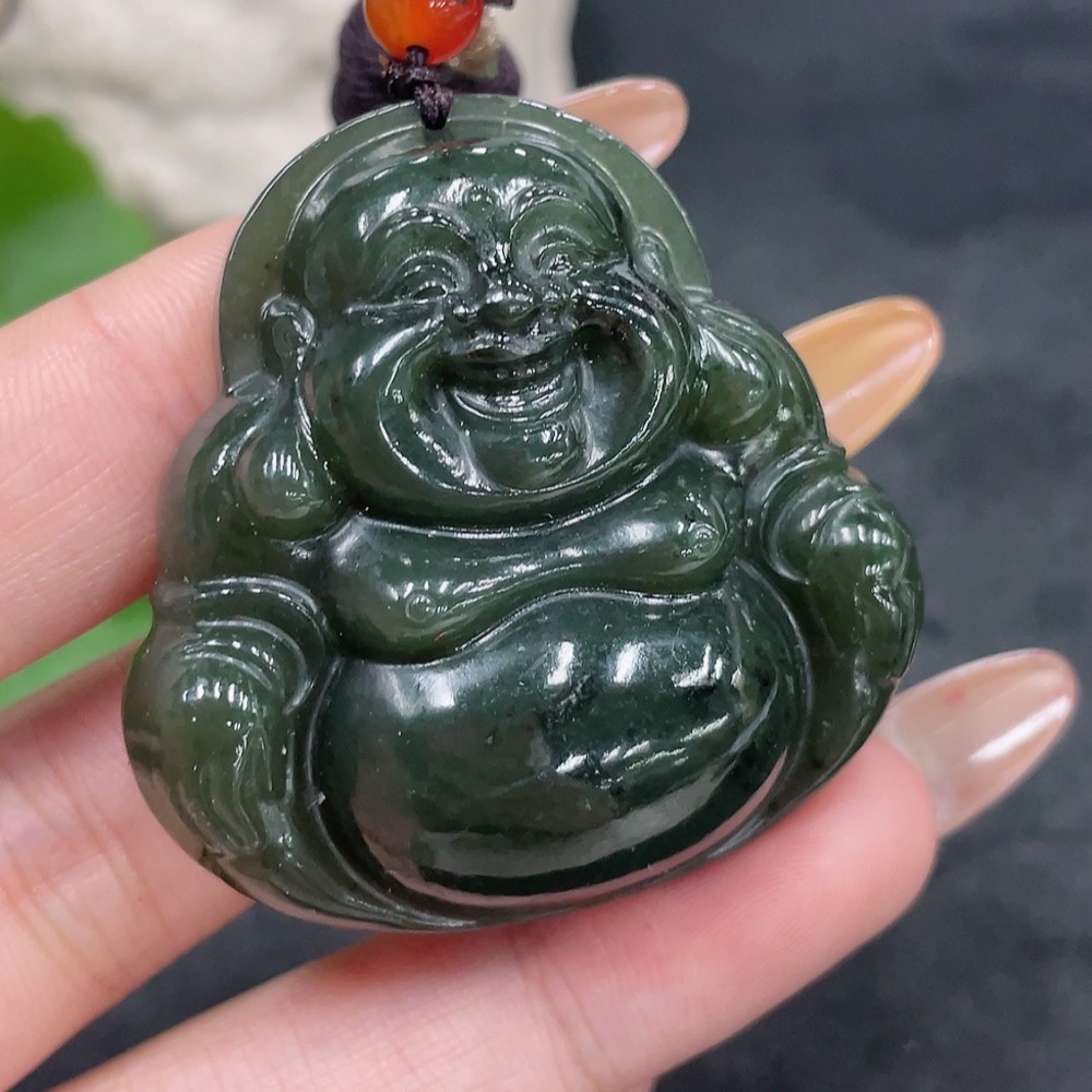 Hetian Jade Pendant - Buddha, Total Weight (Including String): 38.4g