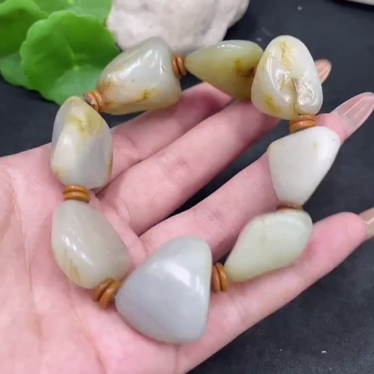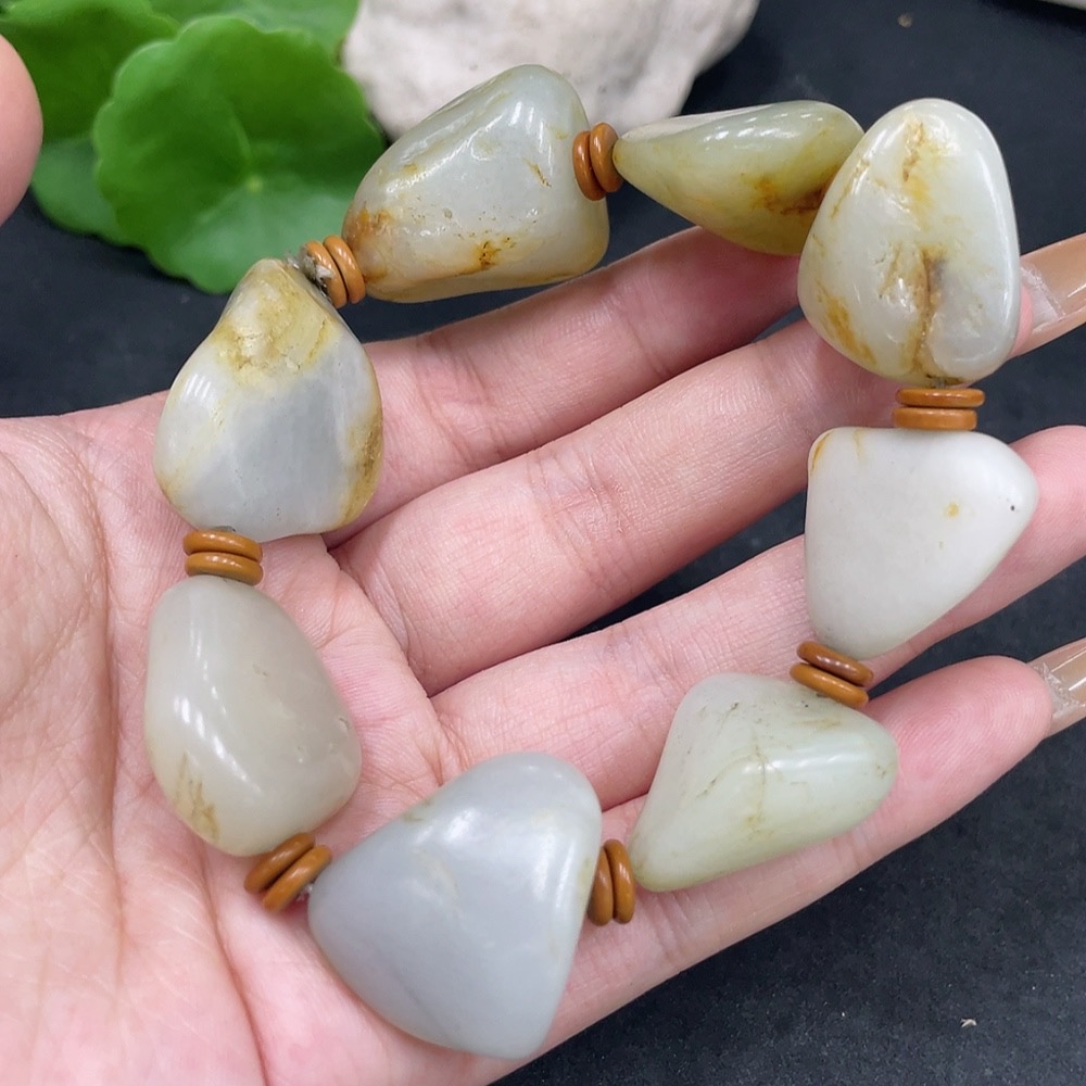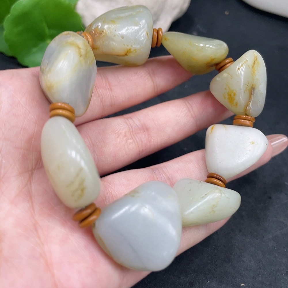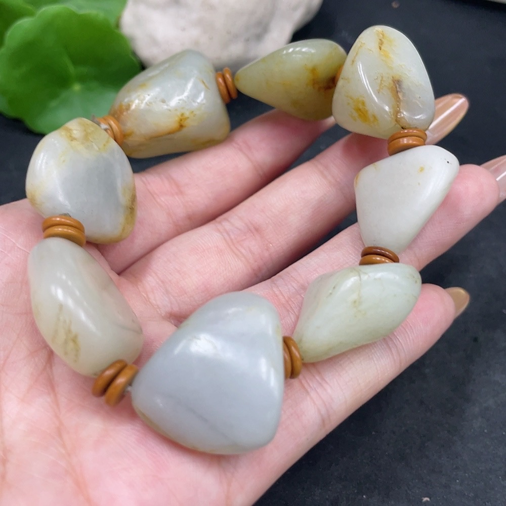 Hetian Jade Bracelet, Undetermined Skin Color Origin, Contains Other Mineral Components, Matching Beads Not Hetian Jade, Total Weight Approximately 93g