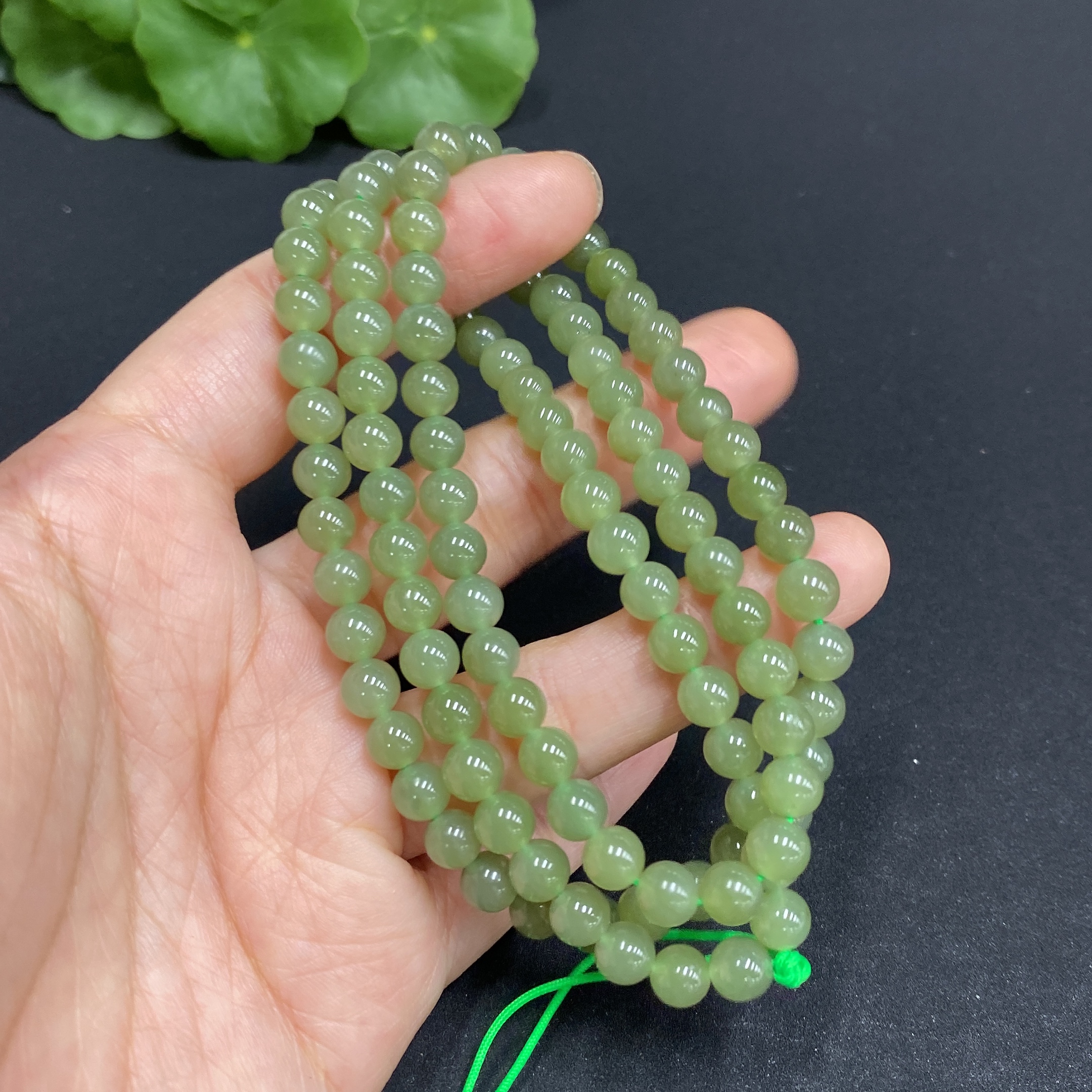 Hetian Jade Bead Necklace, Approx. 5.7mm, Total Weight Approx. 33.1g