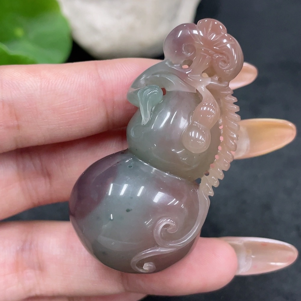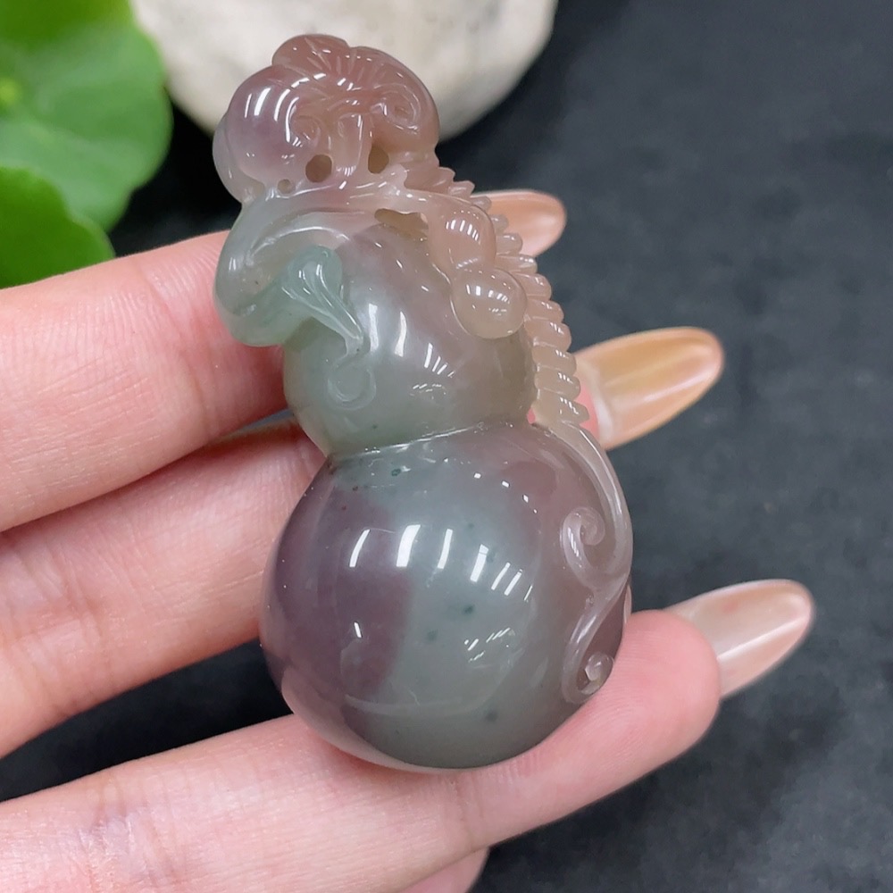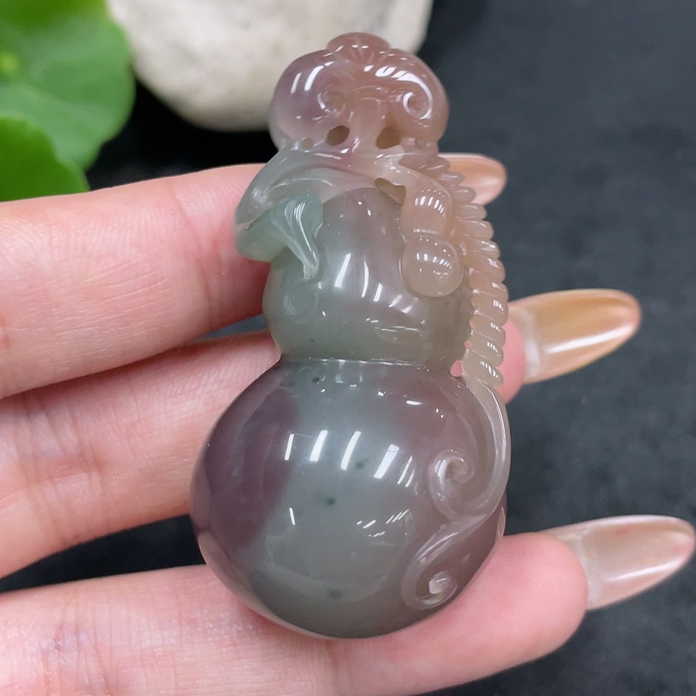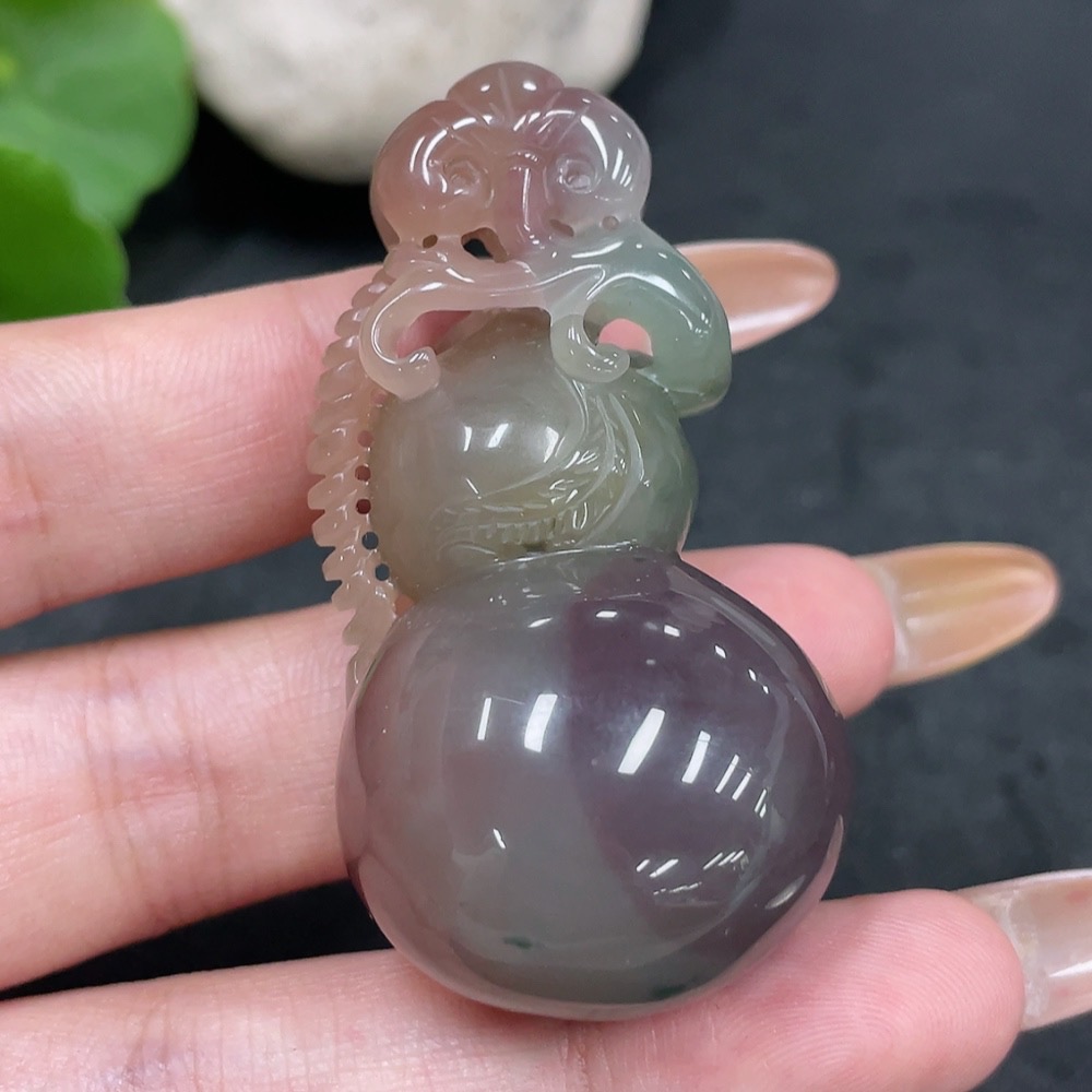Purple-Green Agate Pendant, Gourd, Total Weight Approx. 33.6g