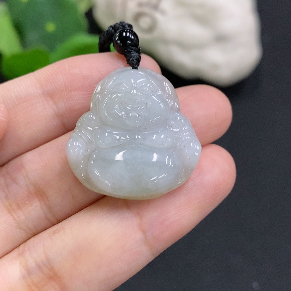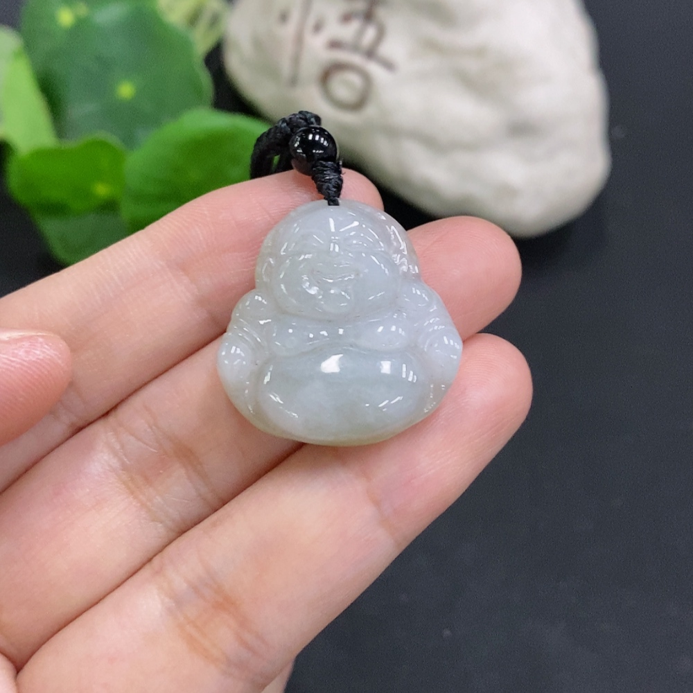 Jadeite Buddha Pendant Total Weight Including Rope Approx. 9.4g