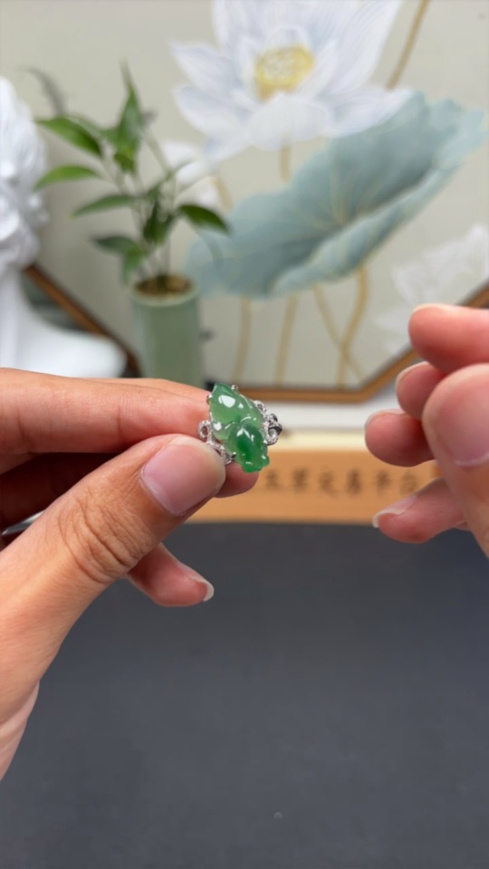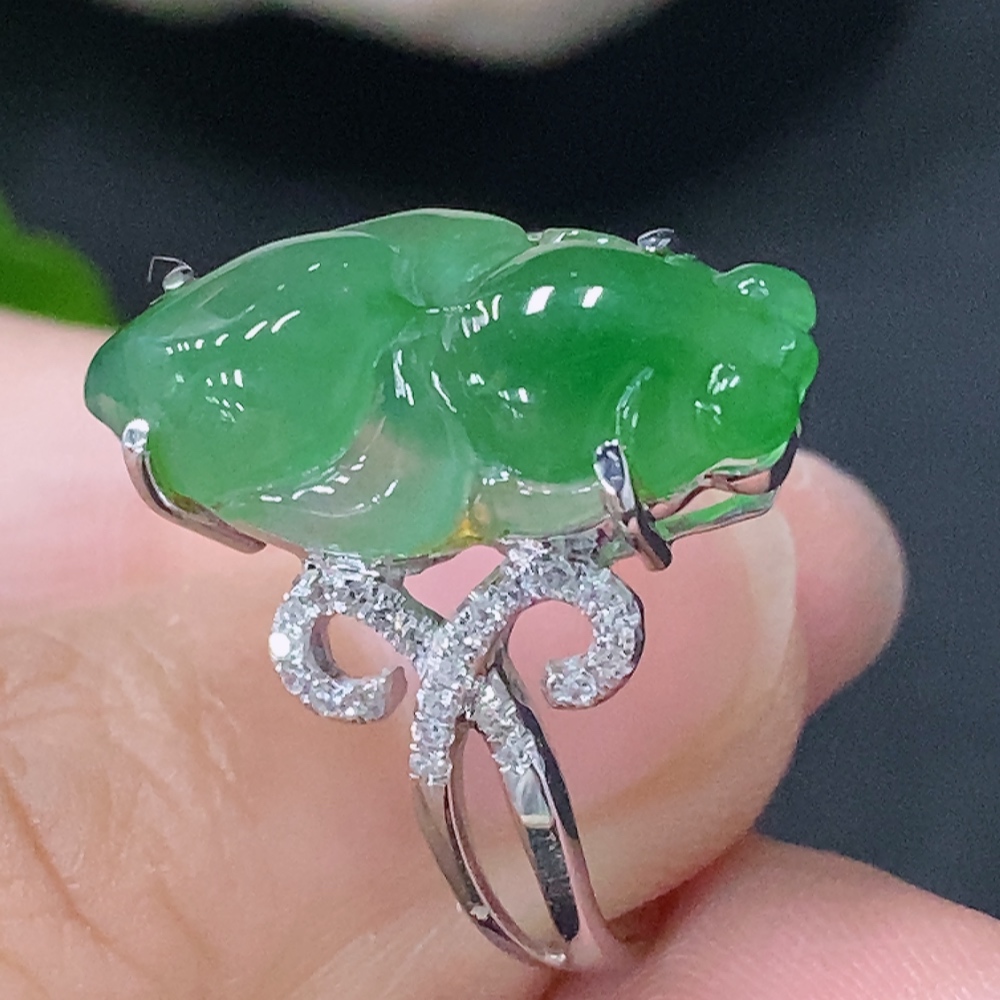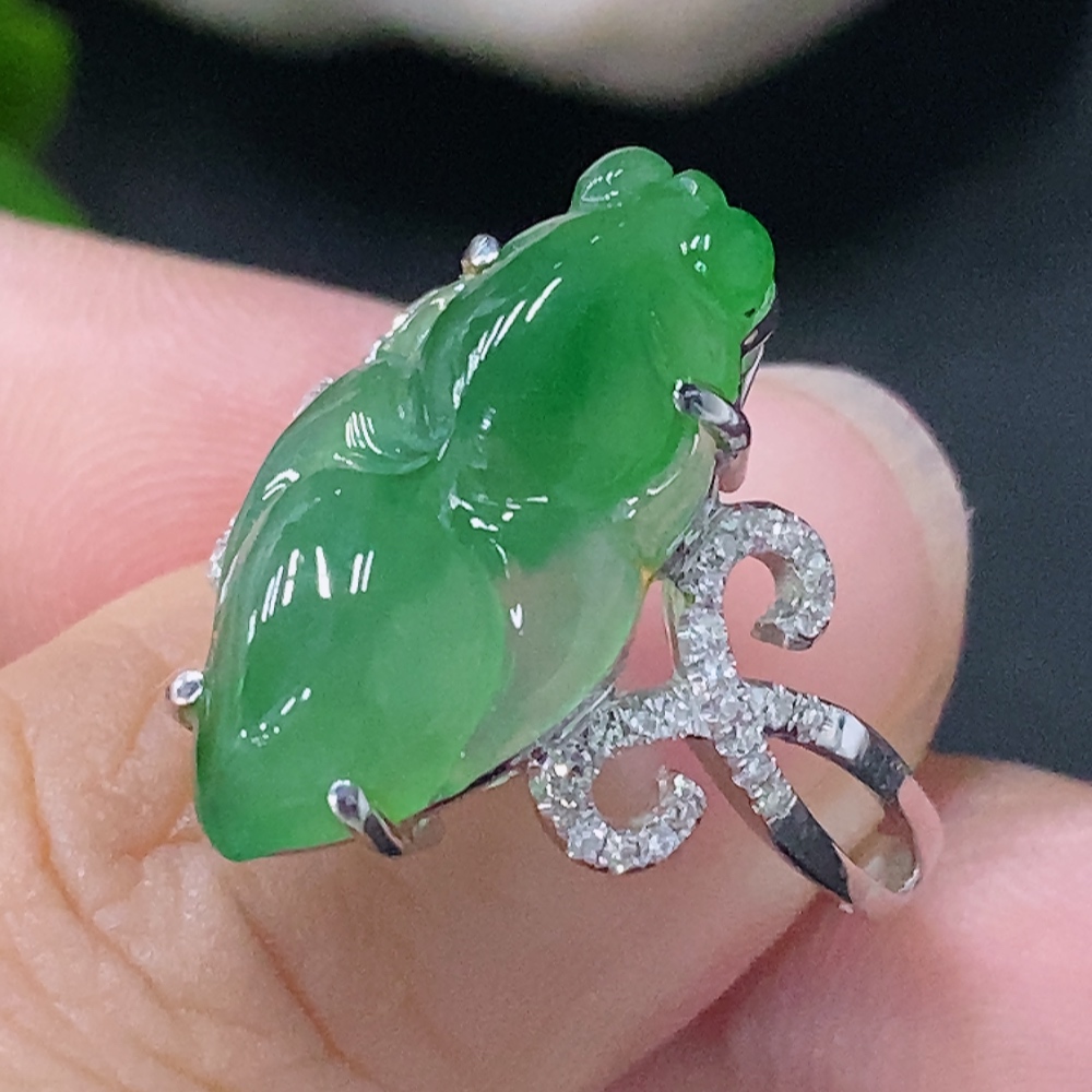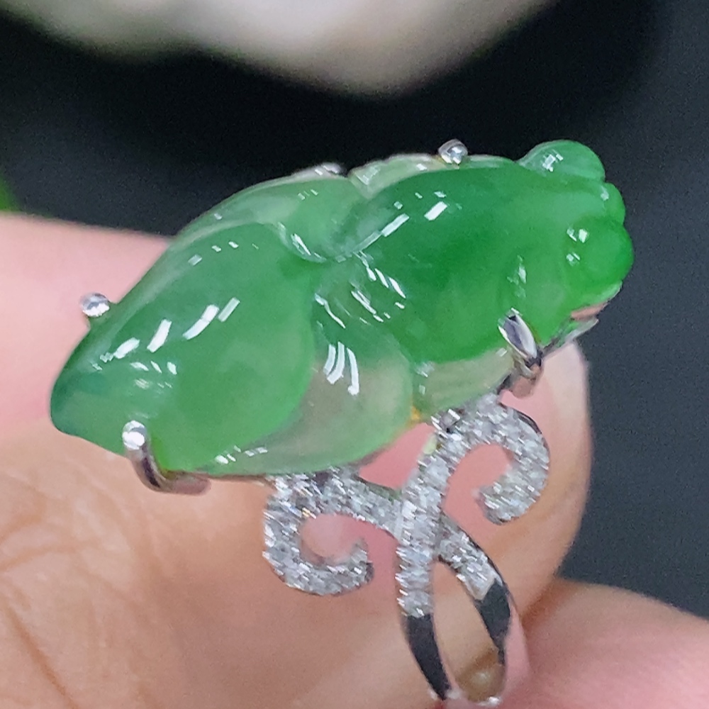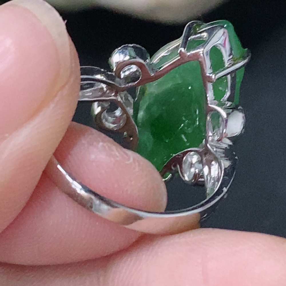 Jadeite inlaid ring 18k with diamond size 15 total weight about 4.64g