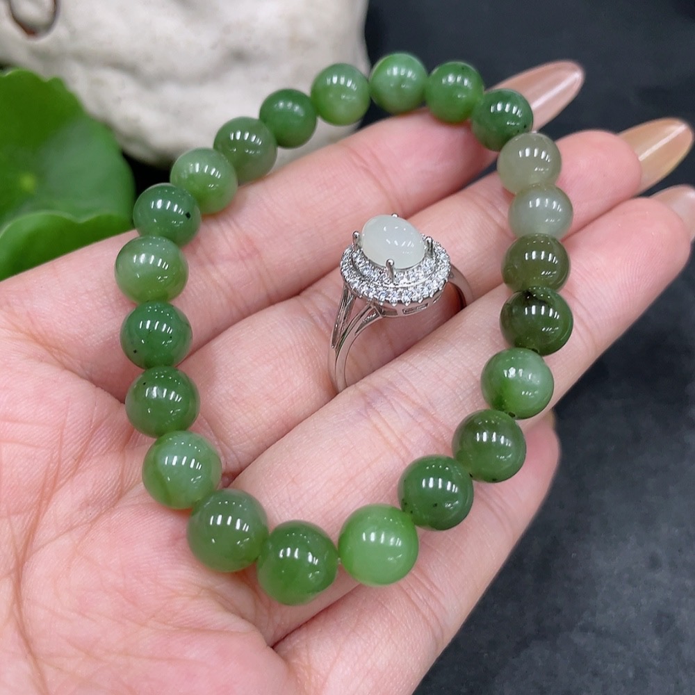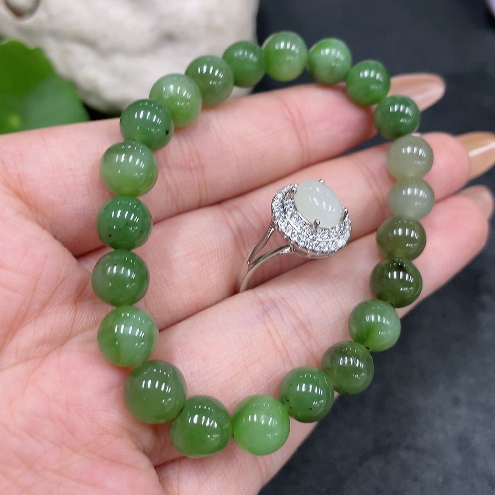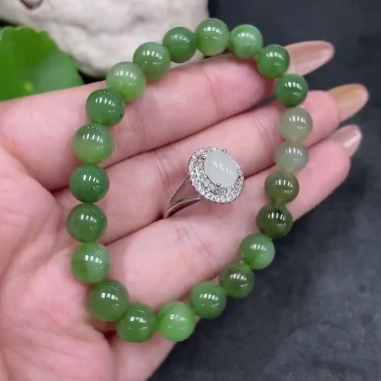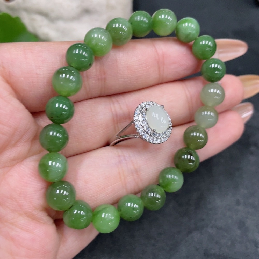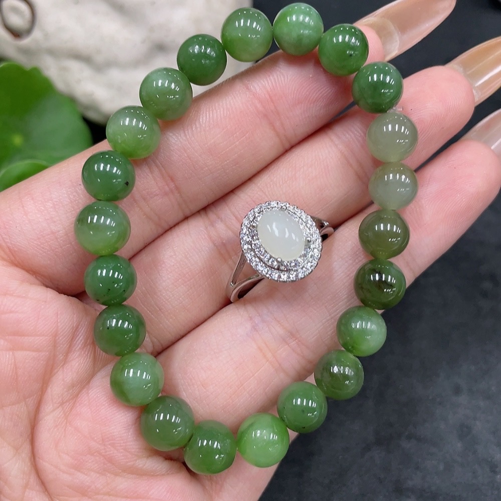 Hetian Jade Bracelet + Adjustable Inlaid Ring Non-Gold Total Weight Approx. 18.6g