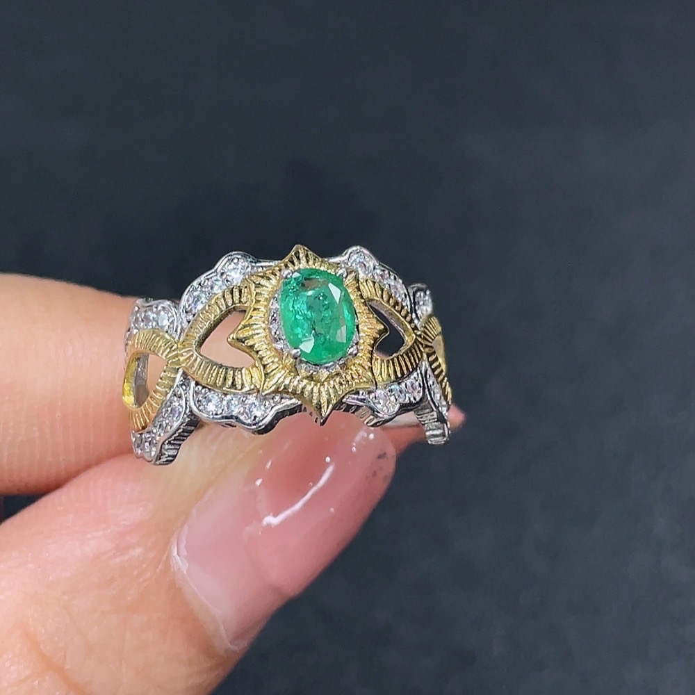 Emerald Ring Clarity Enhanced Non-Gold Total Weight Approx. 3.34g