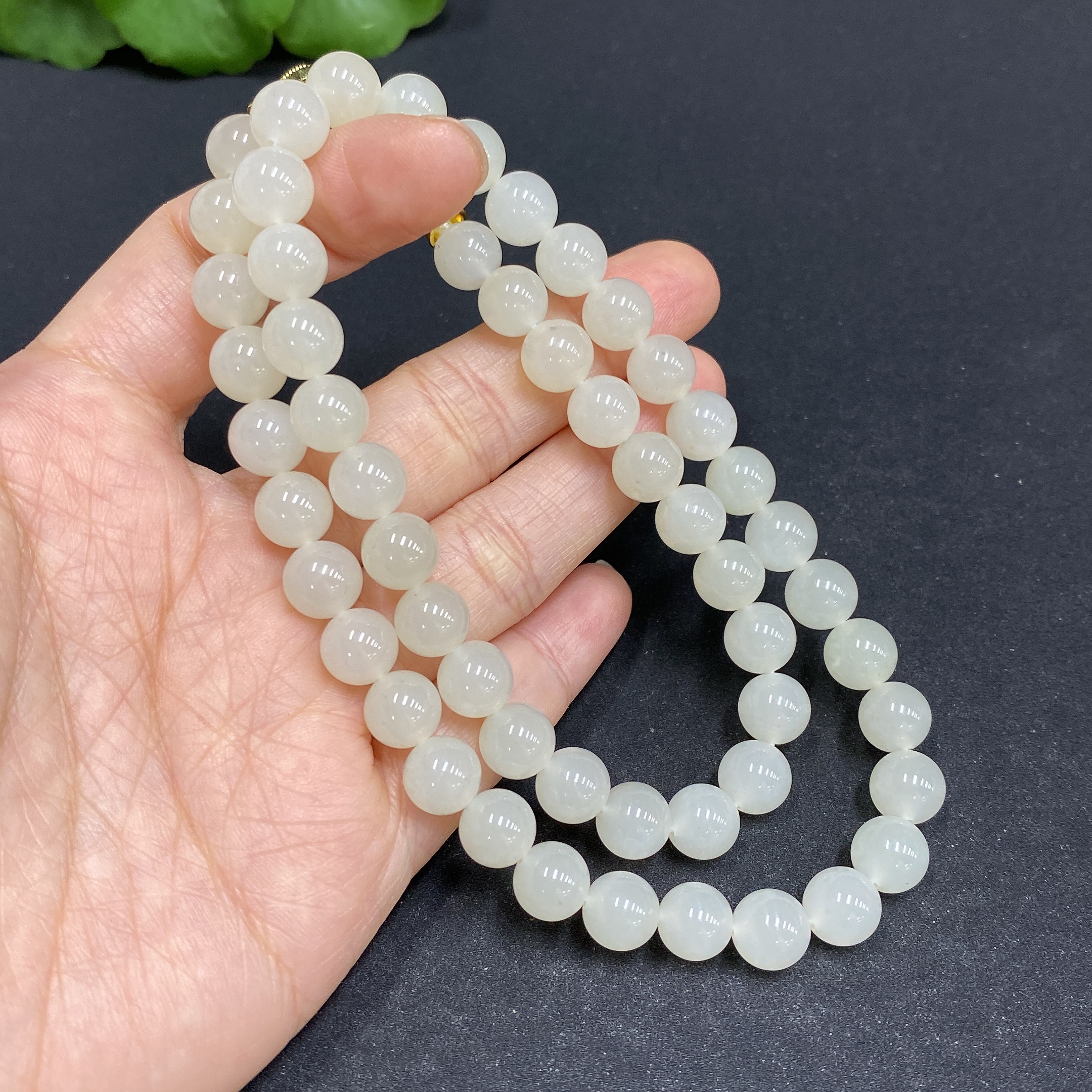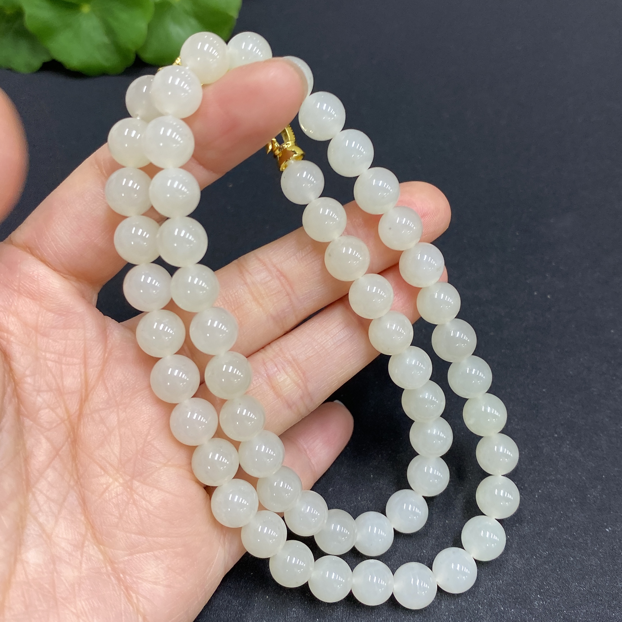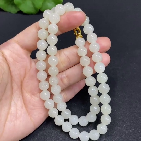 Hetian Jade Bead Necklace, Approx. 7.8mm, Non-Gold-Inlaid, Total Weight Approx. 45.9g