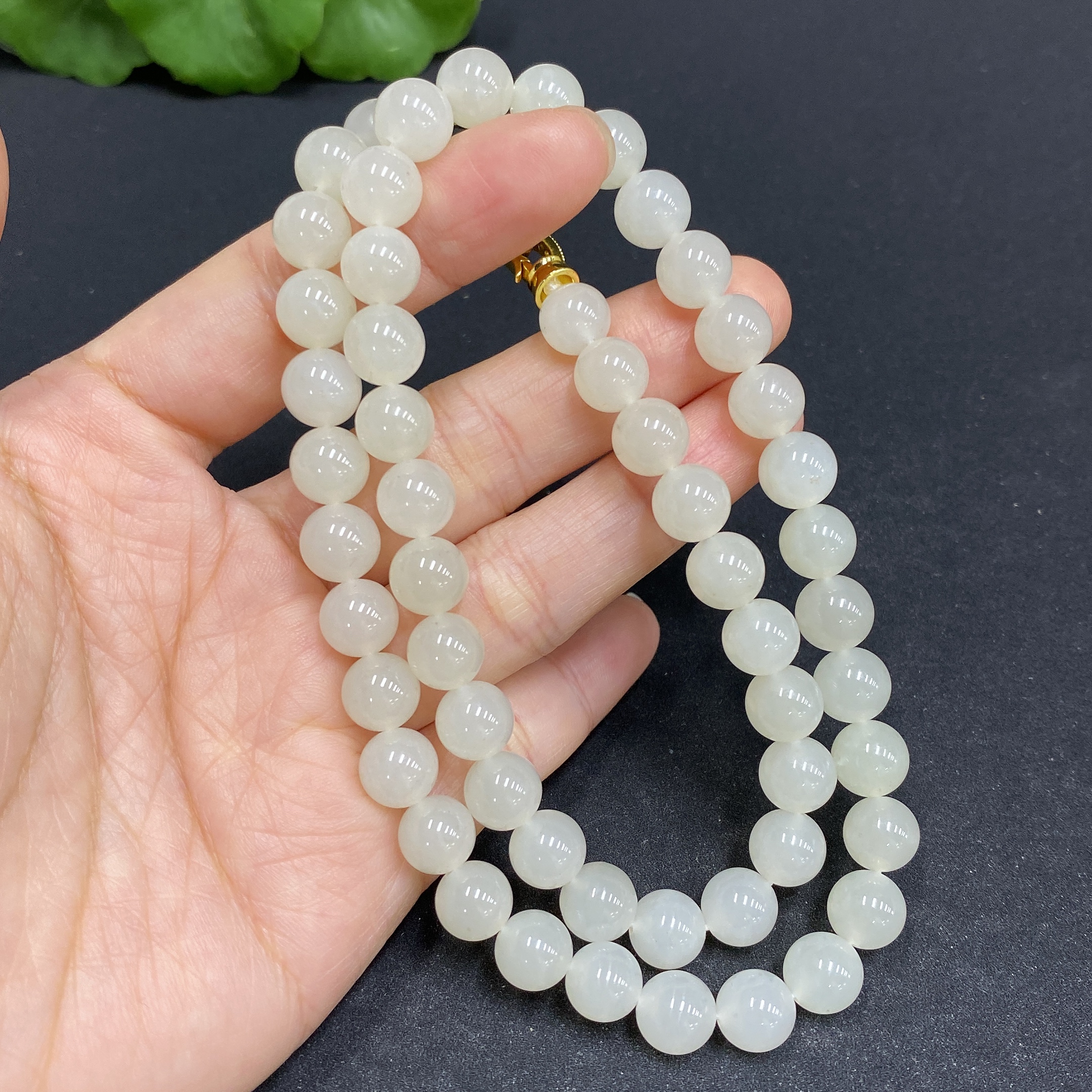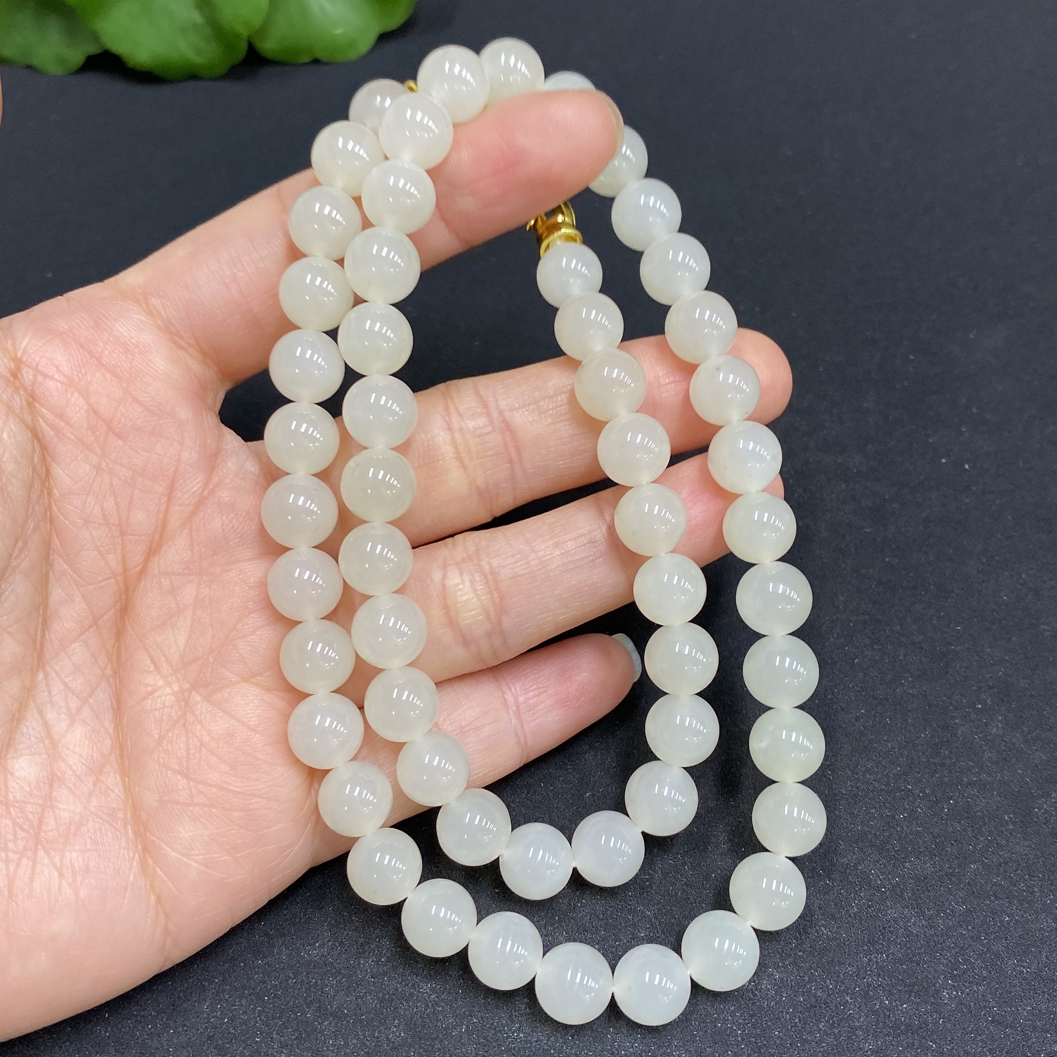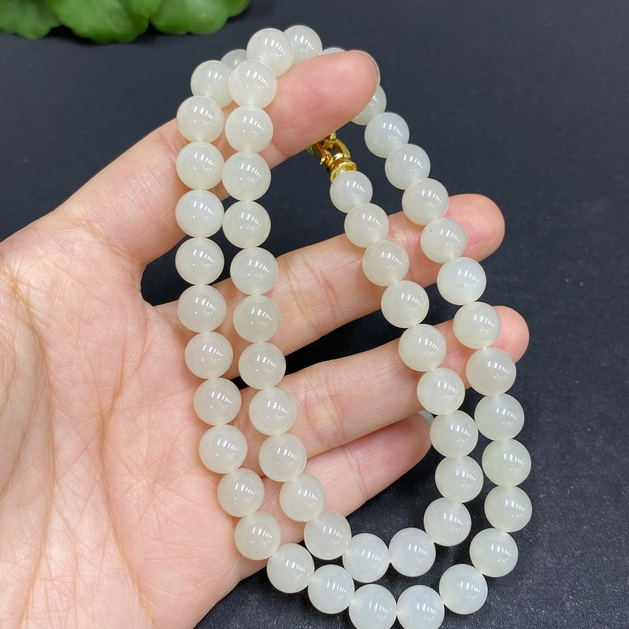 Hetian Jade Bead Necklace, Approx. 7.8mm, Non-Gold-Inlaid, Total Weight Approx. 45.9g