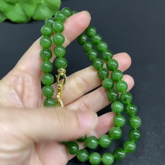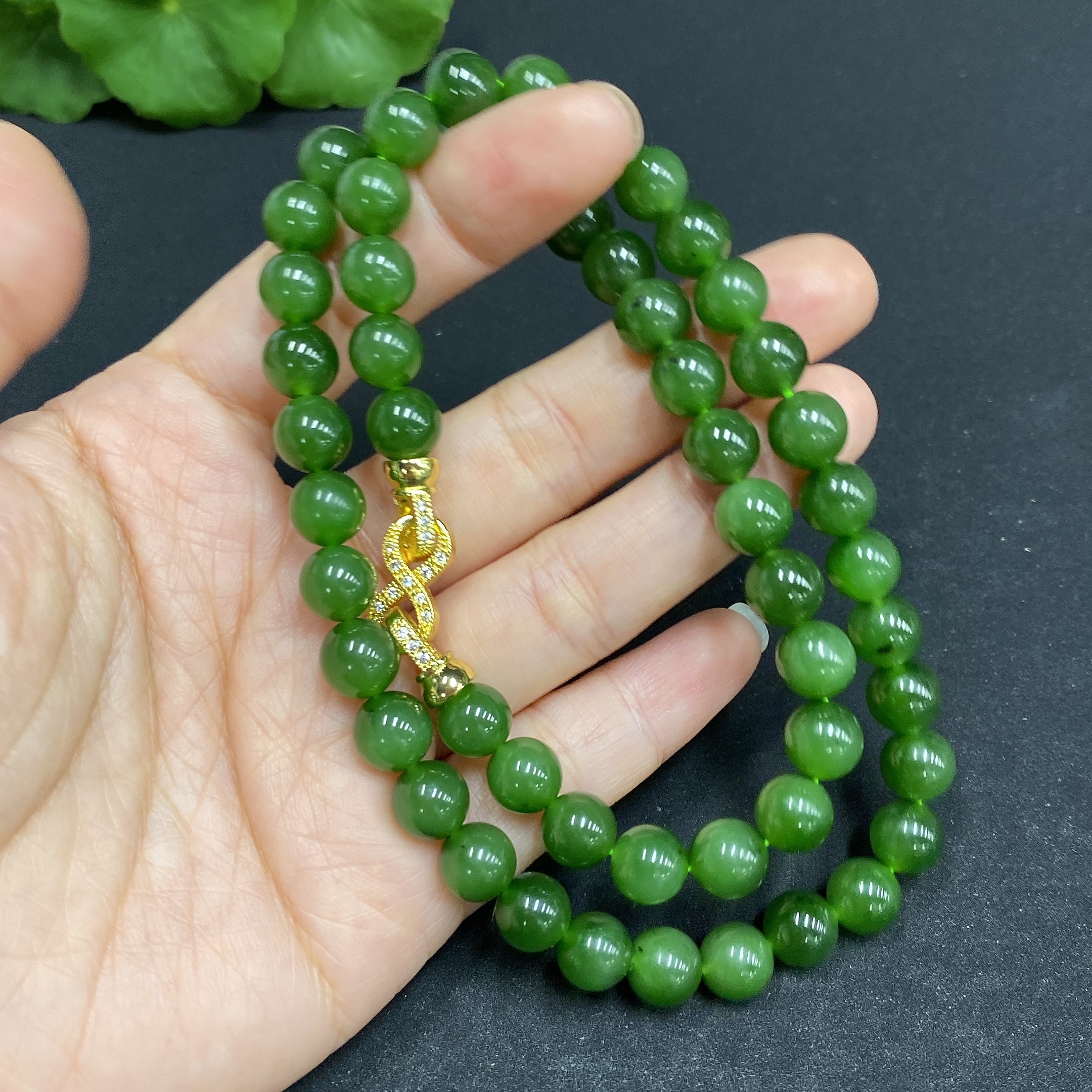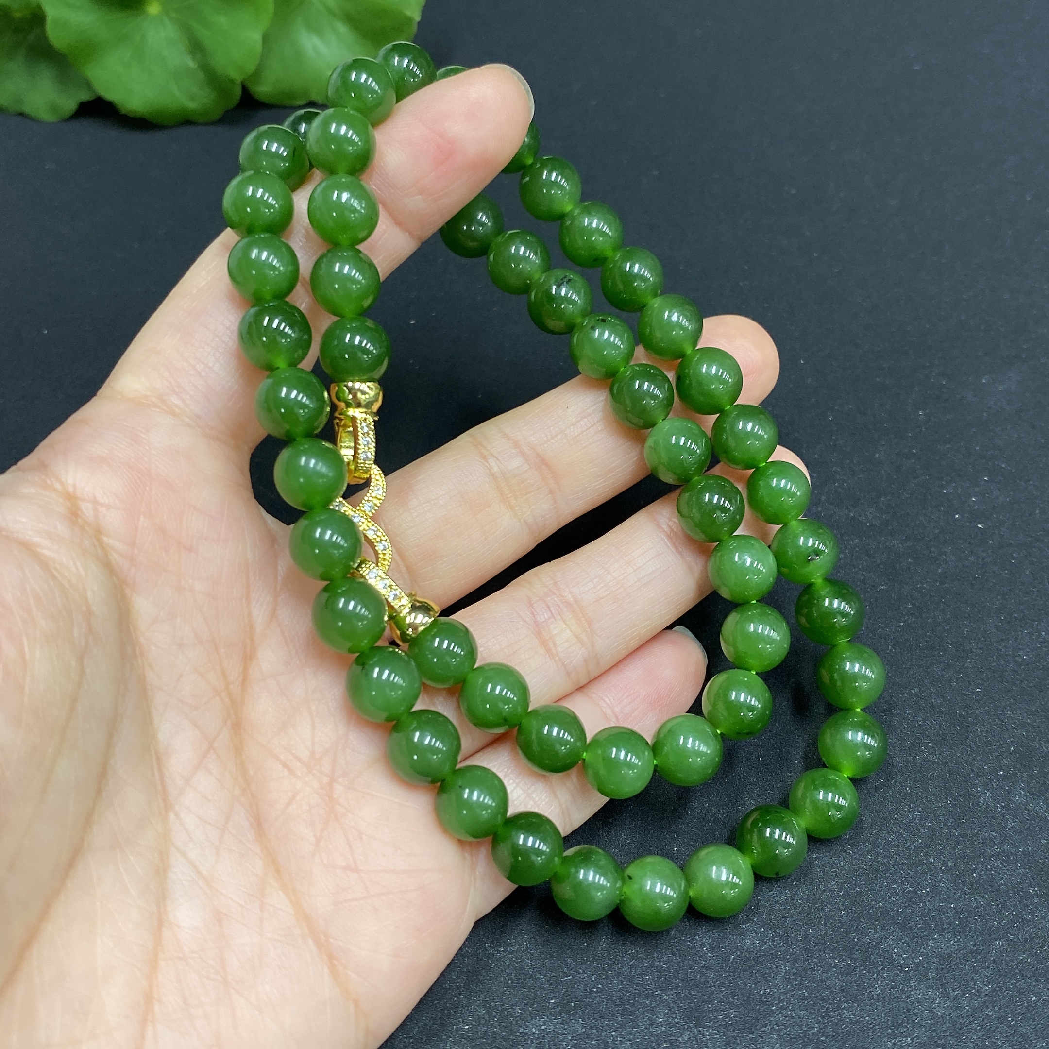 Hetian Jade Bead Necklace, approx. 7.5mm, non-gold inlaid, total weight approx. 44.5g