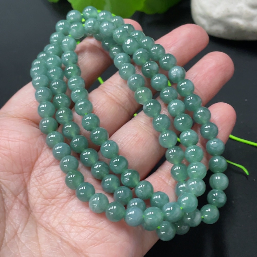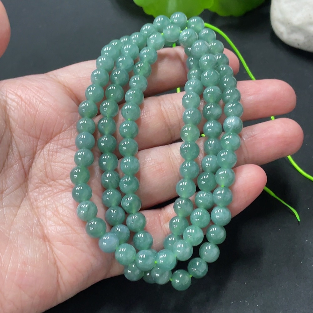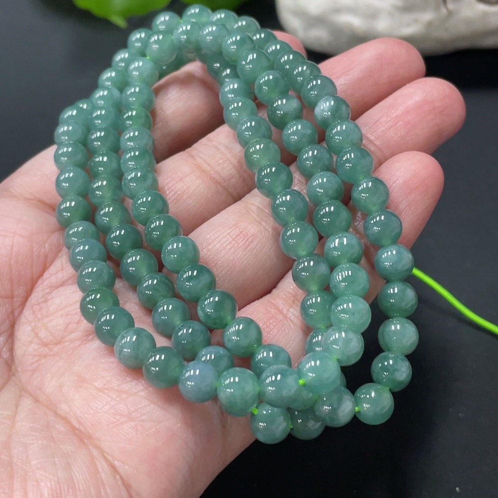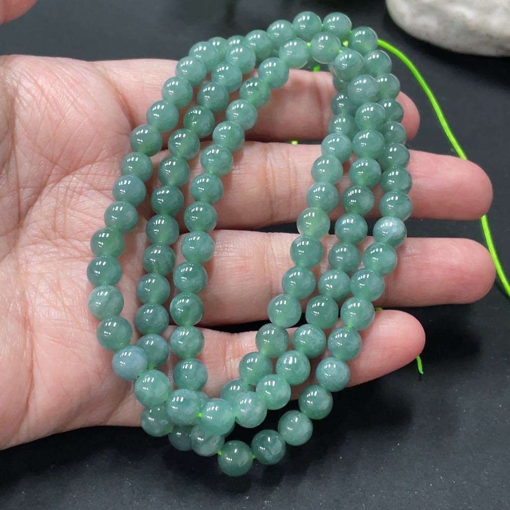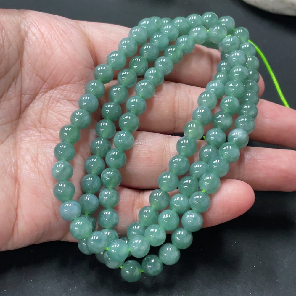 Jadeite Bead Necklace Approximately 6.3mm Bead Size Total Weight About 43.1g