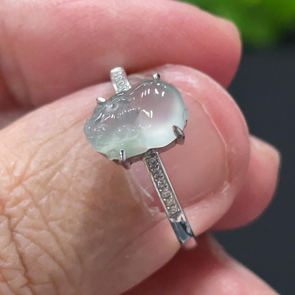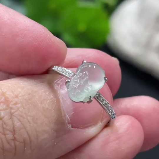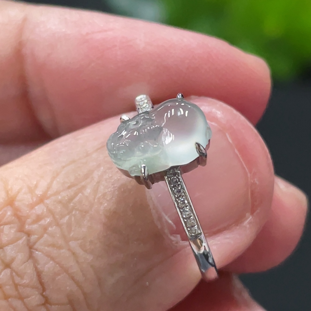 JadeiteThree-Legged Toad Inlaid Ring, 18k Gold Setting, Size 13.5, Total Weight Approx. 1.37g, Accented with Diamonds