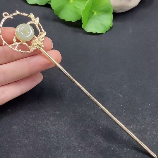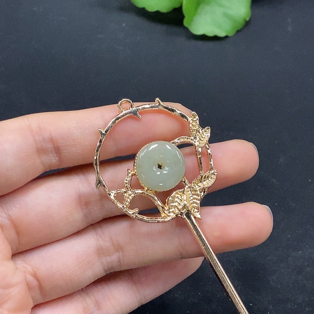 Jadeite Hairpin Non-Gold Inlaid