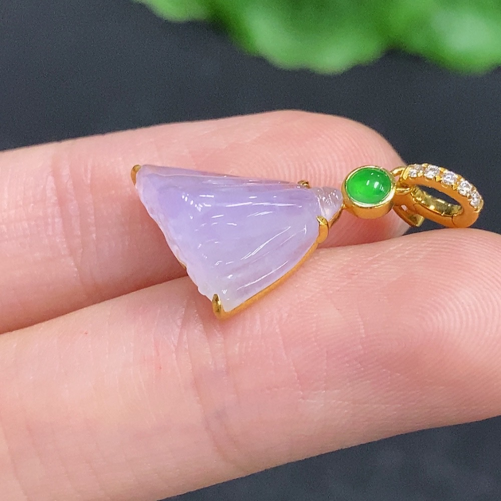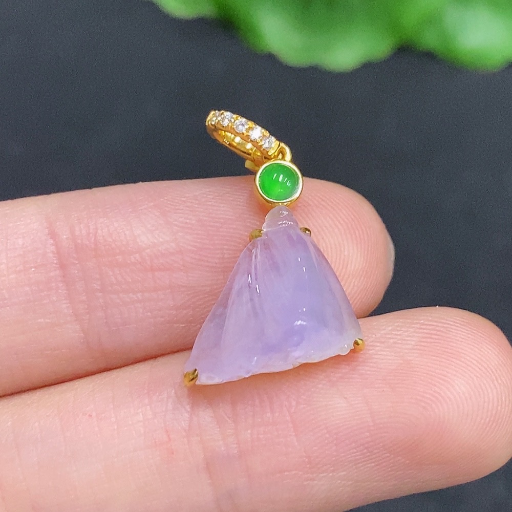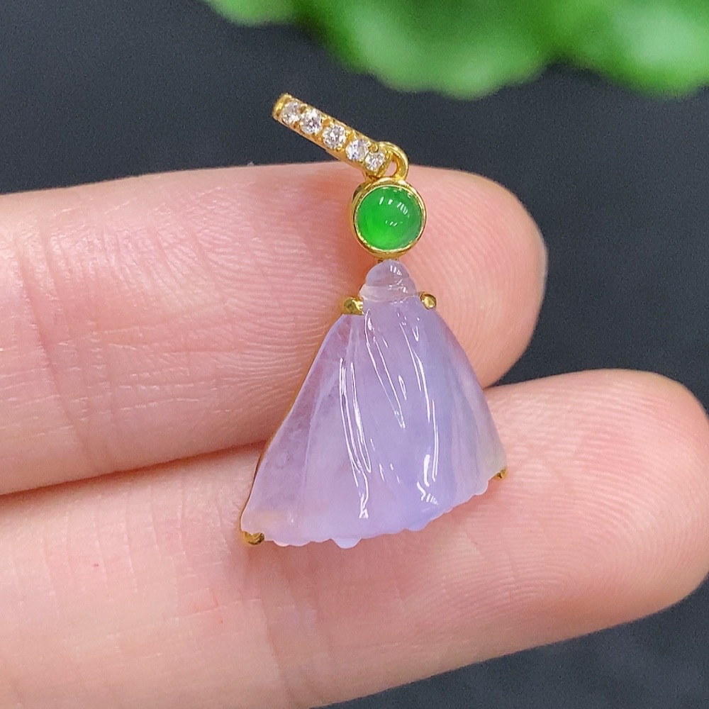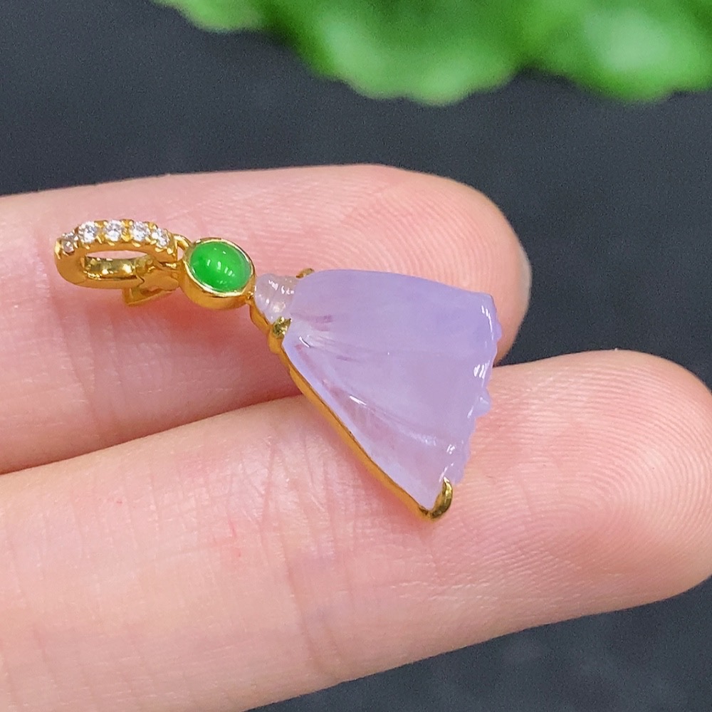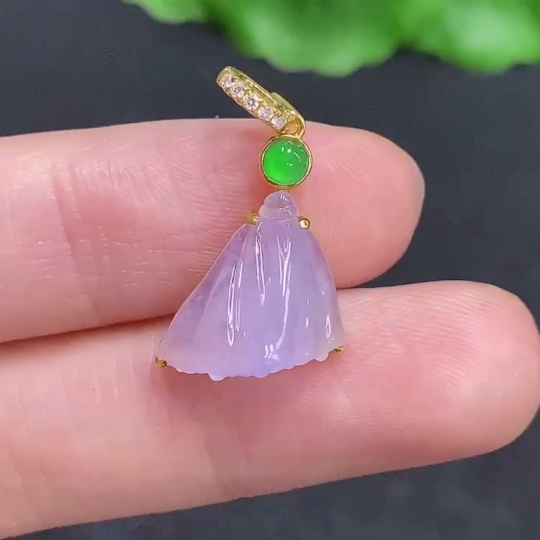 Jadeite Lotus Pod Pendant with 18K Gold and Diamond Accents, Total Weight Approximately 2.2g
