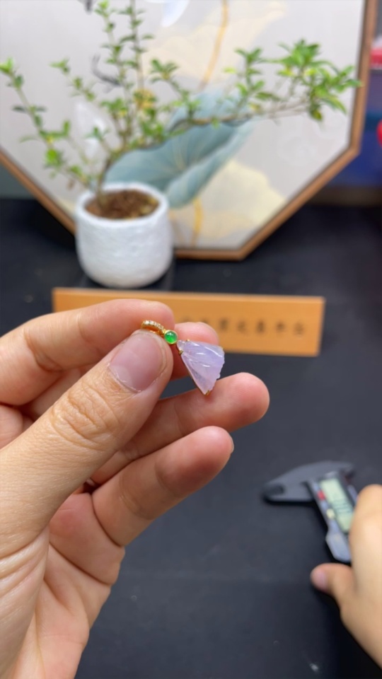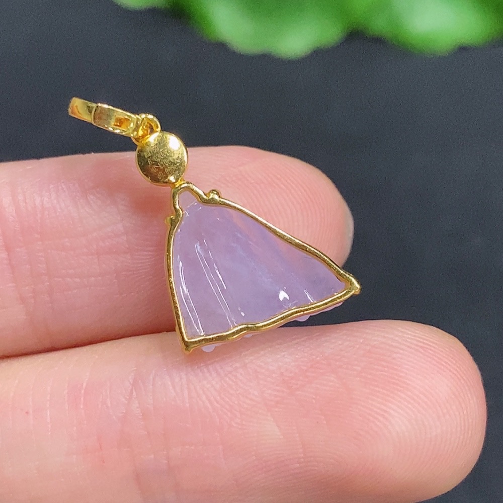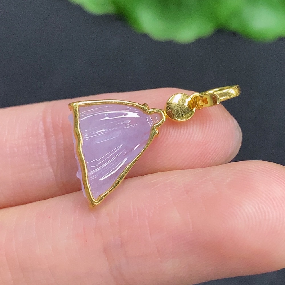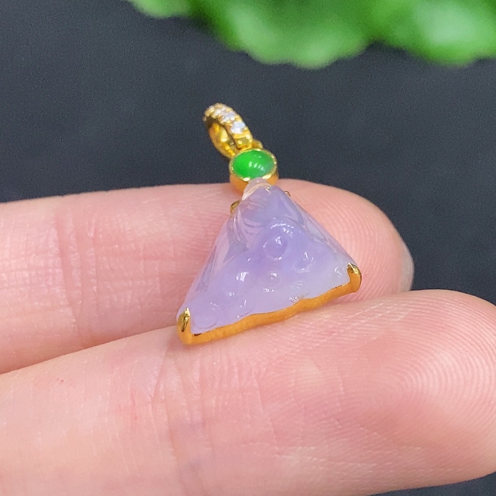 Jadeite Lotus Pod Pendant with 18K Gold and Diamond Accents, Total Weight Approximately 2.2g